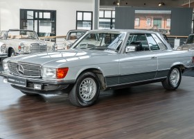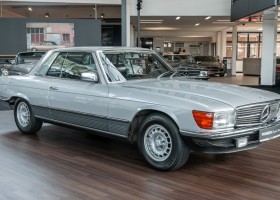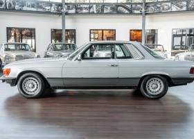 Gemäß der Werks-Datenkarte wurde das in edlem silber-metallic gehaltene Coupé an F. von Thun-Hohenstein in München ausgeliefert. Die Mercedes-Benz SLC-Reihe galt Anfang der 1980er Jahre in den Kreisen der Reichen und Schönen als besonders „in“ und wenn es gar ein Modell mit dem 5.0 Liter V8-Motor war, dann war man schon ganz oben dabei. So verblieb dieser 450SLC 5.0 in der vermögenden Adelsfamilie bis 1986. Sein neues Zuhause fand er in 1986 in den USA. Ein vermögender Kaufmann aus Kalifornien holte das Coupé nach Kalifornien/USA. Ein uns vorliegender Carfax-Ausdruck belegt eindrucksvoll die gemeldeten Kilometerstände von 1992 – 2009, die letztendlich eine Laufleistung von 90.482km dokumentierten. Zu dieser Zeit erwarb den Wagen Robert Schilling aus Menlo Park, einer Gegend neben Palo Alto in der San Francisco Bay Area. In 2013 wurde das Coupé an John P. Matthews in Gelen Ellen, etwa 50 Meilen von San Francisco entfernt, verkauft. John Matthews behielt den Wagen bis wir ihn in 2016 erwarben und nach Deutschland zurückholten.