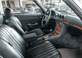 Der Wagen war in traumhaftem Originalzustand. Wir überarbeiteten ihn wo nötig, versetzten ihn in Bestzustand und verkauften das Coupé in eine englische Sammlung feiner klassischer Automobile. Aufgrund einer jüngst vorgenommenen Umstellung in der Sammlung kam das Coupé wieder in unseren Besitz. So freuen wir uns, Ihnen mit diesem 450SLC 5.0 Liter Coupé einen der meist gesuchten Klassiker der frühen 1980er Jahre anbieten zu können. Der Wagen ist in exzellentem Zustand, der Motor strotzt geradezu vor Kraft, die Ausstattung ist üppig und das noch wie neu wirkende schwarze Leder, hat in Verbindung mit der hochglanzpolierten Edelholzausstattung eine höchst vornehme Ausstrahlung.