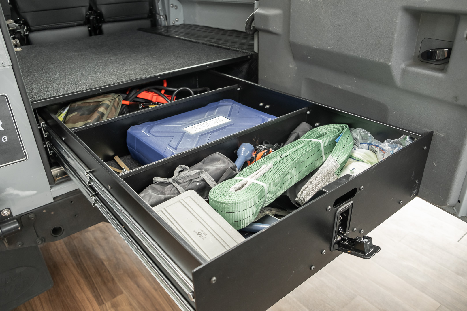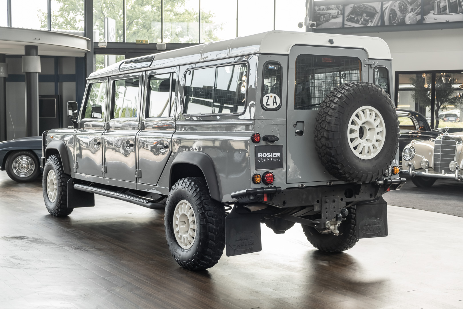 Ein Outdoor-Campingfan sah in diesem Siebensitzer die ideale Basis eines (Groß-)Familien-Fahrzeugs, das er noch mit Dachzelt und Offroad-Wohnwagen ausstatten ließ. Der Umbau zum Linkslenker machen diesen, ohnehin schon besonderen Defender 147, einmalig. Ein umfangreiches Entertainment-System sowie eine Klimaanlagen sorgen für angenehme Reisen, ganz gleich, wie abgelegen Sie unterwegs sind.