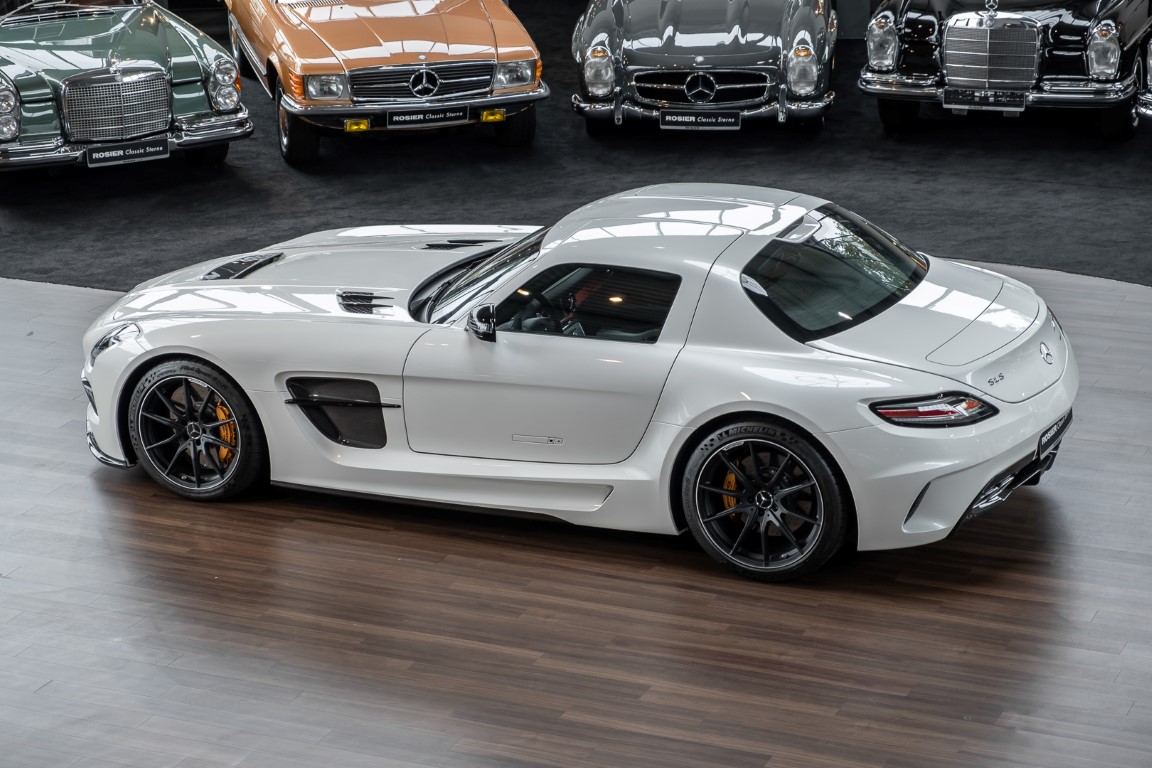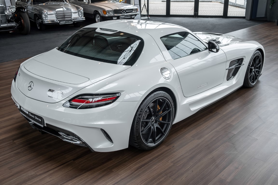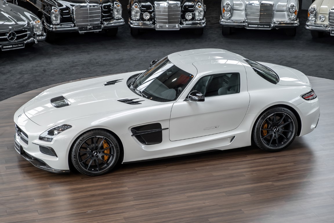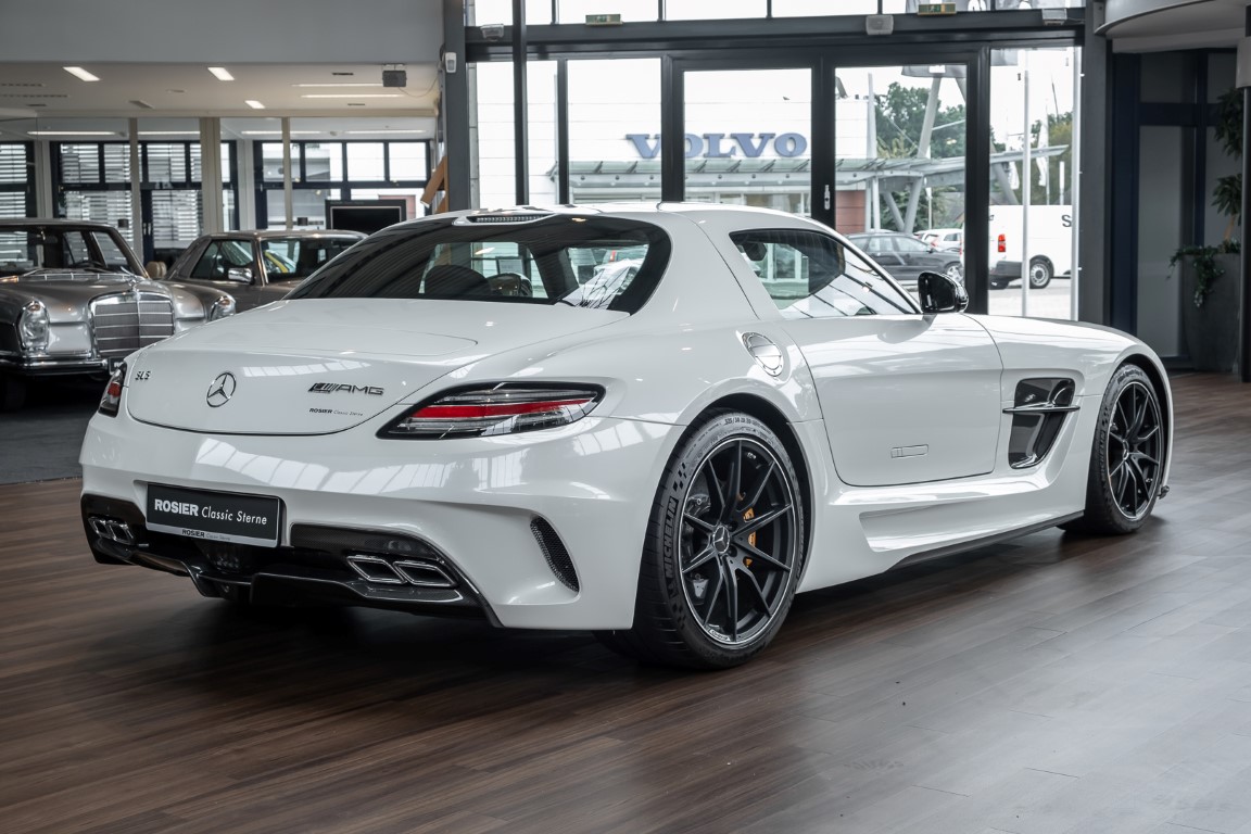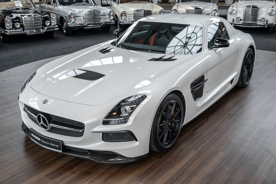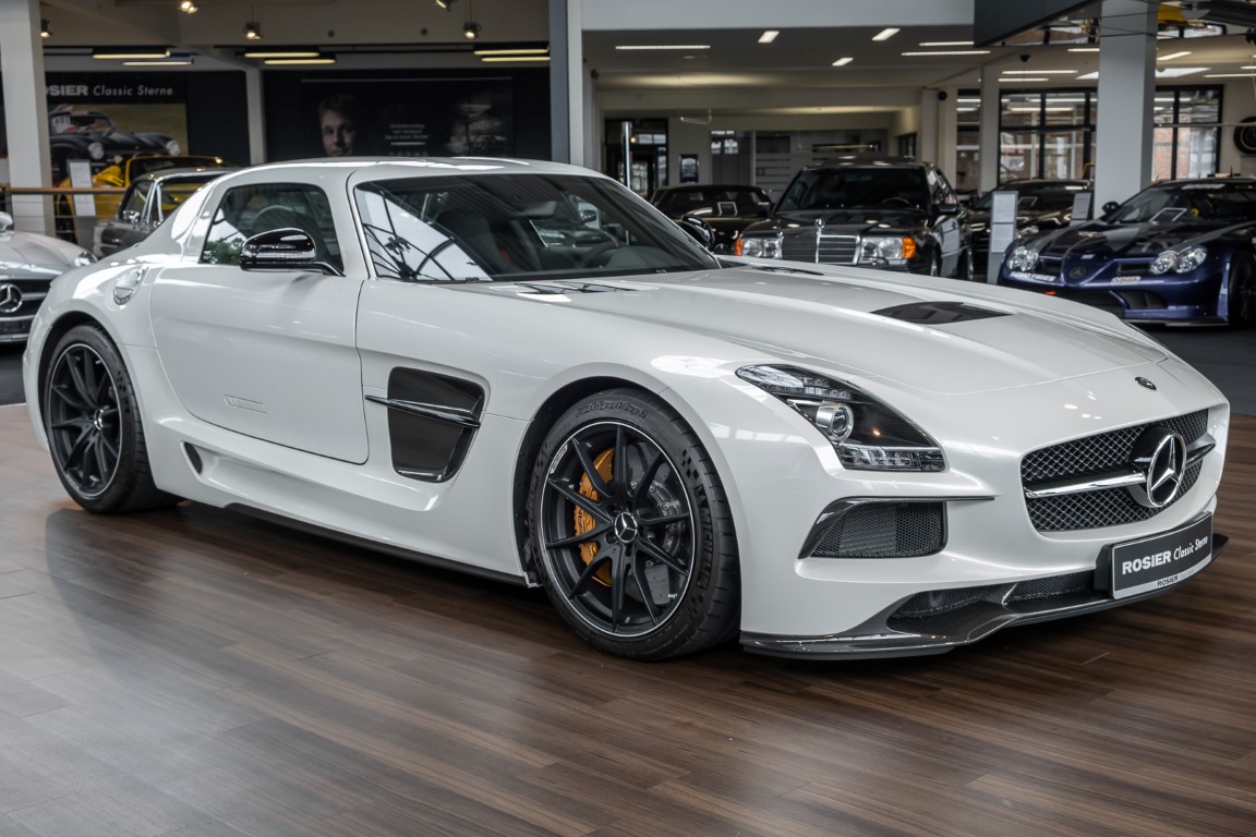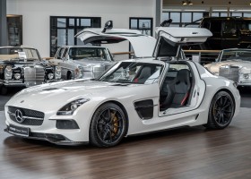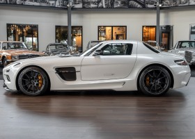 Im Juni 2013 war der offizielle Verkaufsstart der Highend-Version des Flügeltürers, den SLS AMG Coupé Black Series. Wer dieses von der Rennversion SLS AMG GT3 inspirierte Supersport-Coupé haben wollte, musste schnell sein: Denn die gerade einmal 408 Einheiten wurden von Sammlern aus der ganzen Welt sehnsüchtig erwartet und waren unverzüglich ausverkauft. Das fünfte Black Series-Modell von Mercedes-AMG faszinierte seine Liebhaber durch atemberaubendes Design, überragende Fahrdynamik und konsequenten Leichtbau. Mit einem Leergewicht von 1550 Kilogramm und einer Motorleistung von 631 PS bei 7400/min erreicht der SLS AMG Black Series ein Leistungsgewicht von 2,45 kg/PS. Damit wird der dynamischste straßenzugelassene Flügeltürer in nur 3,6 Sekunden auf Tempo 100 katapultiert.