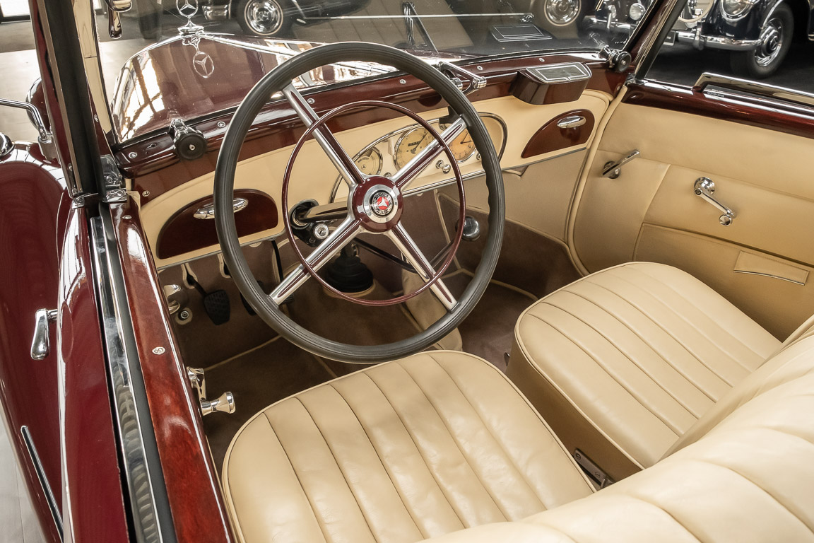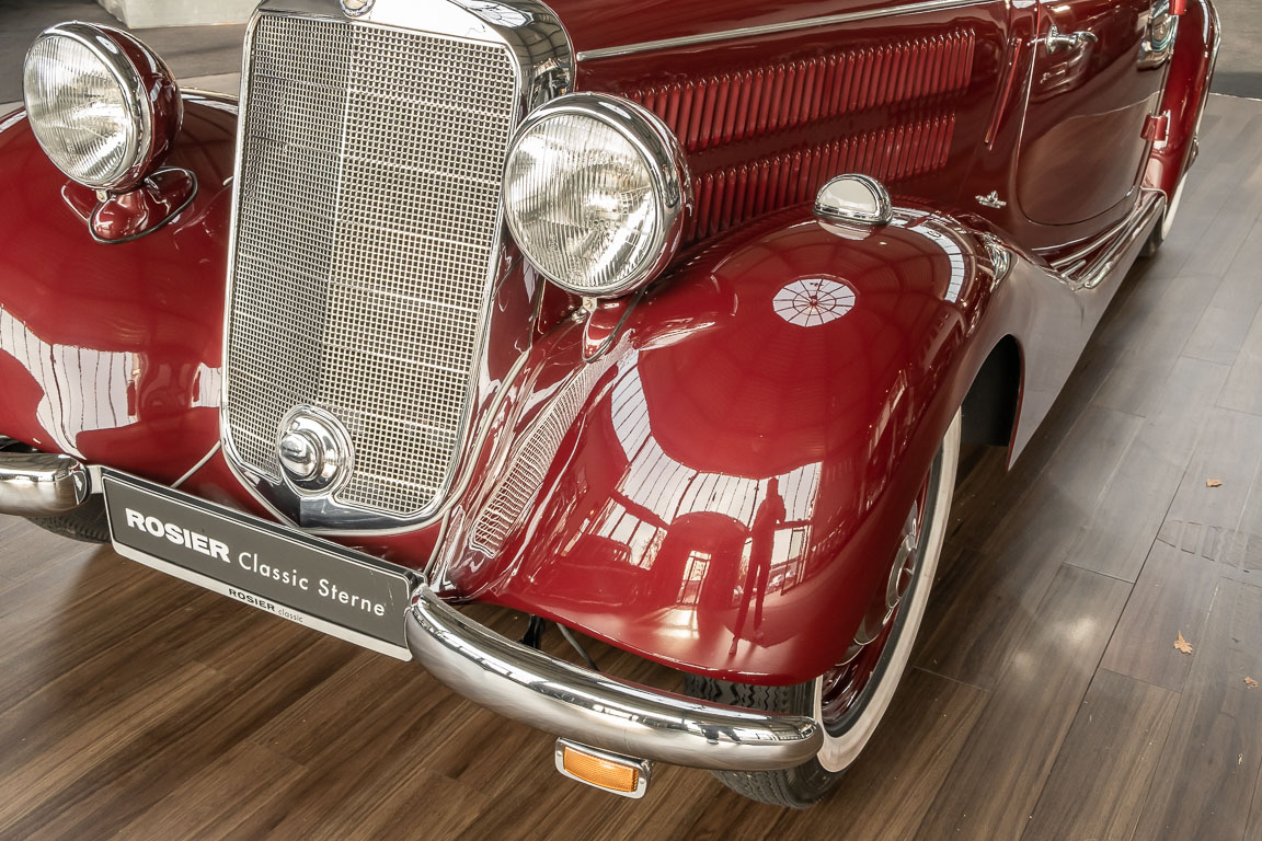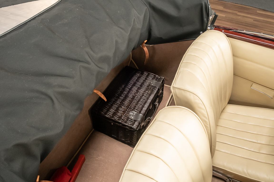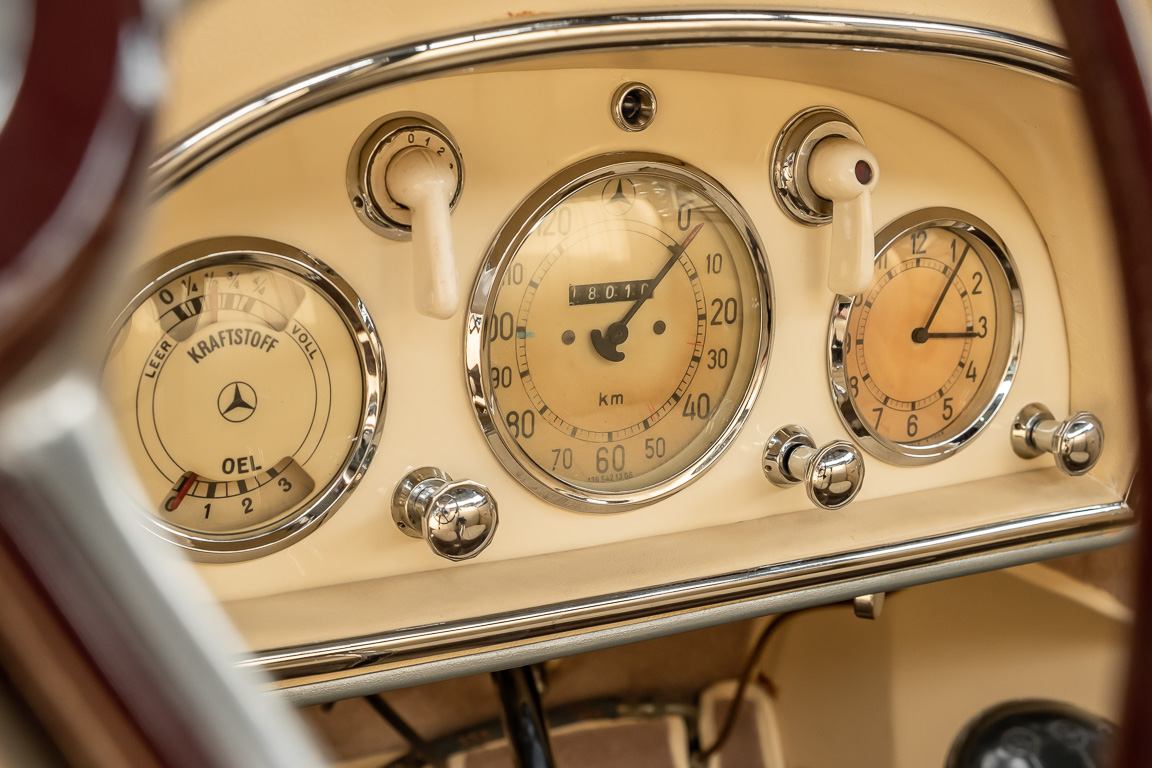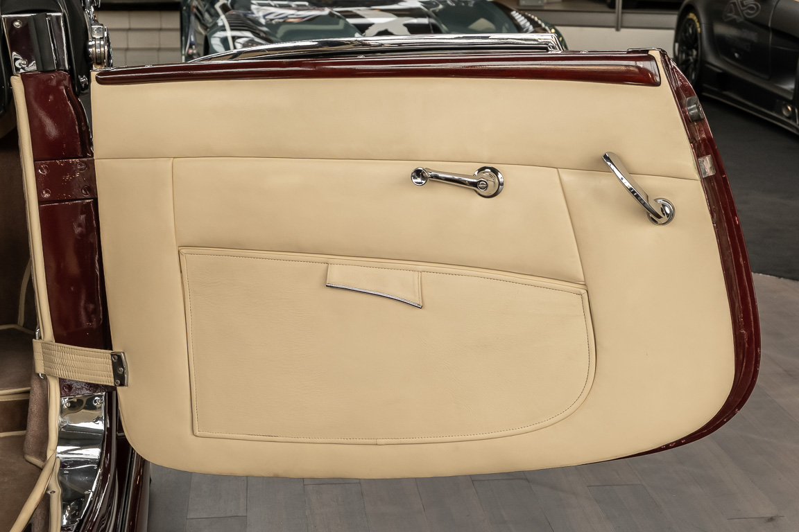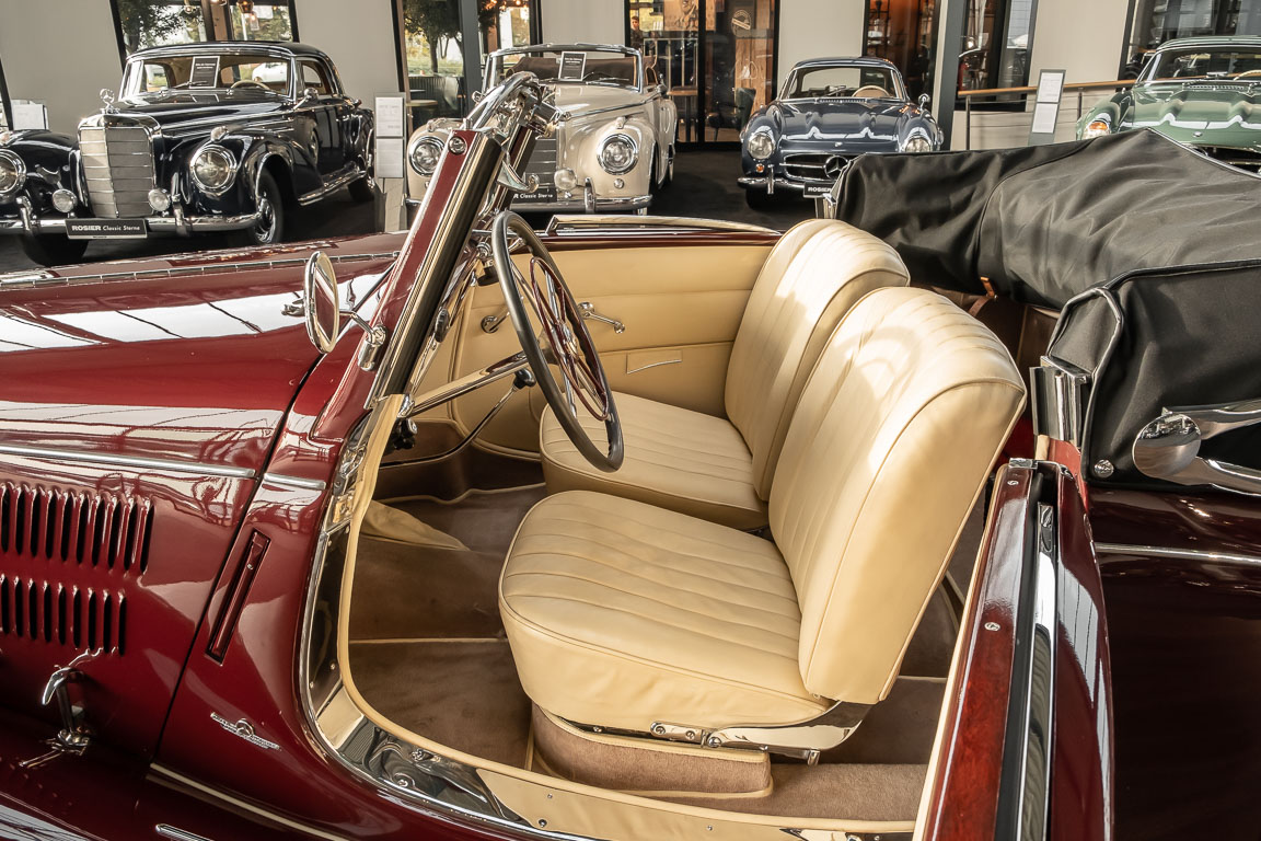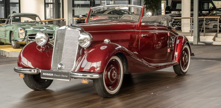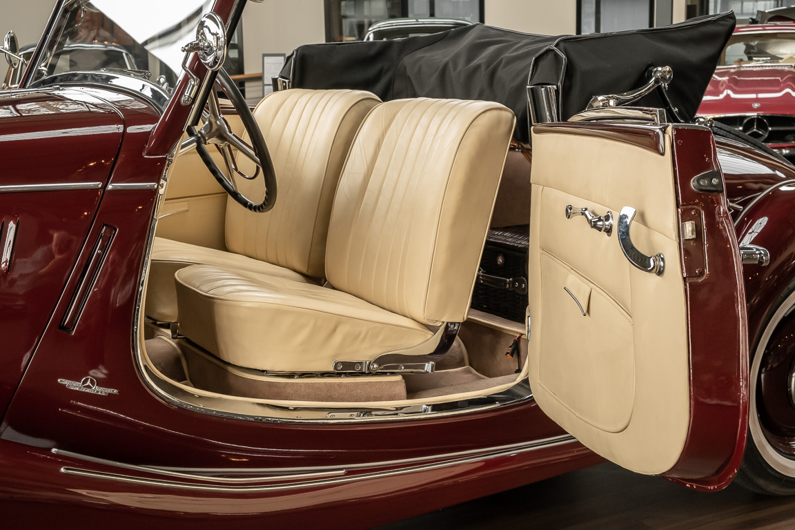 Ein Cabrio Traum mit super Historie ist dieses Mercedes-Benz 170V Cabriolet A aus dem Jahre 1938. Der Wagen wurde im Oktober 1938 über das bis heute bestehende Autohaus Metje + Ziegler in Windhoek, Namibia, an Jürgen Voigts in Voigtsgrund im Bezirk Gibeon, ausgeliefert. Die Farm der angesehenen, deutschstämmigen Familie Voigts, umfasste zu dieser Zeit bereits 160.000 Hektar meist Eigenland und war bekannt für seine etwa 17.000 Tiere umfassenden Karakulschaf-Herden. Die Kriegsjahre verblieb der Wagen in Namibia und kam erst nach dem Krieg zurück nach Deutschland. Er fand seine Heimat im Raum München und gehörte Mitte der 1960er Jahre unter anderem dem Schauspieler Danilo Zschauer aus München, wie man dem noch original vorhandenen Pappbrief entnehmen kann. Am 25.08.1978 kam das Cabrio gemäß dem uns vorliegenden originalen Kaufvertrag in den Besitz eines höchst erfolgreichen Unternehmers im Märkischen Kreis, in Nordrhein-Westfalen. Er pflegte und erhielt den Wagen bestens, entschied sich aber einer Mitte der 1980er Jahre zu einer Totalrestaurierung. Die Restaurierung war von solcher Güte, dass sich der Wagen auch heute, viele Jahre später, in nahezu makellosem Zustand präsentiert. Er lädt ein zu stilvollen Ausfahrten mit unendlich schönem Cabrio-Vergnügen durch malerische Landschaften.