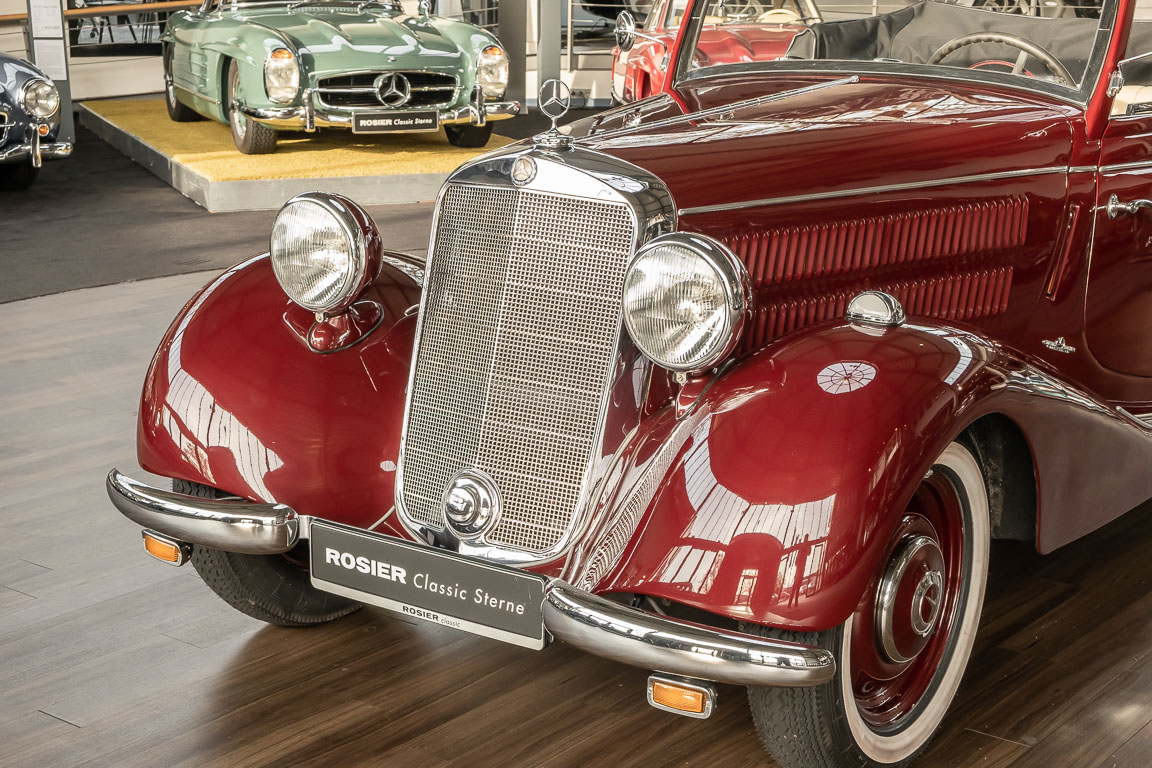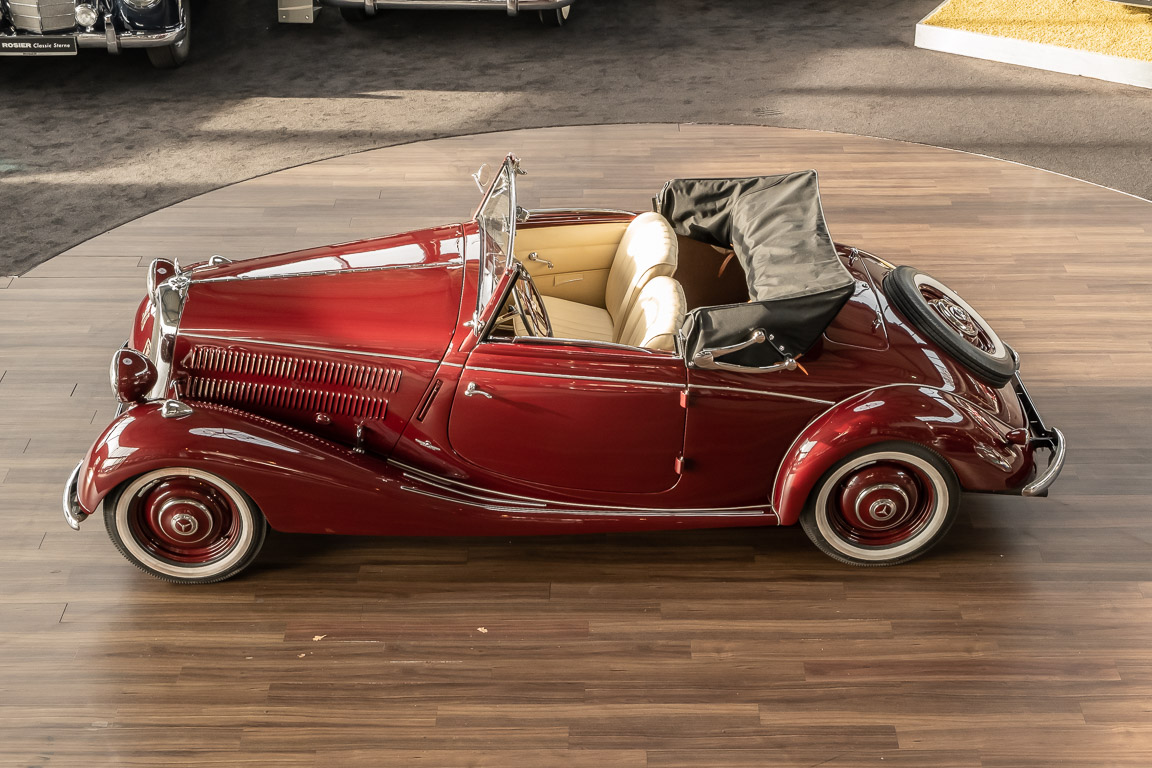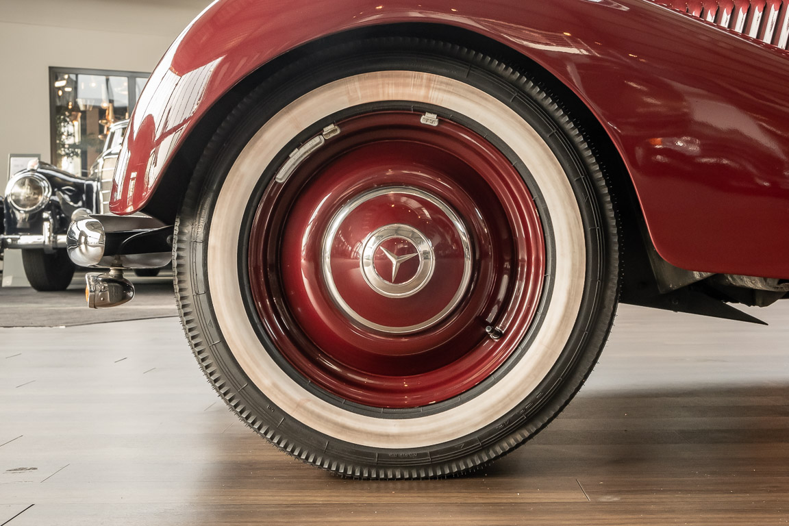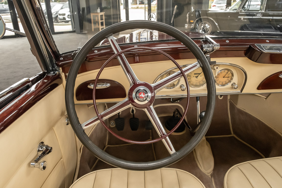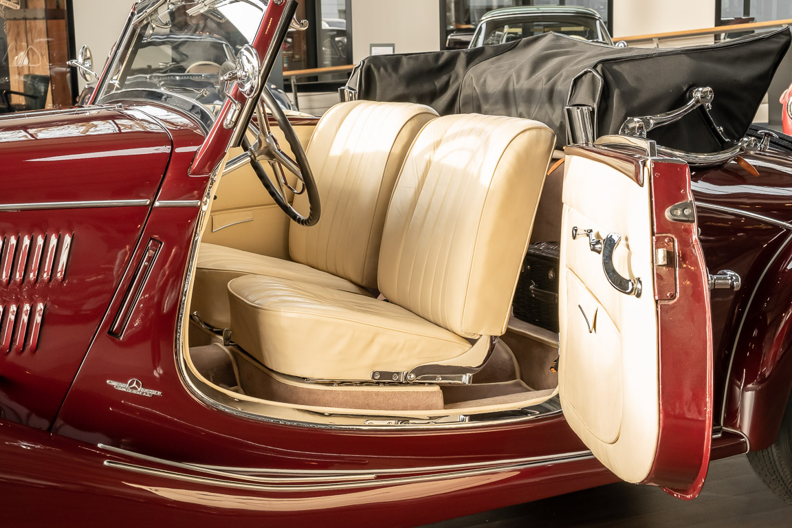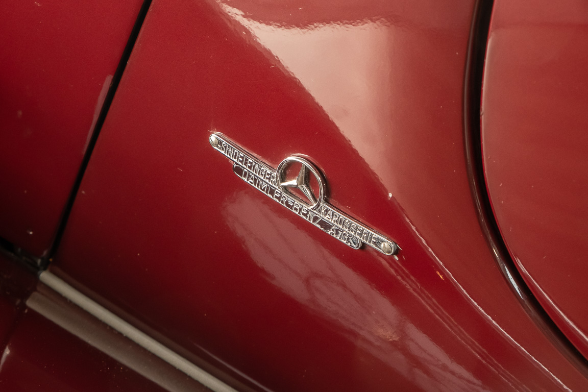 Ein Cabrio Traum mit super Historie ist dieses Mercedes-Benz 170V Cabriolet A aus dem Jahre 1938. Der Wagen wurde im Oktober 1938 über das bis heute bestehende Autohaus Metje + Ziegler in Windhoek, Namibia, an Jürgen Voigts in Voigtsgrund im Bezirk Gibeon, ausgeliefert. Die Farm der angesehenen, deutschstämmigen Familie Voigts, umfasste zu dieser Zeit bereits 160.000 Hektar meist Eigenland und war bekannt für seine etwa 17.000 Tiere umfassenden Karakulschaf-Herden. Die Kriegsjahre verblieb der Wagen in Namibia und kam erst nach dem Krieg zurück nach Deutschland. Er fand seine Heimat im Raum München und gehörte Mitte der 1960er Jahre unter anderem dem Schauspieler Danilo Zschauer aus München, wie man dem noch original vorhandenen Pappbrief entnehmen kann. Am 25.08.1978 kam das Cabrio gemäß dem uns vorliegenden originalen Kaufvertrag in den Besitz eines höchst erfolgreichen Unternehmers im Märkischen Kreis, in Nordrhein-Westfalen. Er pflegte und erhielt den Wagen bestens, entschied sich aber einer Mitte der 1980er Jahre zu einer Totalrestaurierung. Die Restaurierung war von solcher Güte, dass sich der Wagen auch heute, viele Jahre später, in nahezu makellosem Zustand präsentiert. Er lädt ein zu stilvollen Ausfahrten mit unendlich schönem Cabrio-Vergnügen durch malerische Landschaften.