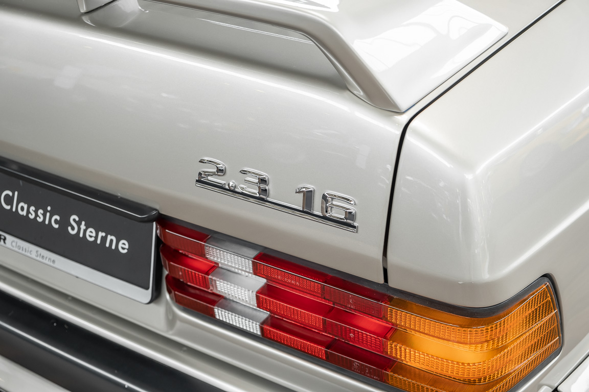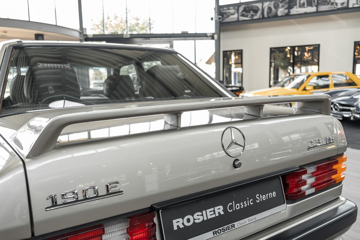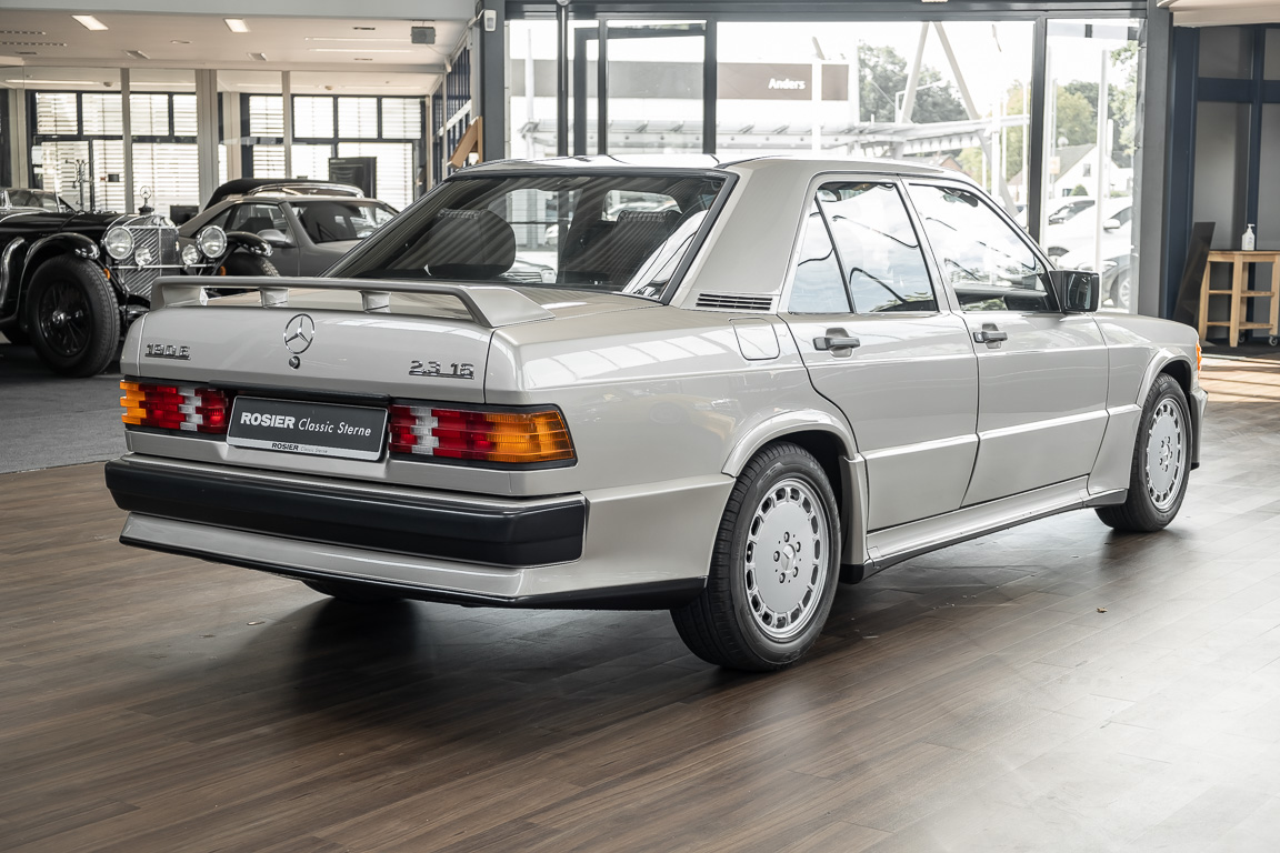 „Böser kleiner Benz. Eine Limousine mit Stern und Spoilern ? Darf das sein? In Form und Ausführung überforderte der Mercedes 190E 2.3-16 so manches Weltbild“ … schrieb die AutoBild Klassik im Januar 2013 über den 190E 2.3-16. Eine sportliche Limousine mit 4-türen, agilem von Cosworth und Mercedes gemeinsam entwickeltem Motor, war Mitte der 1980er Jahre etwas außergewöhnliches und traf bestens den aufkommenden Zeitgeist der sportlich orientierten jüngeren Generation. Wir freuen uns Ihnen mit diesem 190E 2.3-16 ein solches, in bestem Sammlerzustand gehaltenes Fahrzeug, anbieten zu können. Gerade einmal die 100.000km Marke hinter sich, immer gepflegt und ordentlich in Stand gehalten. Überzeugen Sie sich gerne selbst von dieser sympathischen Limousine.