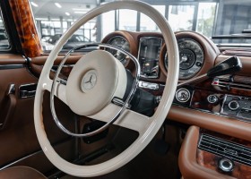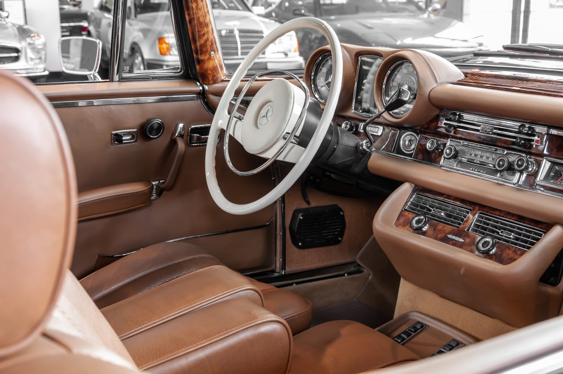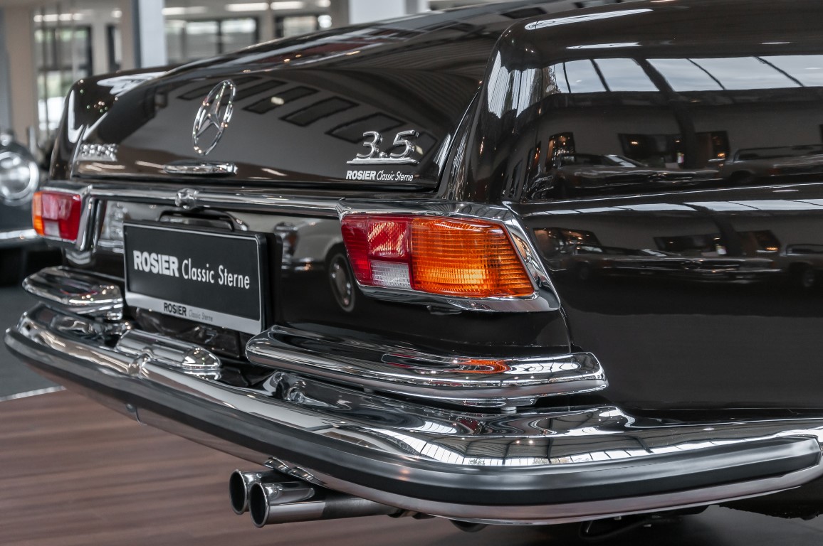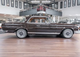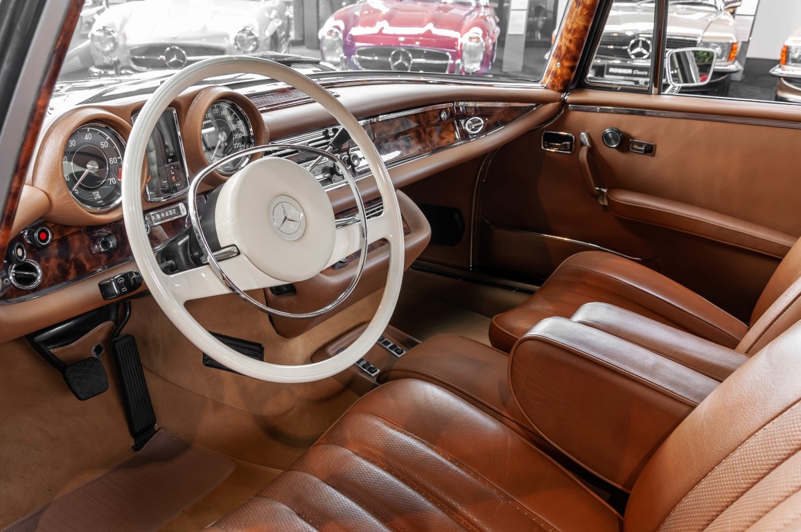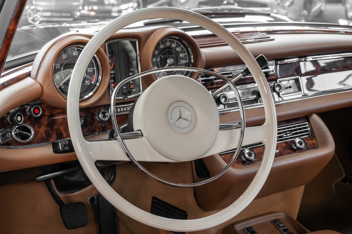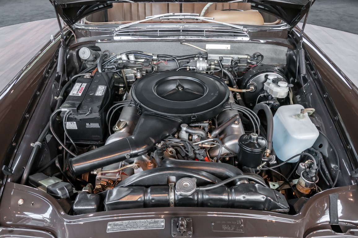 Die neuen Modelle präsentierten sich, wie auch die weiterhin angebotenen 2,8-l-Varianten mit Sechszylindermotor, stilistisch leicht überarbeitet. So war die Kühlermaske etwa 7 cm niedriger und breiter geworden, und die Motorhaube wurde nach vorne gehend abgeflacht. Dieses charakteristische Merkmal brachte dem Wagen im Volksmund den bis heute verwendeten Namen „Flachkühler“ ein. Auch die Stoßstangen wurden verändert. Sie waren nun wie bei den Limousinen auch, mit chromschützenden Gummileisten versehen, die so manchen kleinen Parkrempler verziehen. Das hier von uns angebotene 280SE 3.5 Coupé wurde am 27. April 1971 im Werk fertiggestellt. Seine üppige Ausstattung enthielt unter anderem komfortable elektrische Fensterheber, wärmedämmendes Glas und eine Klimaanlage aus dem Hause BEHR in Stuttgart. Für die musikalische Unterhaltung sorgte ein Qualitätsradiogerät aus dem Hause Becker. Ein Luxuscoupé in bester Qualität und atemberaubendem Design.