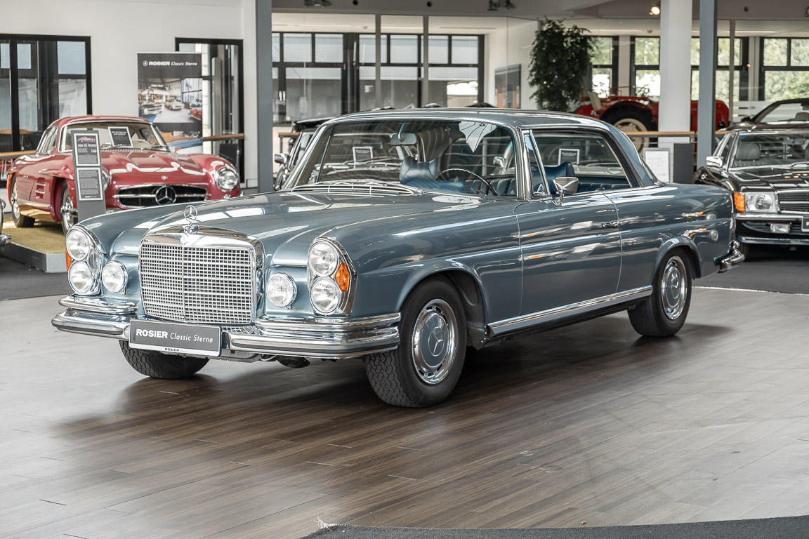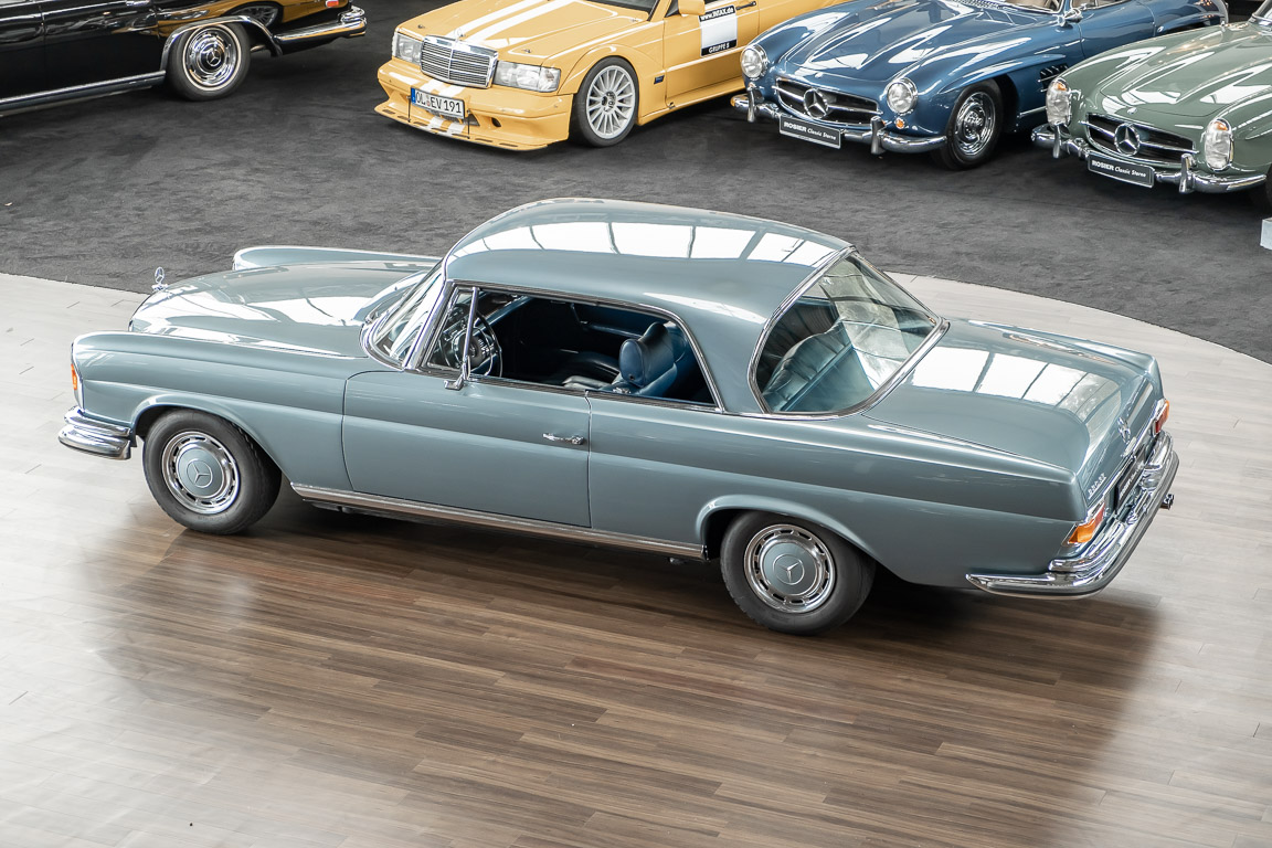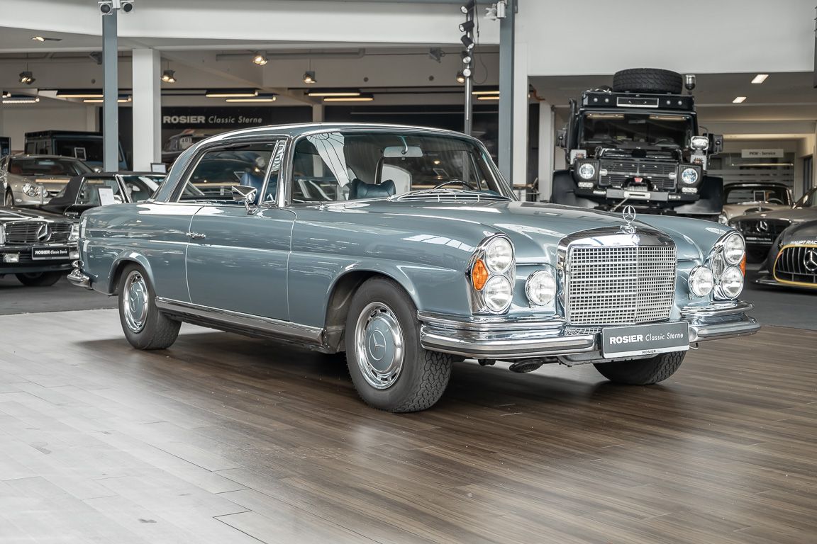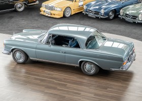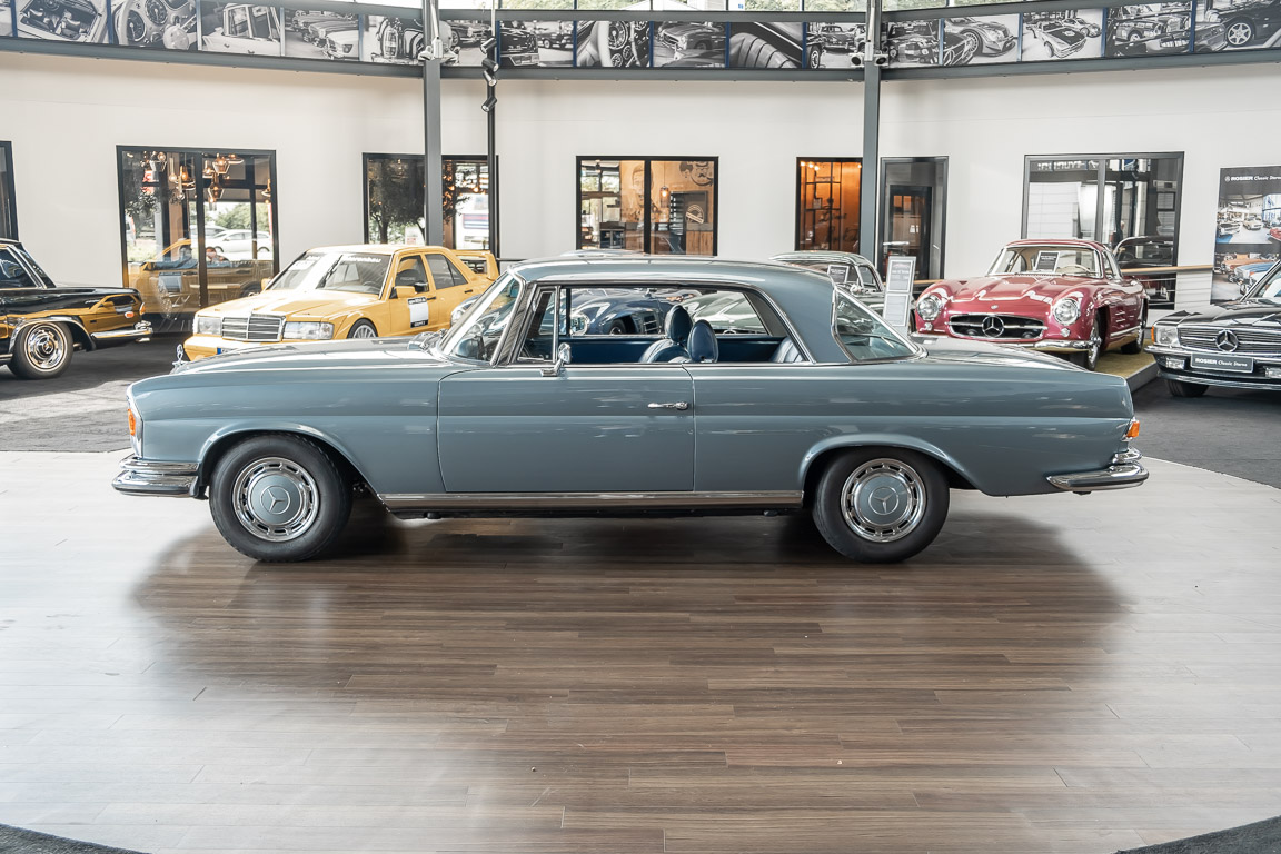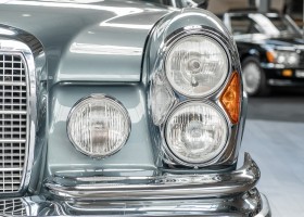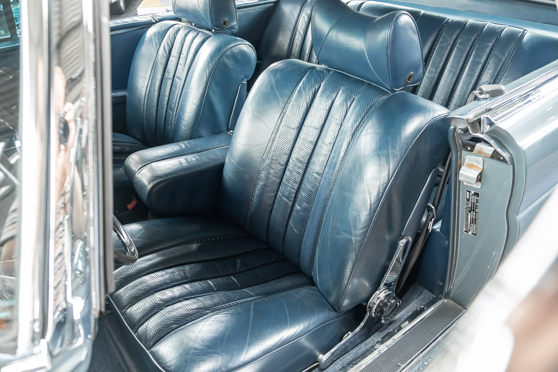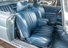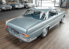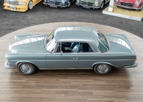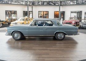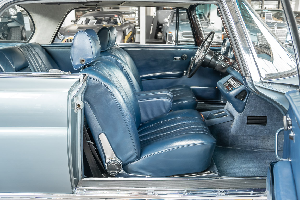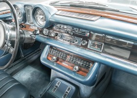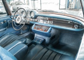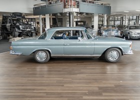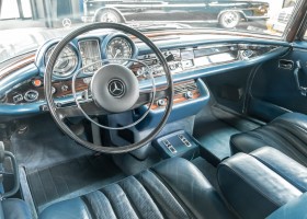 Ende 1969 verließ dieses bildschöne Flachkühler-Coupé die Fabrik in Sindelfingen und wurde im April 1970 seinem ersten Besitzer in Kalifornien übergeben. Es ist wohl dessen umsichtigen Umgang, sachkundiger technischer Betreuung und den günstigen klimatischen Verhältnissen zu verdanken, dass der Wagen in einer ausgezeichneten Kondition erhalten geblieben ist. Zuletzt befand er sich dort in einer Sammlung, worauf auch die niedrige Laufleistung zurückzuführen ist. Nach vierzig Jahren ging es aus dem Sonnenstaat zurück nach Deutschland. Hier bestätigte sich der nach wie vor außergewöhnliche Original-Zustand der Karosserie, der kompletten Innenausstattung und der Technik.