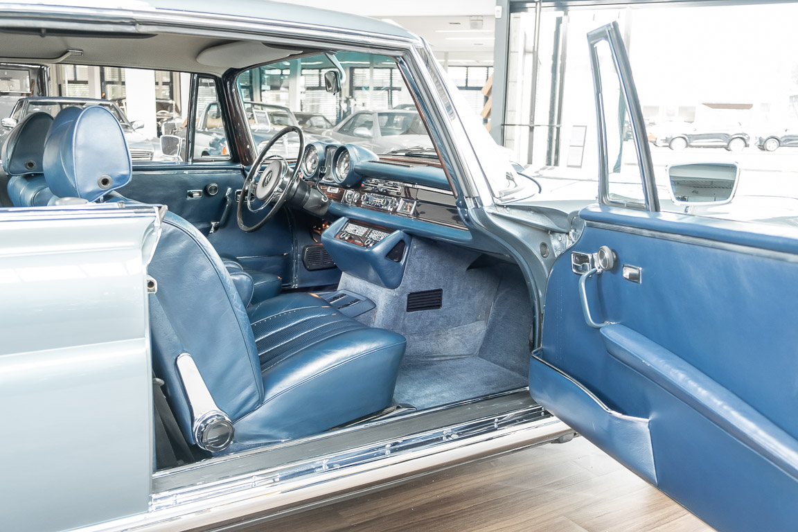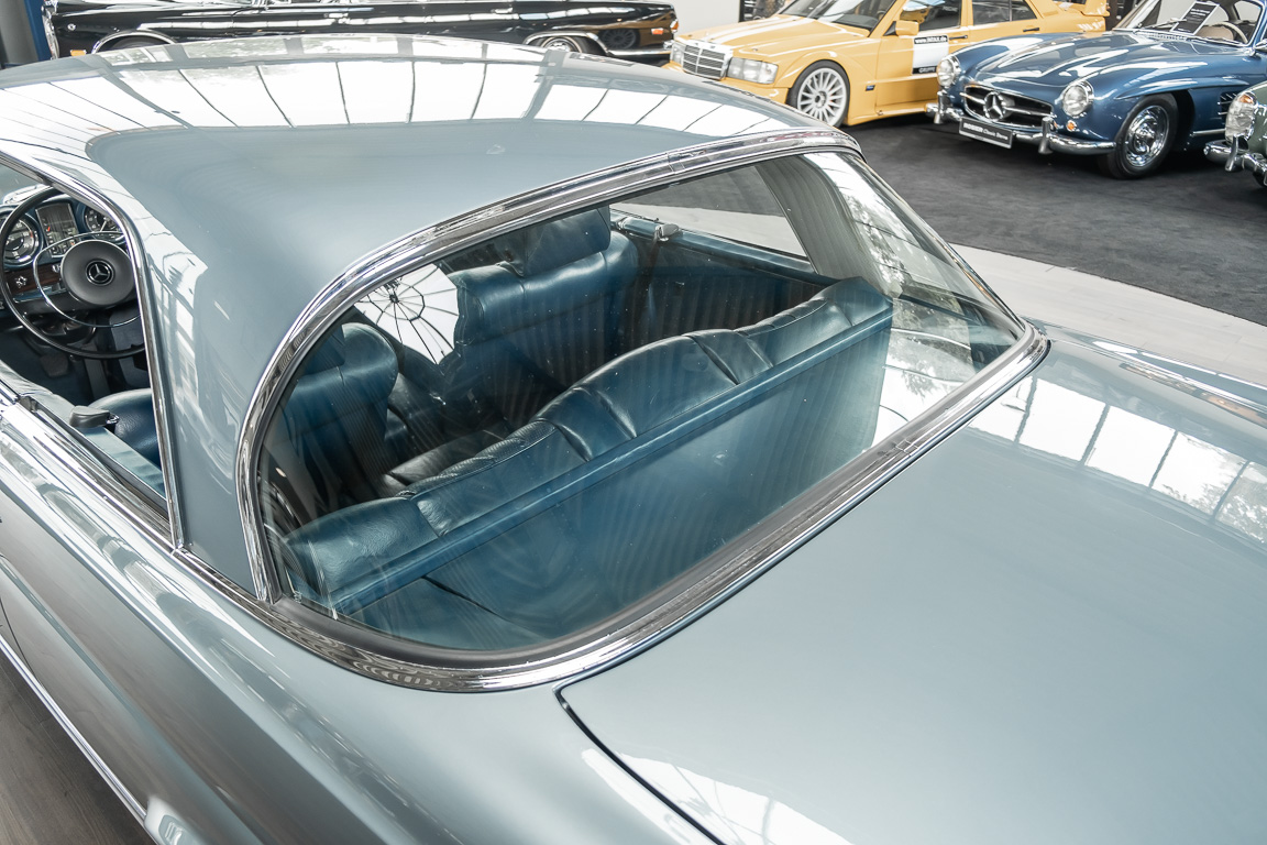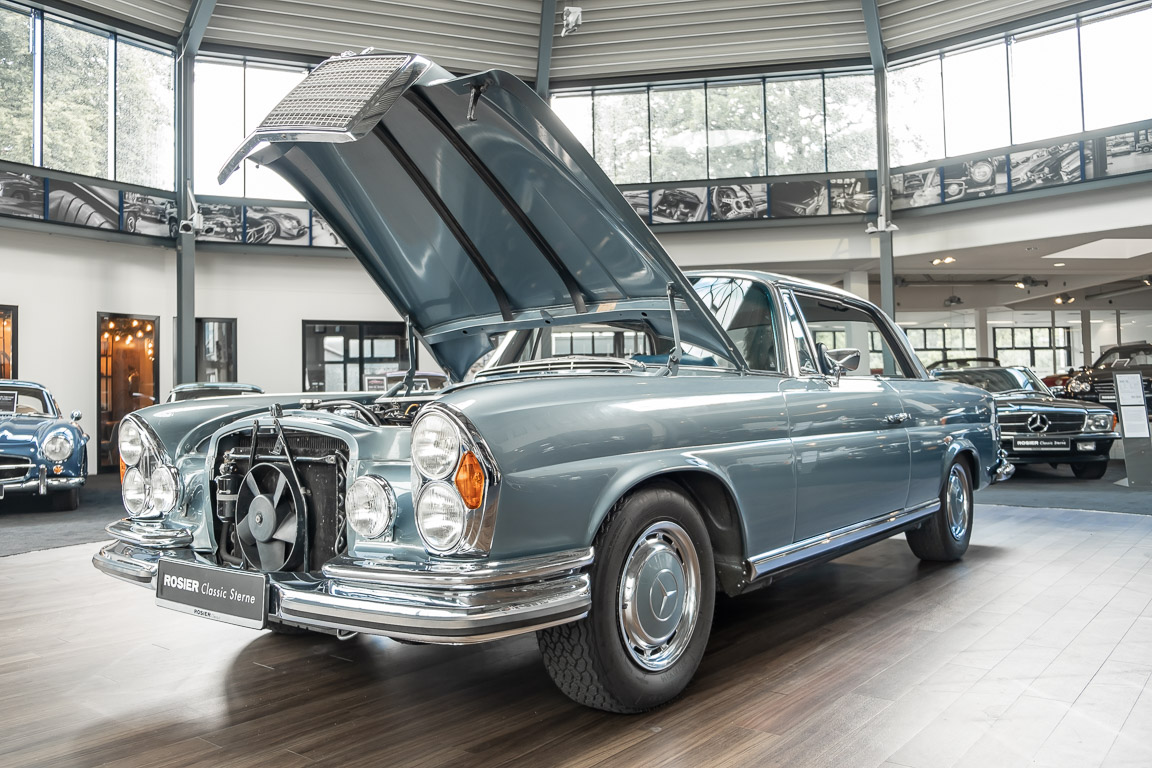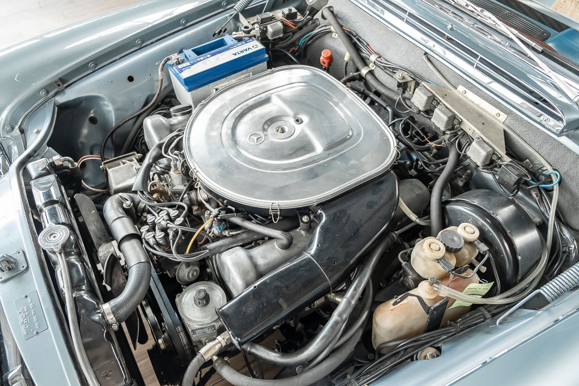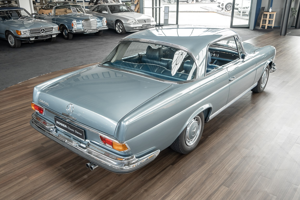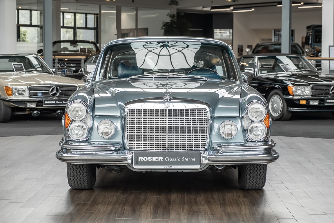 Ende 1969 verließ dieses bildschöne Flachkühler-Coupé die Fabrik in Sindelfingen und wurde im April 1970 seinem ersten Besitzer in Kalifornien übergeben. Es ist wohl dessen umsichtigen Umgang, sachkundiger technischer Betreuung und den günstigen klimatischen Verhältnissen zu verdanken, dass der Wagen in einer ausgezeichneten Kondition erhalten geblieben ist. Zuletzt befand er sich dort in einer Sammlung, worauf auch die niedrige Laufleistung zurückzuführen ist. Nach vierzig Jahren ging es aus dem Sonnenstaat zurück nach Deutschland. Hier bestätigte sich der nach wie vor außergewöhnliche Original-Zustand der Karosserie, der kompletten Innenausstattung und der Technik.