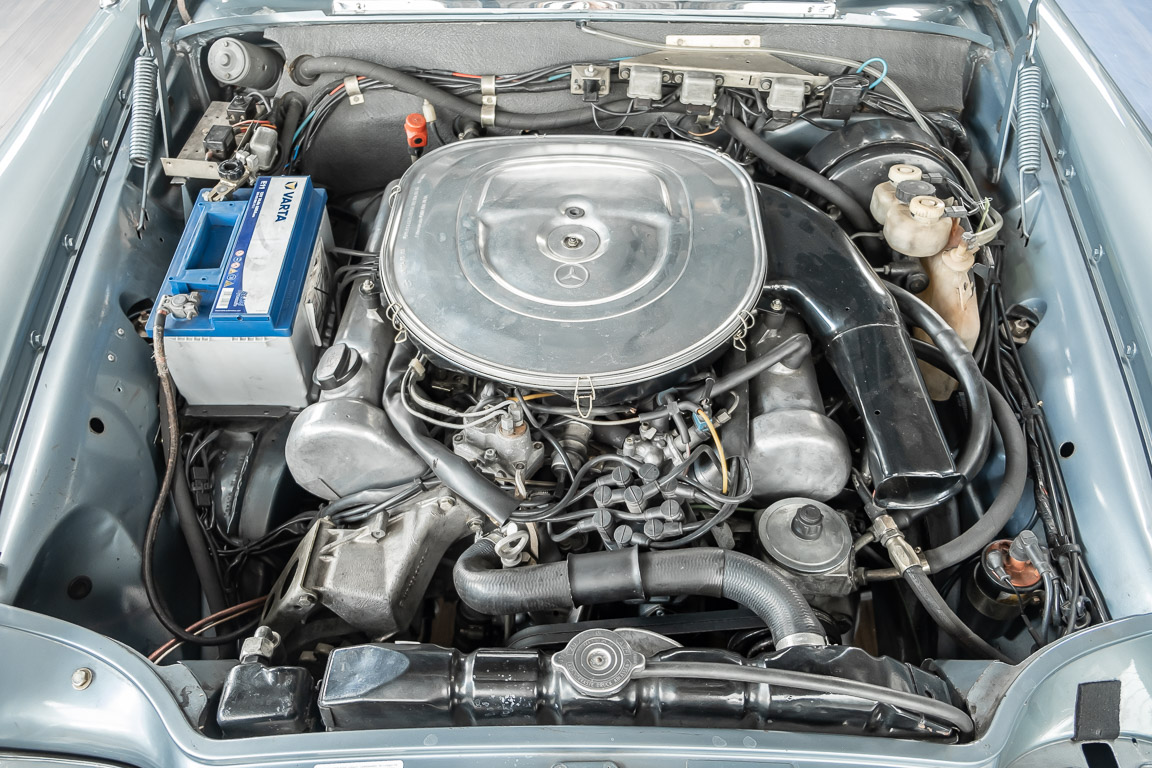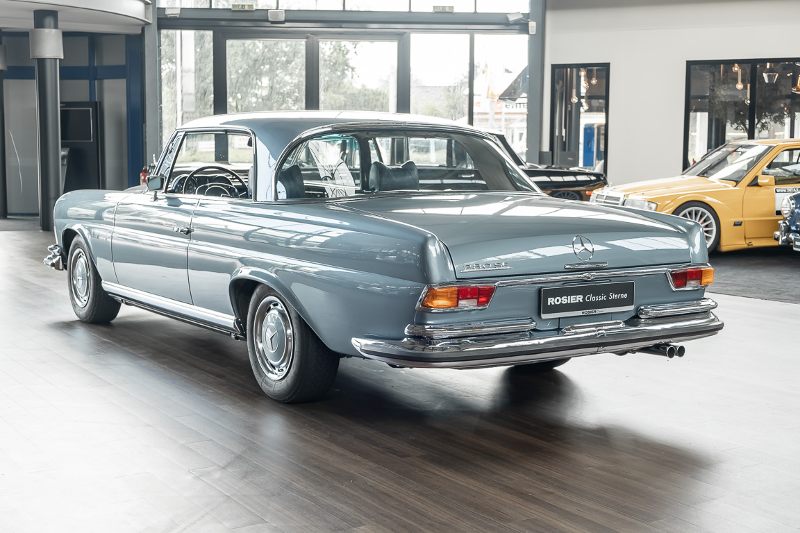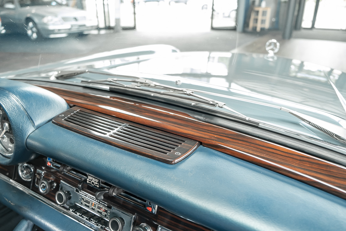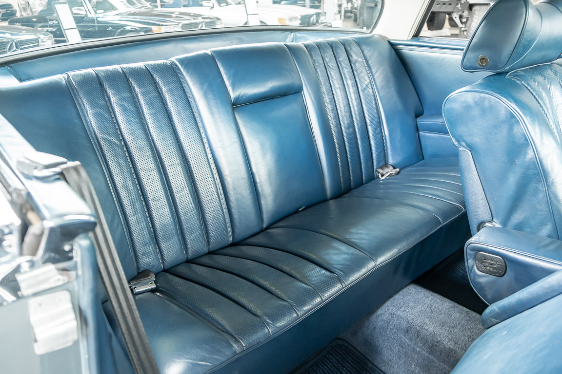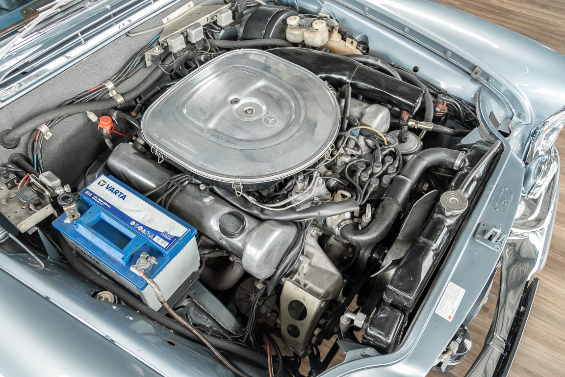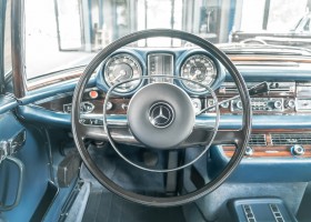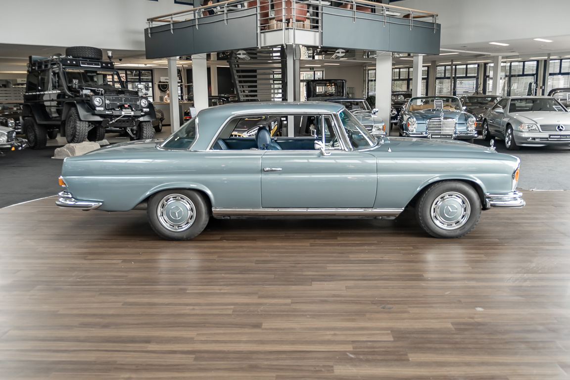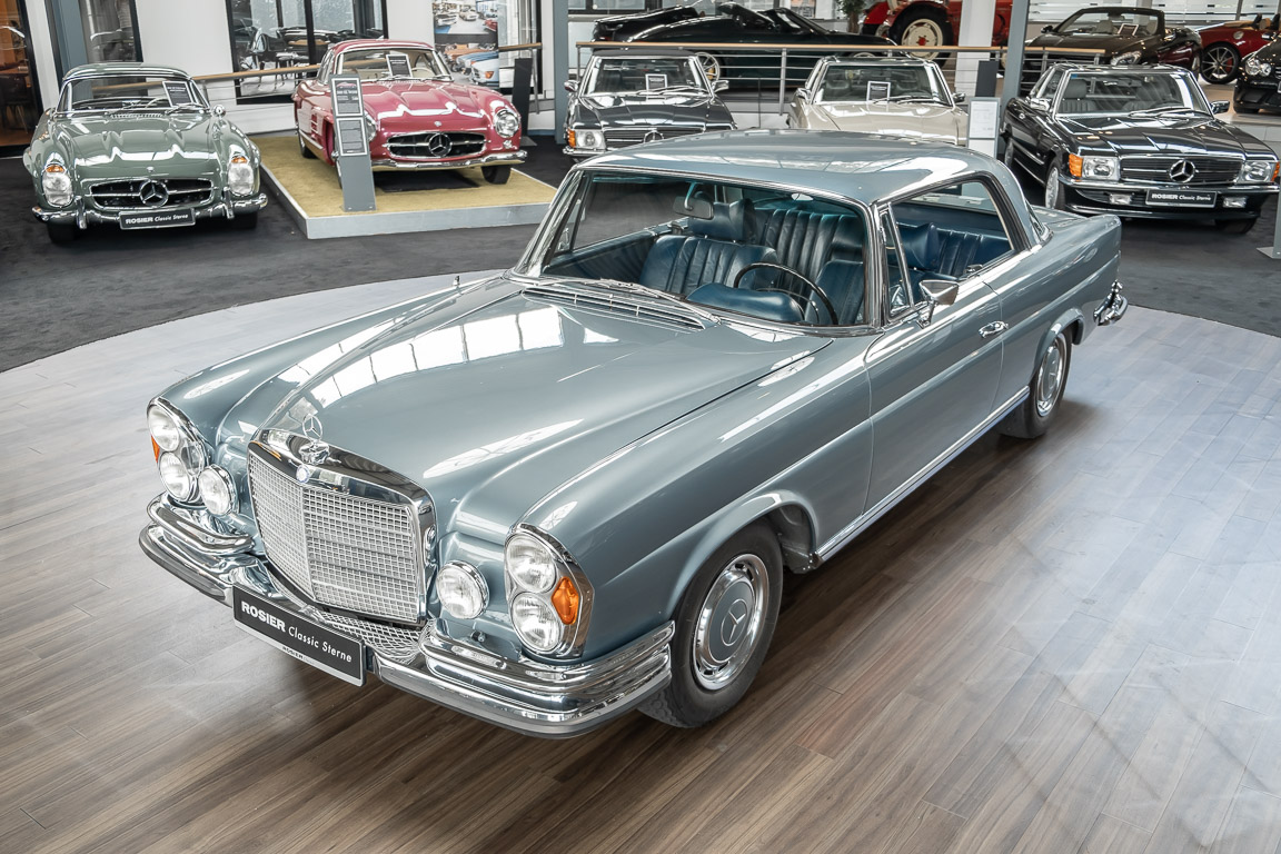 Ende 1969 verließ dieses bildschöne Flachkühler-Coupé die Fabrik in Sindelfingen und wurde im April 1970 seinem ersten Besitzer in Kalifornien übergeben. Es ist wohl dessen umsichtigen Umgang, sachkundiger technischer Betreuung und den günstigen klimatischen Verhältnissen zu verdanken, dass der Wagen in einer ausgezeichneten Kondition erhalten geblieben ist. Zuletzt befand er sich dort in einer Sammlung, worauf auch die niedrige Laufleistung zurückzuführen ist. Nach vierzig Jahren ging es aus dem Sonnenstaat zurück nach Deutschland. Hier bestätigte sich der nach wie vor außergewöhnliche Original-Zustand der Karosserie, der kompletten Innenausstattung und der Technik.
