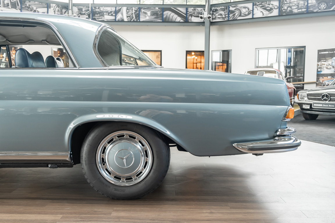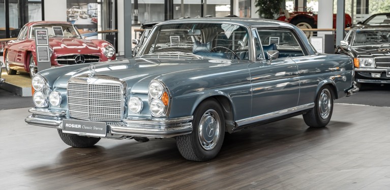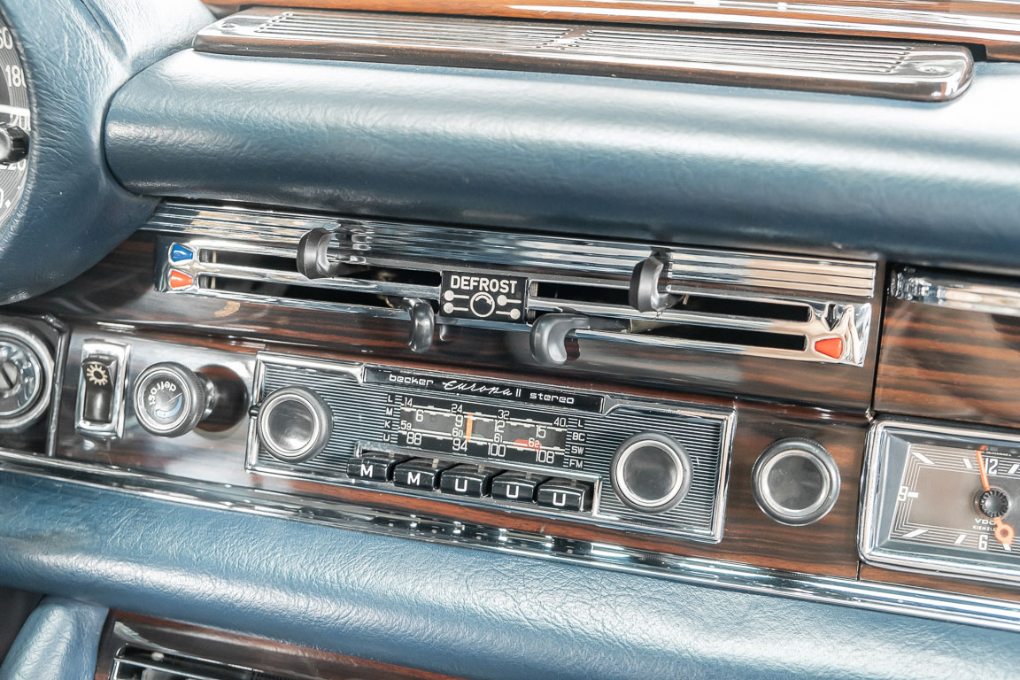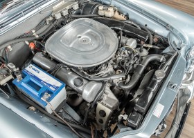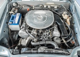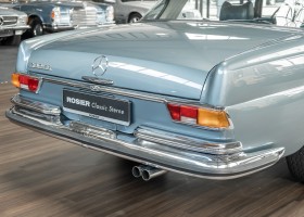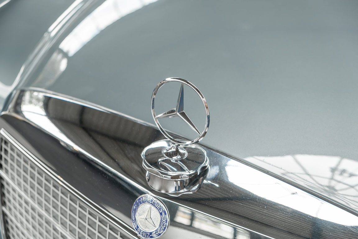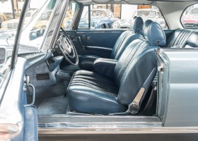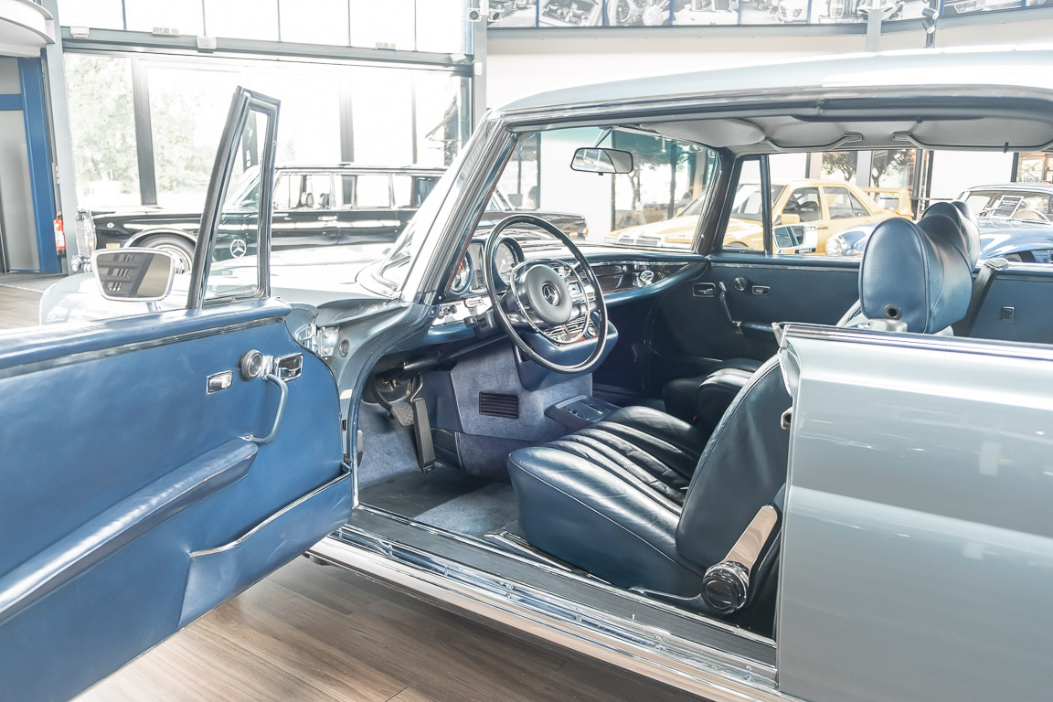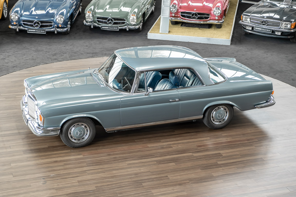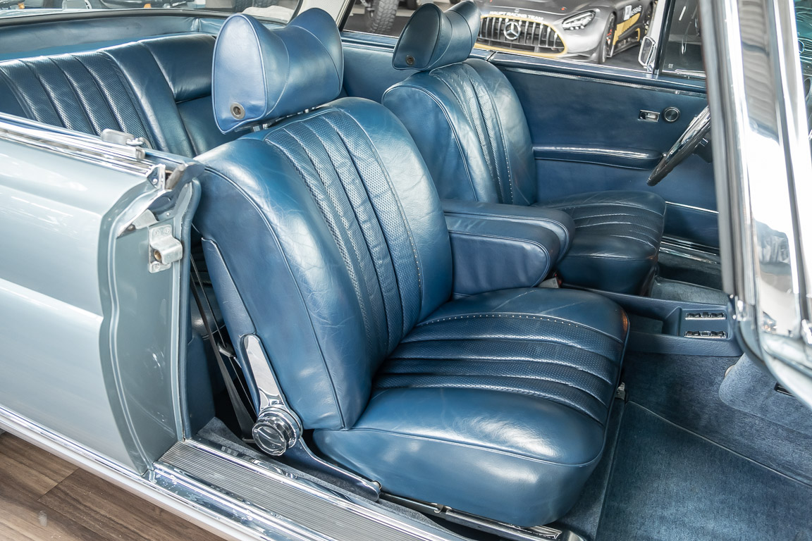 Ende 1969 verließ dieses bildschöne Flachkühler-Coupé die Fabrik in Sindelfingen und wurde im April 1970 seinem ersten Besitzer in Kalifornien übergeben. Es ist wohl dessen umsichtigen Umgang, sachkundiger technischer Betreuung und den günstigen klimatischen Verhältnissen zu verdanken, dass der Wagen in einer ausgezeichneten Kondition erhalten geblieben ist. Zuletzt befand er sich dort in einer Sammlung, worauf auch die niedrige Laufleistung zurückzuführen ist. Nach vierzig Jahren ging es aus dem Sonnenstaat zurück nach Deutschland. Hier bestätigte sich der nach wie vor außergewöhnliche Original-Zustand der Karosserie, der kompletten Innenausstattung und der Technik.