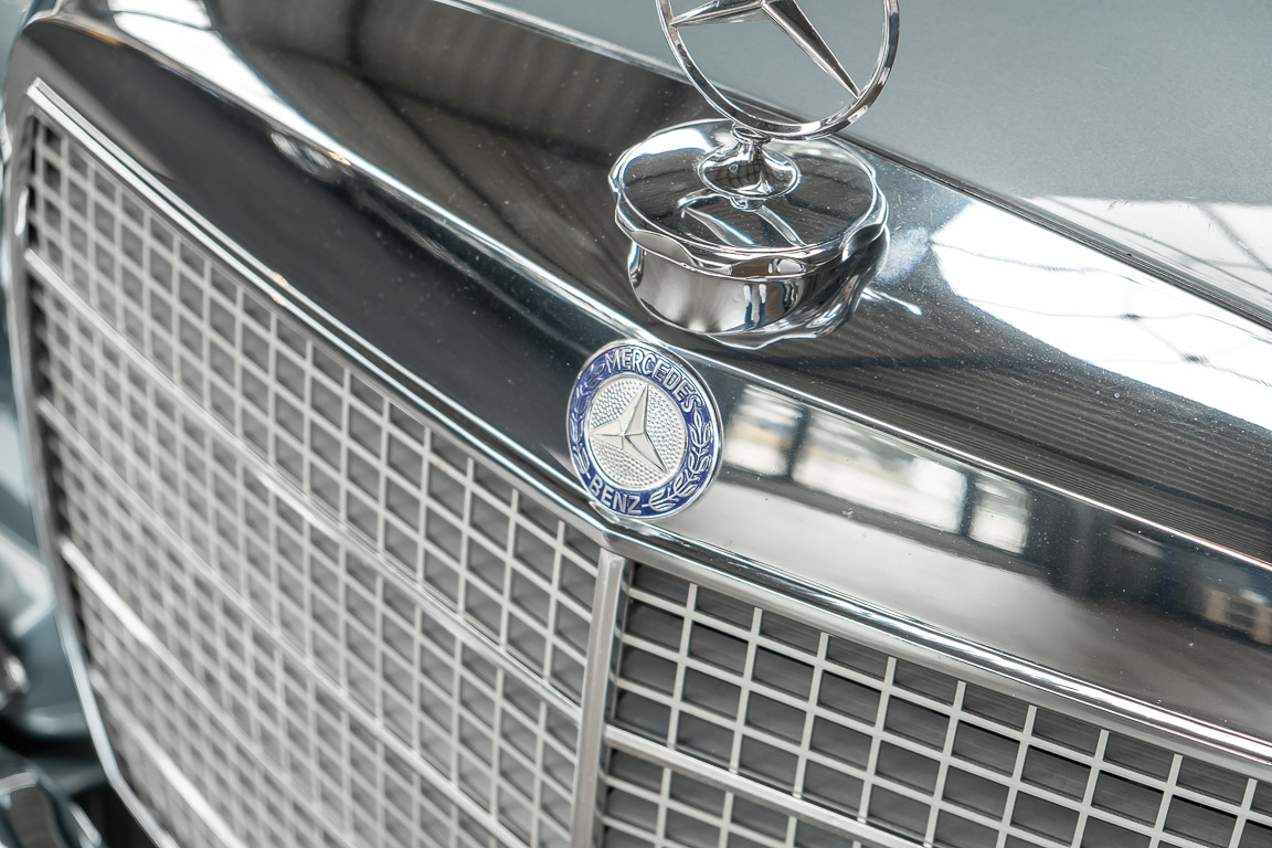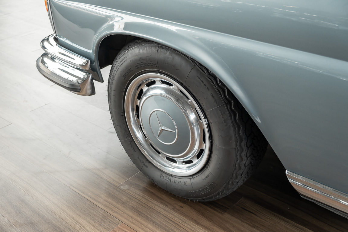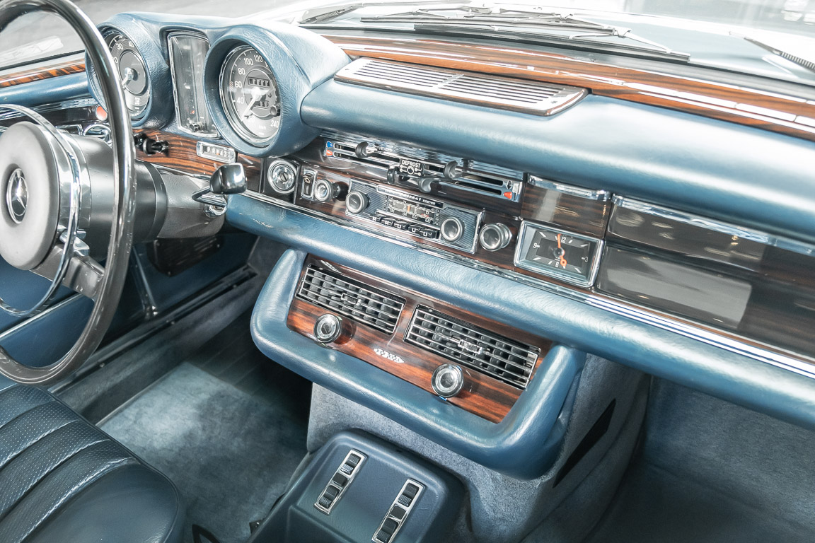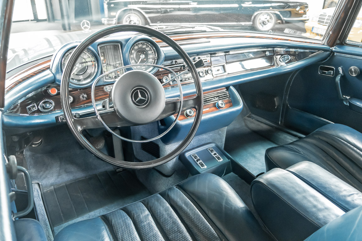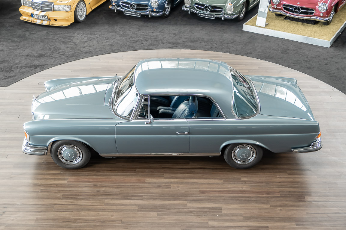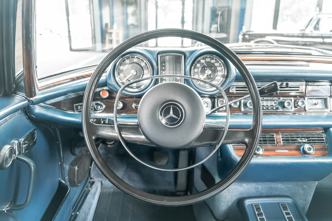 Ende 1969 verließ dieses bildschöne Flachkühler-Coupé die Fabrik in Sindelfingen und wurde im April 1970 seinem ersten Besitzer in Kalifornien übergeben. Es ist wohl dessen umsichtigen Umgang, sachkundiger technischer Betreuung und den günstigen klimatischen Verhältnissen zu verdanken, dass der Wagen in einer ausgezeichneten Kondition erhalten geblieben ist. Zuletzt befand er sich dort in einer Sammlung, worauf auch die niedrige Laufleistung zurückzuführen ist. Nach vierzig Jahren ging es aus dem Sonnenstaat zurück nach Deutschland. Hier bestätigte sich der nach wie vor außergewöhnliche Original-Zustand der Karosserie, der kompletten Innenausstattung und der Technik.