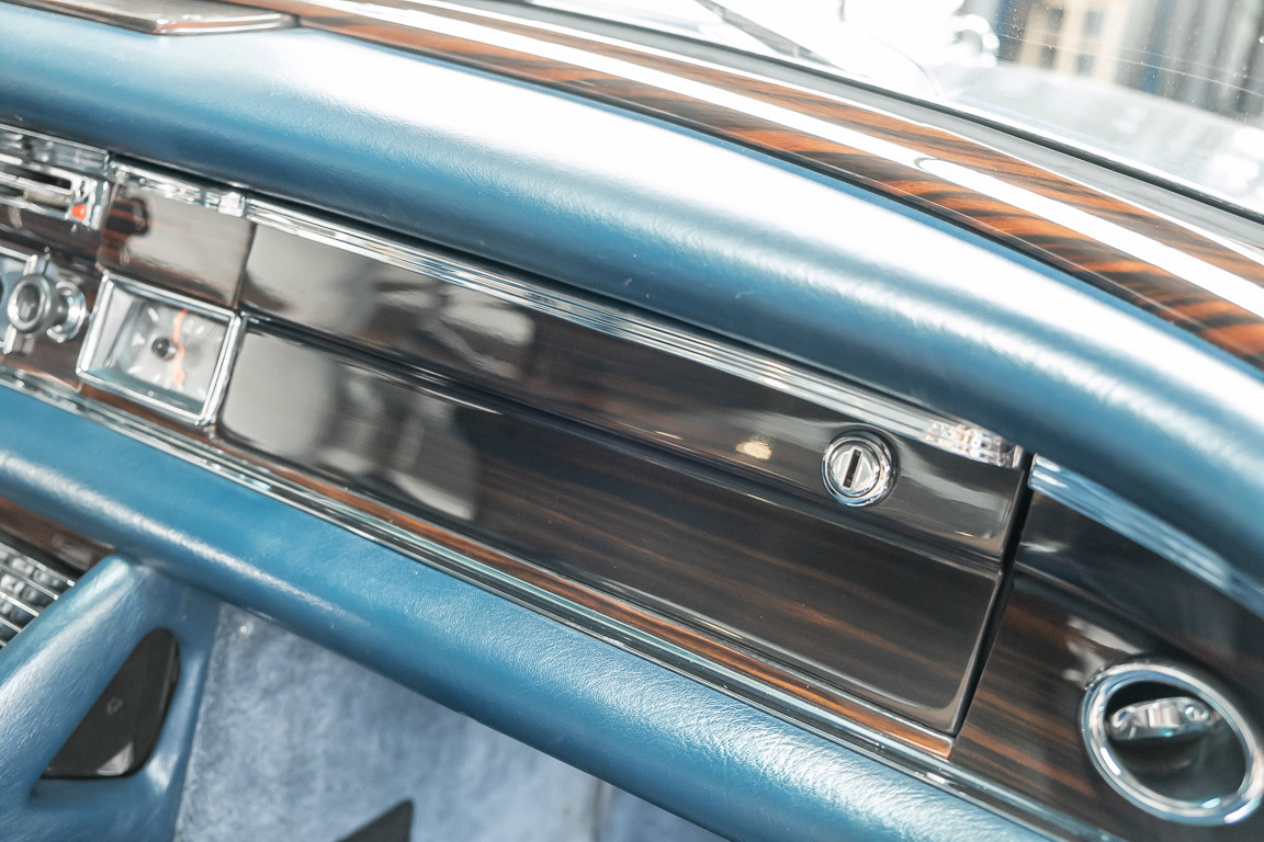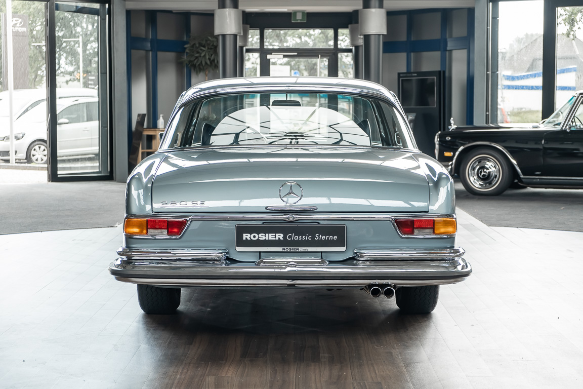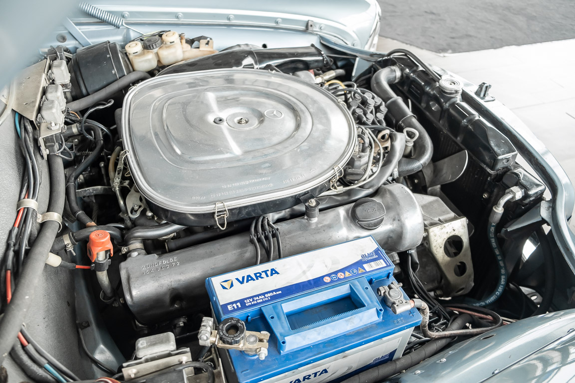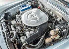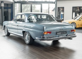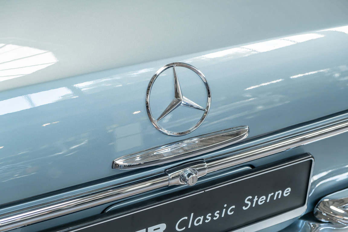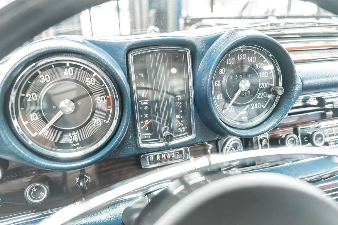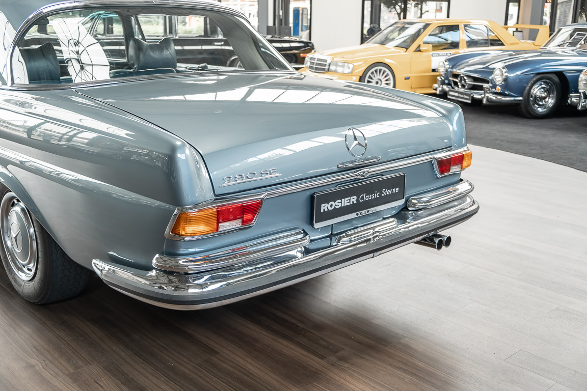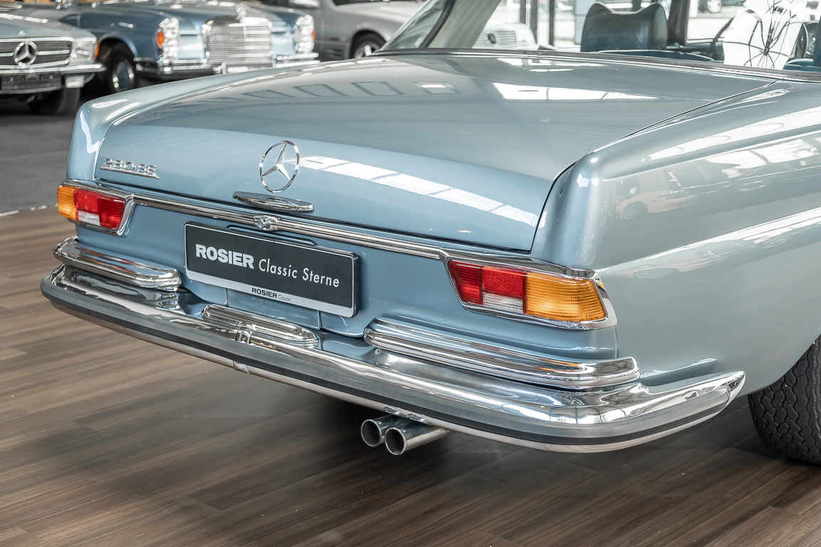 Ende 1969 verließ dieses bildschöne Flachkühler-Coupé die Fabrik in Sindelfingen und wurde im April 1970 seinem ersten Besitzer in Kalifornien übergeben. Es ist wohl dessen umsichtigen Umgang, sachkundiger technischer Betreuung und den günstigen klimatischen Verhältnissen zu verdanken, dass der Wagen in einer ausgezeichneten Kondition erhalten geblieben ist. Zuletzt befand er sich dort in einer Sammlung, worauf auch die niedrige Laufleistung zurückzuführen ist. Nach vierzig Jahren ging es aus dem Sonnenstaat zurück nach Deutschland. Hier bestätigte sich der nach wie vor außergewöhnliche Original-Zustand der Karosserie, der kompletten Innenausstattung und der Technik.