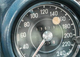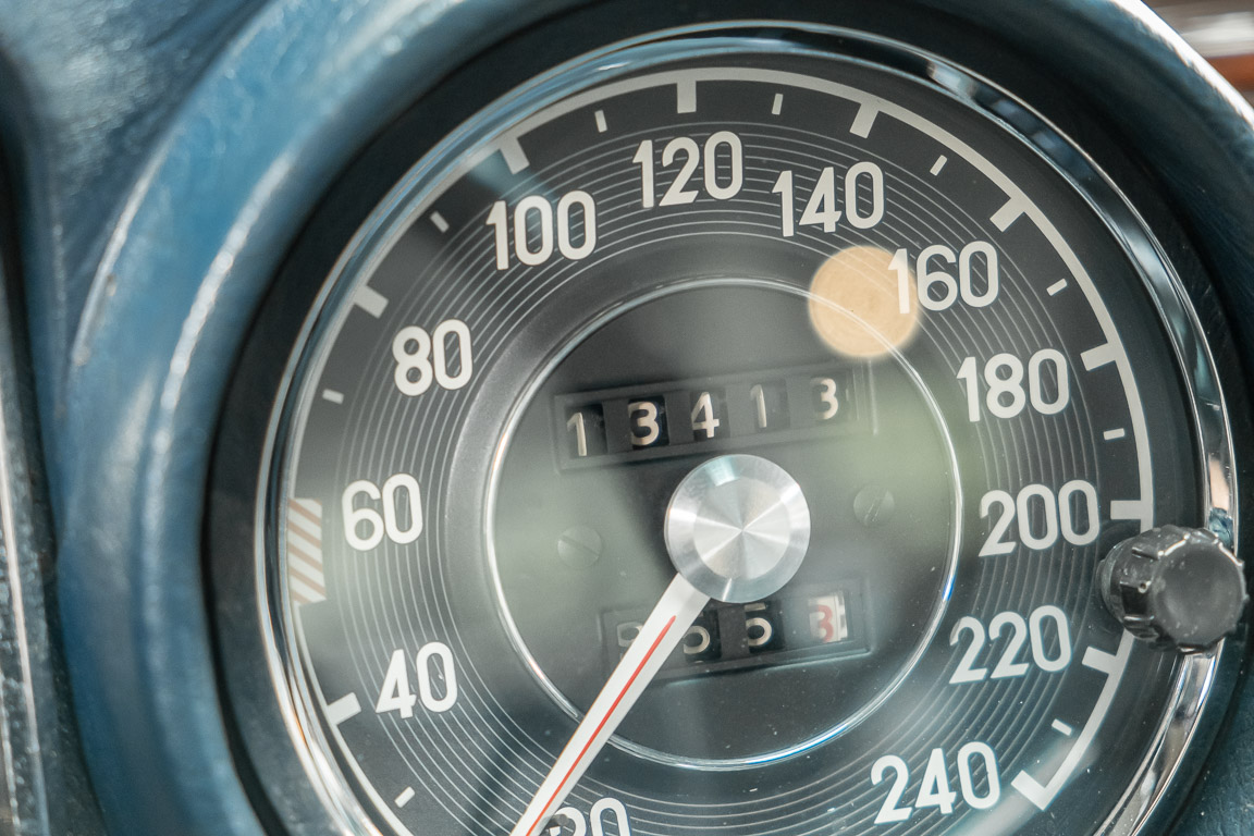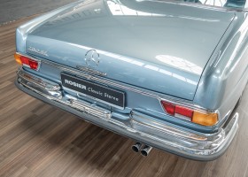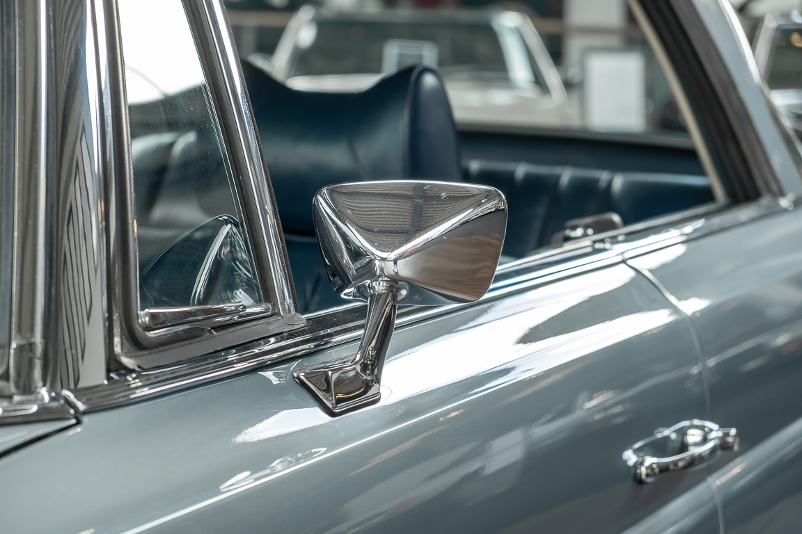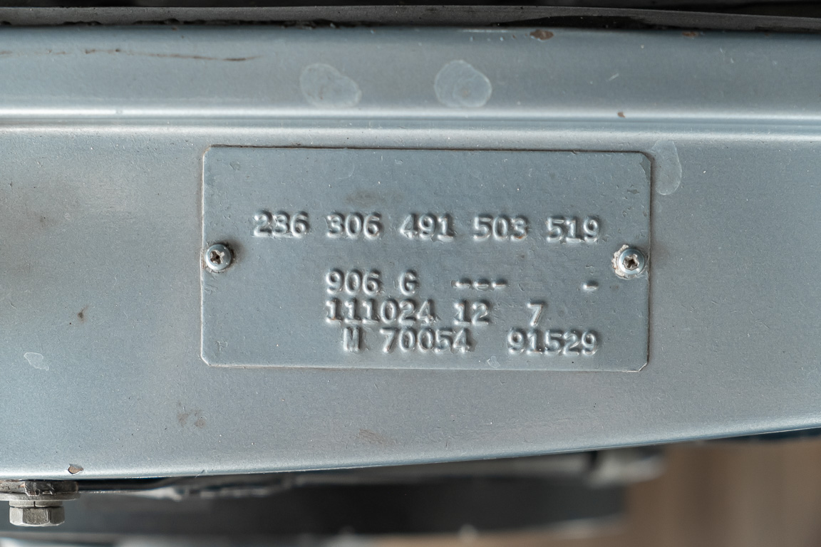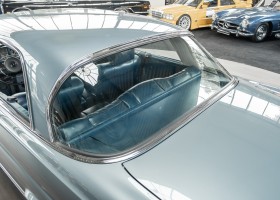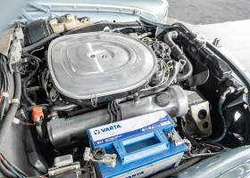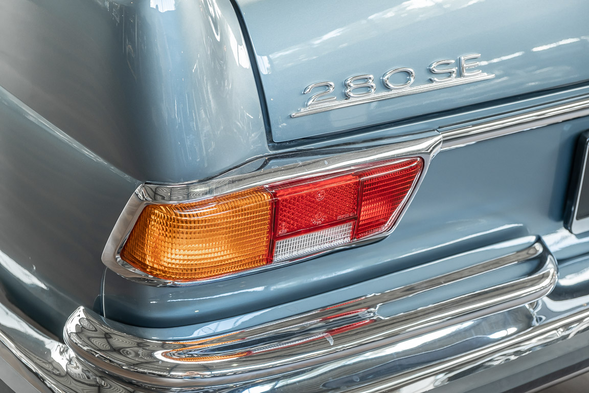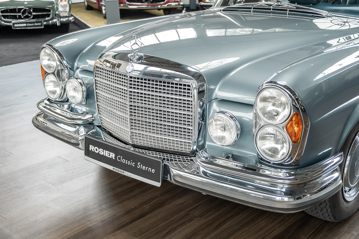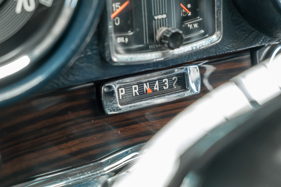 Ende 1969 verließ dieses bildschöne Flachkühler-Coupé die Fabrik in Sindelfingen und wurde im April 1970 seinem ersten Besitzer in Kalifornien übergeben. Es ist wohl dessen umsichtigen Umgang, sachkundiger technischer Betreuung und den günstigen klimatischen Verhältnissen zu verdanken, dass der Wagen in einer ausgezeichneten Kondition erhalten geblieben ist. Zuletzt befand er sich dort in einer Sammlung, worauf auch die niedrige Laufleistung zurückzuführen ist. Nach vierzig Jahren ging es aus dem Sonnenstaat zurück nach Deutschland. Hier bestätigte sich der nach wie vor außergewöhnliche Original-Zustand der Karosserie, der kompletten Innenausstattung und der Technik.