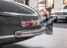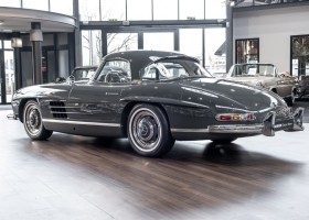 Dieser wundervolle 300 SL Roadster wurde am 02. September 1962 in Sindelfingen fertiggestellt und wurde anschließend an einen niederländischen Mercedes-Benz Händler ausgeliefert. Insgesamt drei Jahre wartete dieser Traum-Roadster auf seinen Erstbesitzer, einem wohlhabenden Herren aus Tilburg. Bis 1972 verbleib das Fahrzeug im Erstbesitz. Anschließend erwarb eine niederländische Familie das Fahrzeug, finanziert durch einen Goldbarren, der bei einer Schweizer Bank eingelagert war. Bis zum Jahre 2008 verblieb das Fahrzeug in der Familie und wurde als „Familienschatz“ mehr oder weniger unberührt gelassen. Das änderte sich im Januar 2009, als das Fahrzeug zum Spezialisten HK Engineering nach Stuttgart überführt wurde. Eine allumfassende und qualitativ perfekte Restauration des Fahrzeuges wurde ohne Rücksicht auf jegliche Kosten umgesetzt. Das Ergebnis ist, optisch wie auch technisch betrachtet, ein Ausnahme-Roadster, wie man ihn wohl nur noch extrem selten vorfindet.