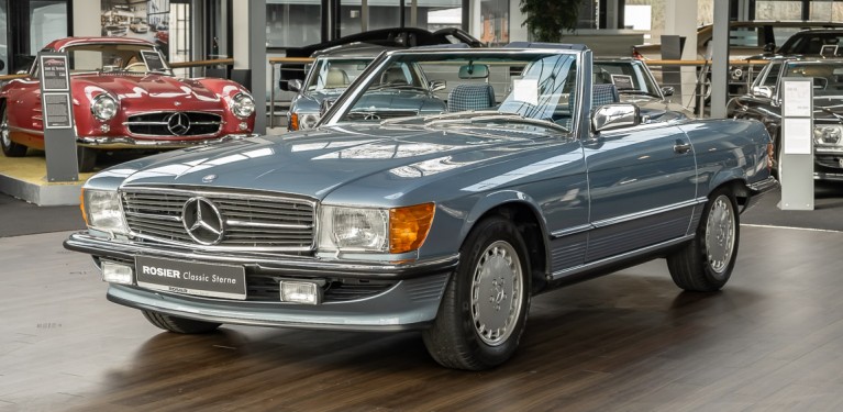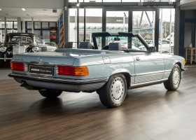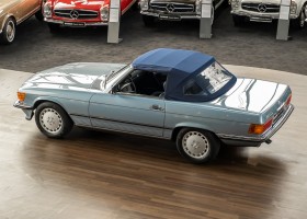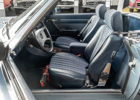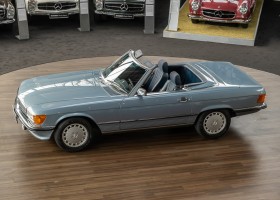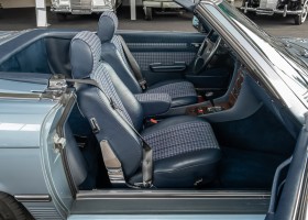 Das vorliegende Serviceheft enthüllt eine interessante Geschichte dieses R107: Am 17. Mai 1988 wurde das Fahrzeug auf ein renommiertes Hotel im Herzen Zürichs zugelassen. Wohl der Besitzer des Hauses erfüllte sich mit diesem diamantblauen Schmuckstück einen lang gehegten Traum. Schon wenige Wochen nach der Auslieferung des Fahrzeuges, in einem Züricher Vorort, machte sich der Hotelier auf eine Reise nach Vigo, ein malerisches Städtchen an der spanischen Westküste. Seinem spanischen Familiennamen nach zu urteilen, wohl ein Besuch in der Heimat. Kaum vorstellbar, welch traumhafte Straßen auf der knapp 2.000 Kilometer langen Fahrt durchquert wurden. Vorbei am Genfer See, durch Lyon und Bordeaux und durch das bergige Baskenland Spaniens.