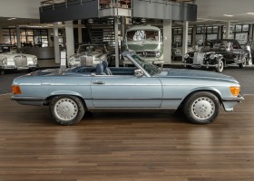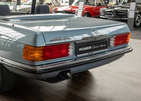 Wir freuen uns, Ihnen diesen wundervollen 420 SL der Baureihe 107 anbieten zu dürfen. Der Charme dieses traumhaften Roadsters in Diamantblau Metallic ist enorm und verzaubert sein Umfeld sofort. Mit einer sensationellen Laufleistung von gerade einmal 14.700 km und einem unfassbaren Pflegezustand überzeugt das Fahrzeug nicht nur optisch sondern auch technisch auf ganzer Linie.