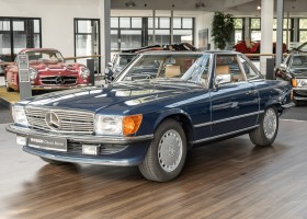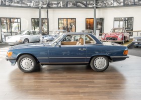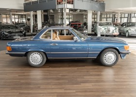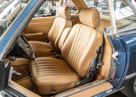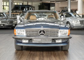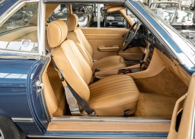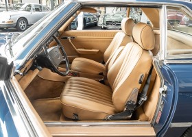 Wir freuen uns, Ihnen diesen 560 SL der Baureihe 107 anbieten zu können. In der stilvollen Farbkombination aus einer Lackierung in „nautikblau metallic“ im Zusammenspiel mit Leder im warmen Farbton „Dattel“ strahlt dieser Wagen eine zeitlose Anziehungskraft aus. Während man mit einer Leistung von 230 PS in jeder Lebenslage mühelos dahingleitet, erfährt der Fahrer eine tadellose und gepflegte Technik. Bremsen, Beschleunigen, Schalten: alles arbeitet wie es soll. Das Fahrzeug wird mit frischer Hauptuntersuchung, einem aktuellen Service sowie mit Hardtop an seinen neuen Besitzer übergeben. Eine absolute Wonne, sich diesem Roadster hinzugeben. „Erfahren“ Sie es selbst. Willkommen bei ROSIER Classic Sterne.