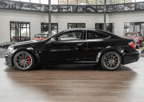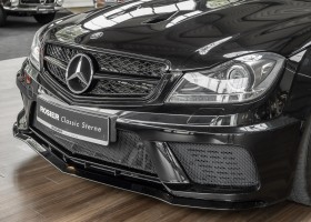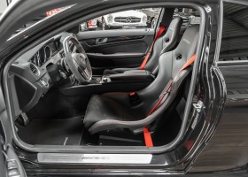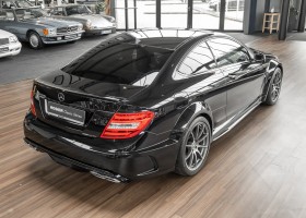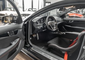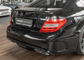 Wir freuen uns, Ihnen dieses C 63 AMG Coupé in der seltenen Black Series Ausführung anbieten zu dürfen. Als höchste Ausbaustufe der Baureihe 204 schöpft der Black Series 517 PS aus 6,3 Liter Hubraum – nur etwa 800 Enthusiasten kamen damals in den Genuss dieses Ausnahmesportlers. Insgesamt nur drei Vorbesitzer durften sich dem Genuss dieses V8 hingeben. Die Emotionen, die dieser letzte echte AMG Sauger weckt, sind nur schwer in Worte zu fassen. Die Lackierung in Obsidian Schwarz Metallic in Kombination schwarzem Alcantara und roter Ziernaht steht diesem Black Series wie ein Maßanzug. Das Fahrzeug ist komplett gewartet und wird mit frischer HU/AU an seinen neuen Besitzer übergeben. Nutzen Sie diese besondere Gelegenheit und erfahren Sie den Mythos dieses Black Series.
