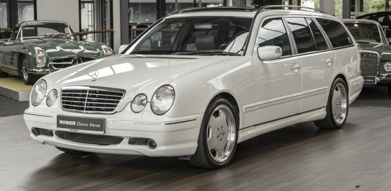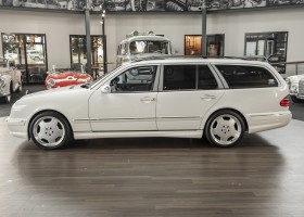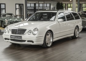 Wir freuen uns, Ihnen dieses rar gewordene E 55 AMG T-Modell der Baureihe 210 anbieten zu können. Nur wenige Fahrzeuge der Baureihe 210 haben den Kampf gegen den Rostverfall gewinnen können. Um so interessanter entwickelt sich der Markt für gute Exemplare der E-Klasse der 1999er und 2000er Jahre. Das Topmodell stellte ab 1999 die AMG Version E 55 mit 5,5 Liter V8 Saugmotor da. Besonders gesucht sind hierbei die T-Modelle, von deren Kombination aus Platz, Komfort und Power eine ganz besondere Faszination ausgeht. Mit 354 PS und kraftvollem Achtzylinder-Sound ist dieser Power-Kombi eine absolute Wucht.