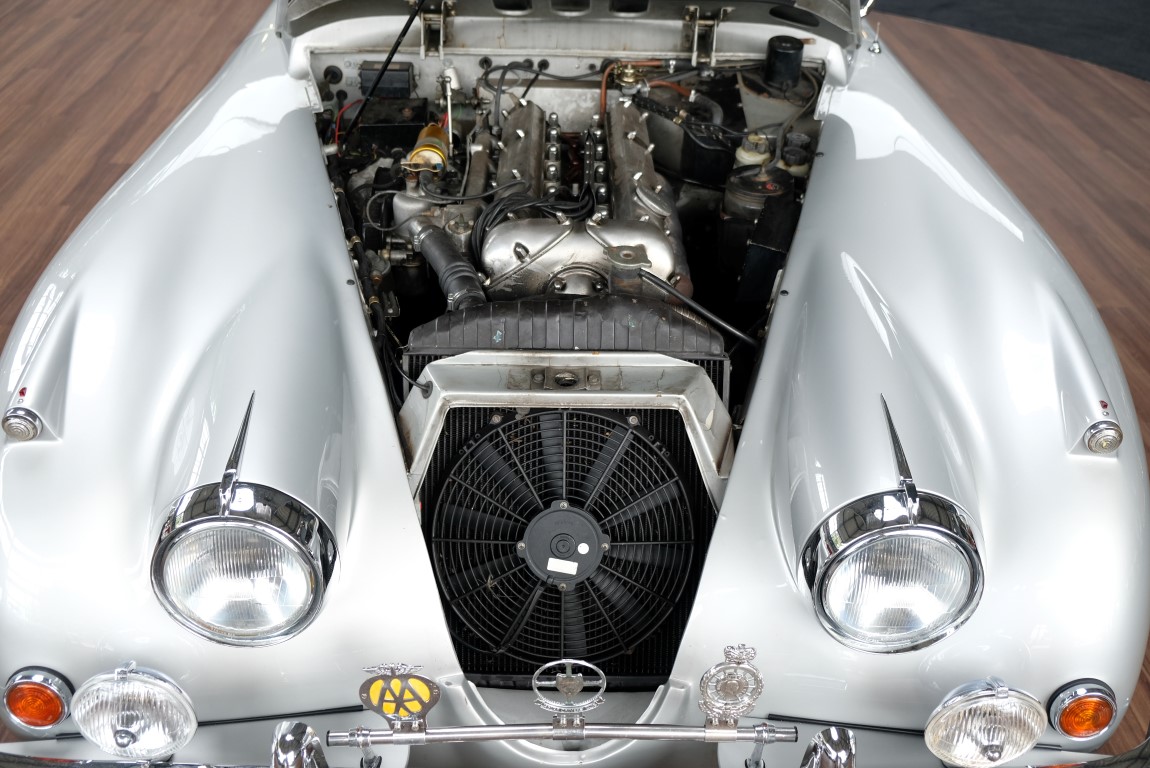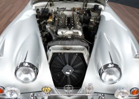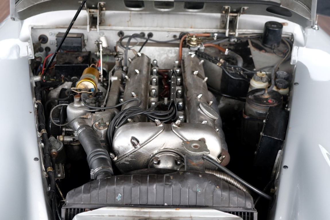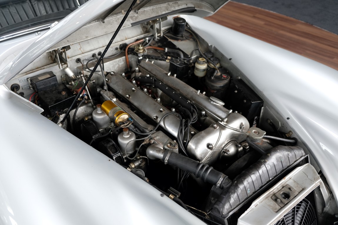 In 1996, the Jaguar was discovered by a German vintage car restaurateur from Germany, he brought it to Germany and subjected to a major revision. Moreover, he was painted in elegant silver metallic. Soon, a new owner had found. He used the Jaguar for beautiful excursions, regularity rallies or even long excursions. He had it, now 22 years in his possession, regularly maintain. The old gearbox has been replaced by a comfortable 5-speed gearbox, a power steering makes for a comfortable ride, even in narrow streets or in the city. A great "daily driver" with some traces of life, but with whom one can live well.