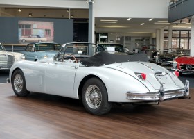 "More space, finally," some Jaguar enthusiasts shouted in the late 1950s, when the XK 150 DHC (Drop Head Coupe) came to the market. A cabriolet in a modern style, with panoramic windows, crank windows, rear seats, 4 disc brakes and more space. Tall drivers could now sit more comfortably than was possible in the predecessor of the XK 140.