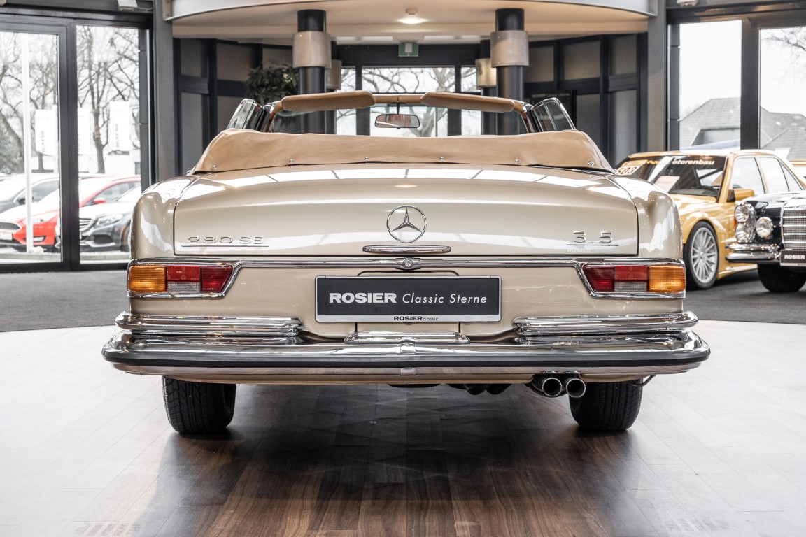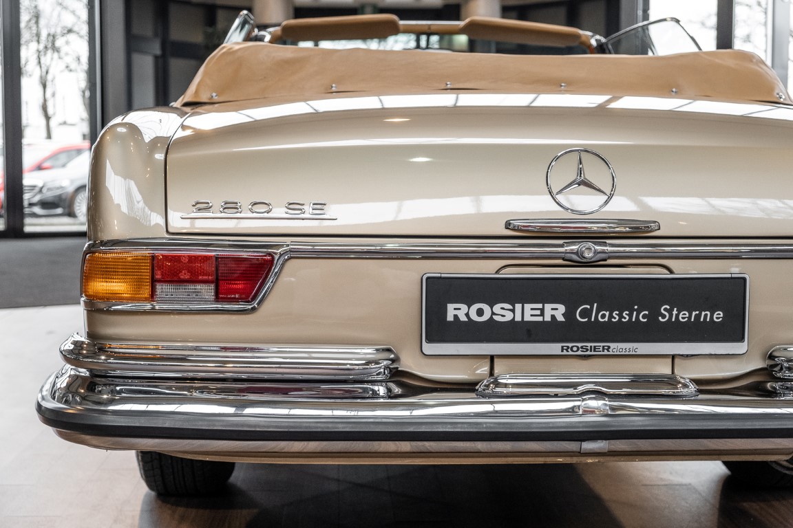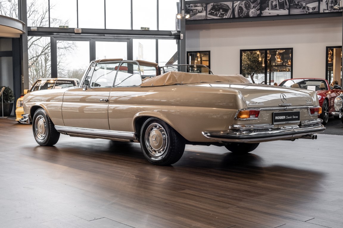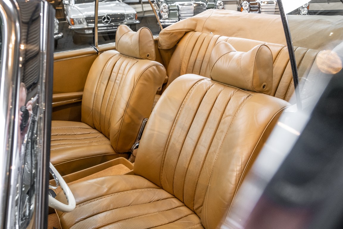 In 2010, the car came back to Germany. From the very beginning, the 280 SE 3.5 Cabriolets of the Mercedes 111 series were ranked very high in the popularity scale of classic car friends and were highly sought after in the classic car market. Rosier Classic-Sterne had purchased the car and, despite an exceptionally good base, had subjected it to an extensive overhaul. So the car was stripped down to the bodyshell, everything checked and reassembled piece by piece. The very well preserved original leather was carefully reworked by a top German saddler and presents itself in uniquely good condition. We were subsequently able to sell the car to a collector who used the convertible from time to time in good weather and from whose collection we are now allowed to sell the vehicle - due to the large number of vehicles. The collector's high quality standards led him to have the engine extensively rebuilt by the specialists in the engine construction department of our factory, so that the legendary 3.5-liter engine now also shines in new splendor and is in no way inferior to its appearance. - Experience it for yourself and get an idea of this icon!