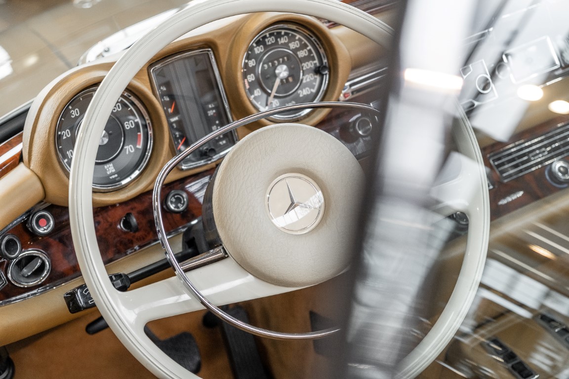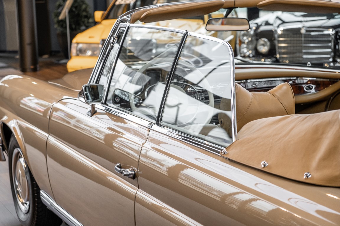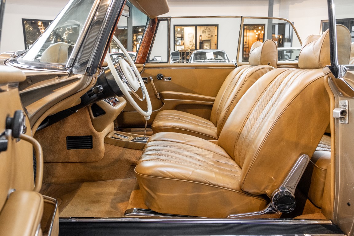The 280 SE 3.5 Cabriolet offered here in sand beige metallic was delivered on 01.04 1971 to a company based in Munich. The car was regularly serviced at the Mercedes-Benz partner Werlin in Rosenheim, which can be seen impressively in the original customer service checkbook. When the elegant convertible was sold in the 1980s, it found its new home in faraway Japan. It was given a worthy place in a recognized museum in Tokyo/Japan and remained there for over 20 years.
