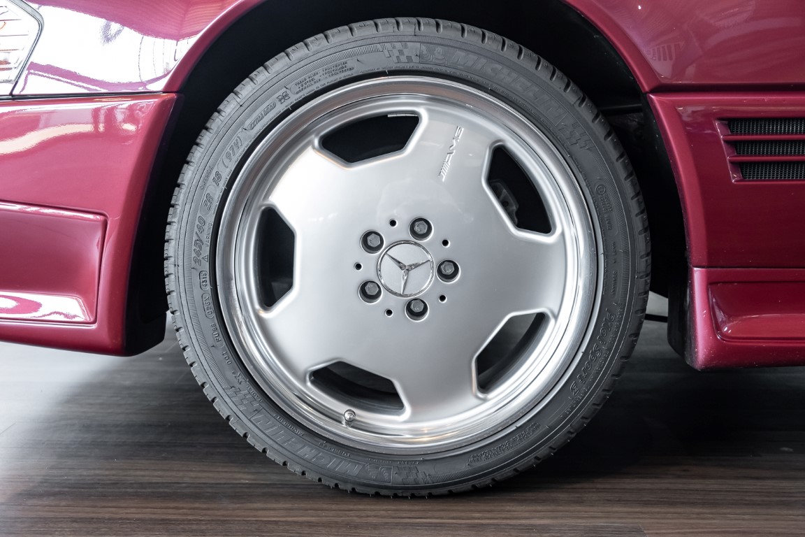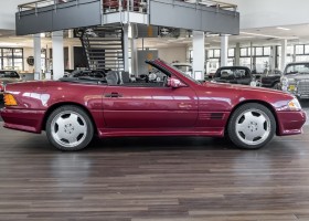 The SL is considered the epitome of open-top sports cars and is a long-cherished dream for many. A dream which the first owner from the Teuteburg Forest fulfilled in February 1995 with this SL 280 of the 129 series. It was to be Almadin red metallic and the AMG optics package was to be on board, which at the time cost a proud 7,000 marks extra. The original vehicle invoice documents a proud purchase price of DM 138,341.78 in total.