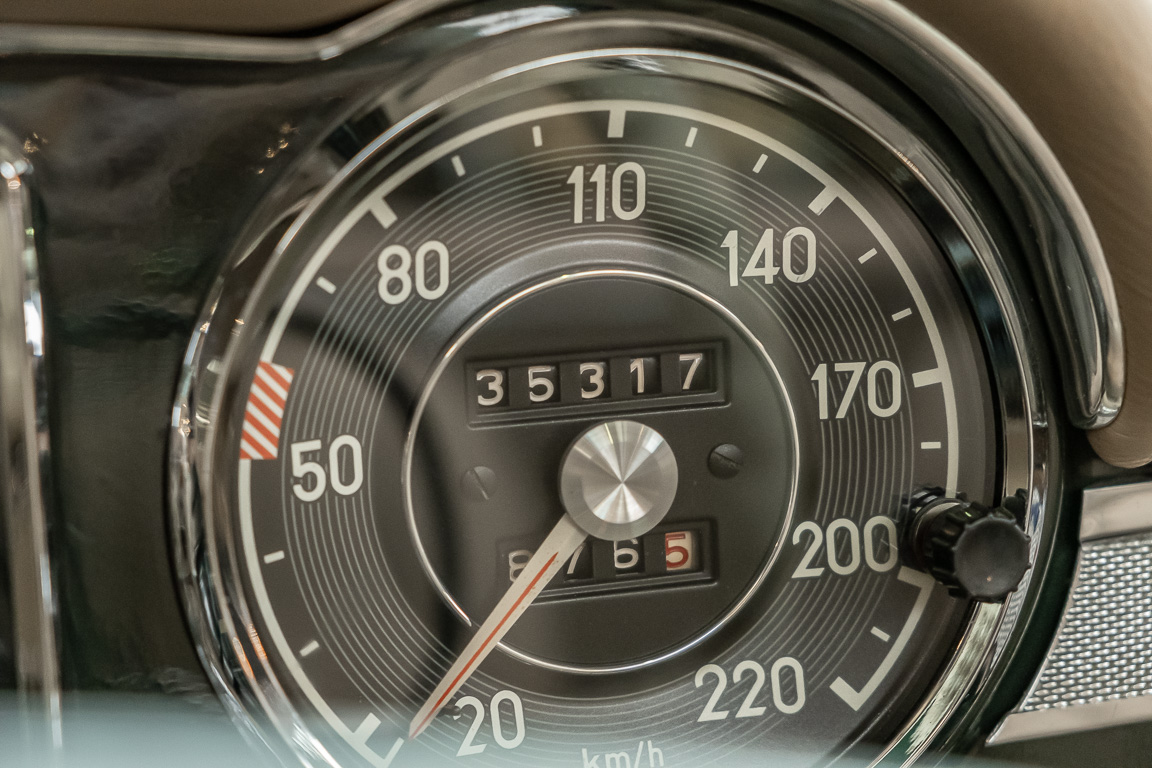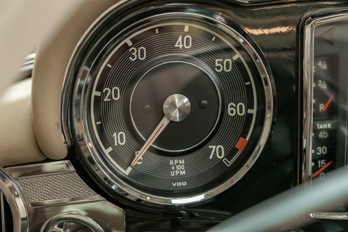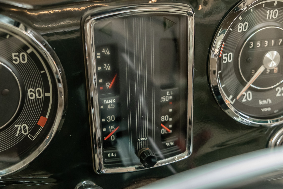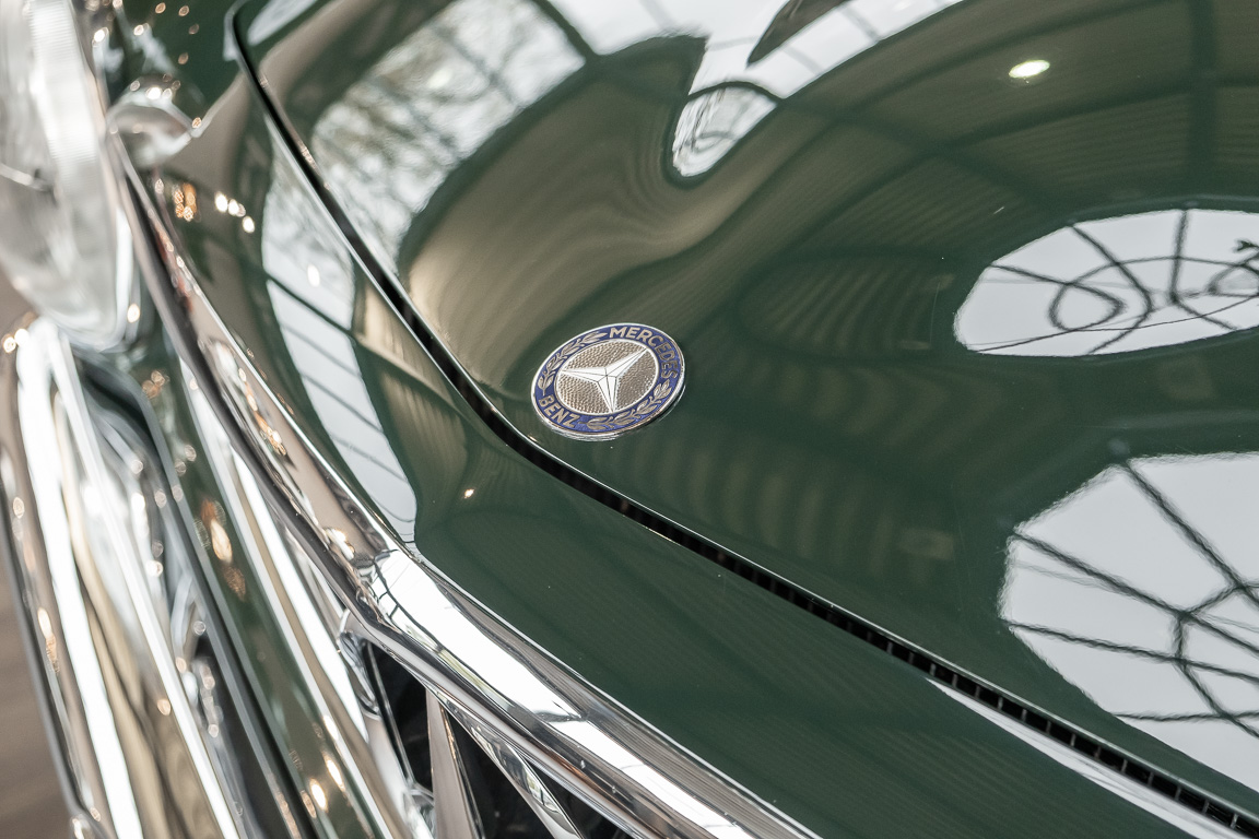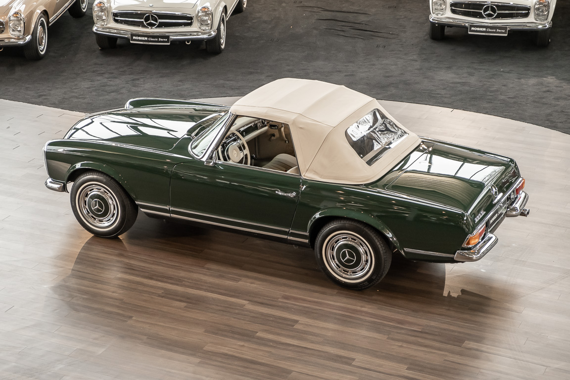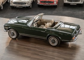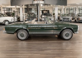 The car was completed in March 1971 at the Mercedes factory in Sindelfingen, Swabia. Its buyer was based in sunny California/USA. He loved green tones and sporty automobiles. He had ordered his dream car in distinguished dark olive green, in combination with light upholstery. A rarely beautiful contrast.