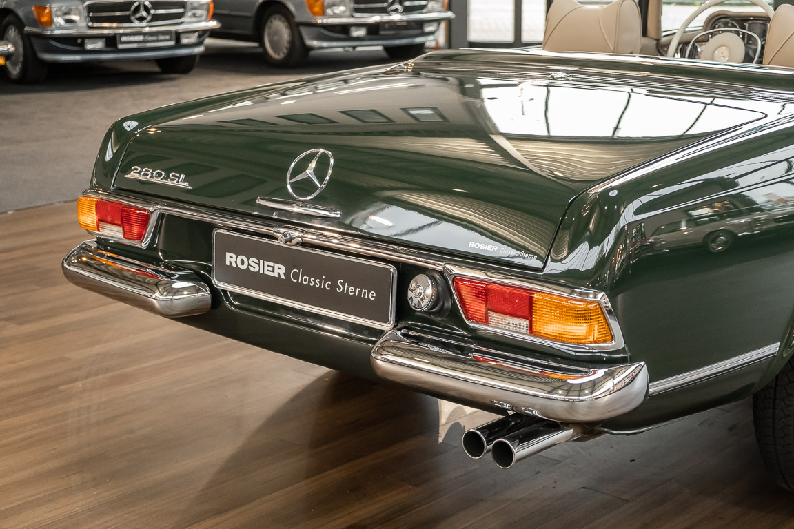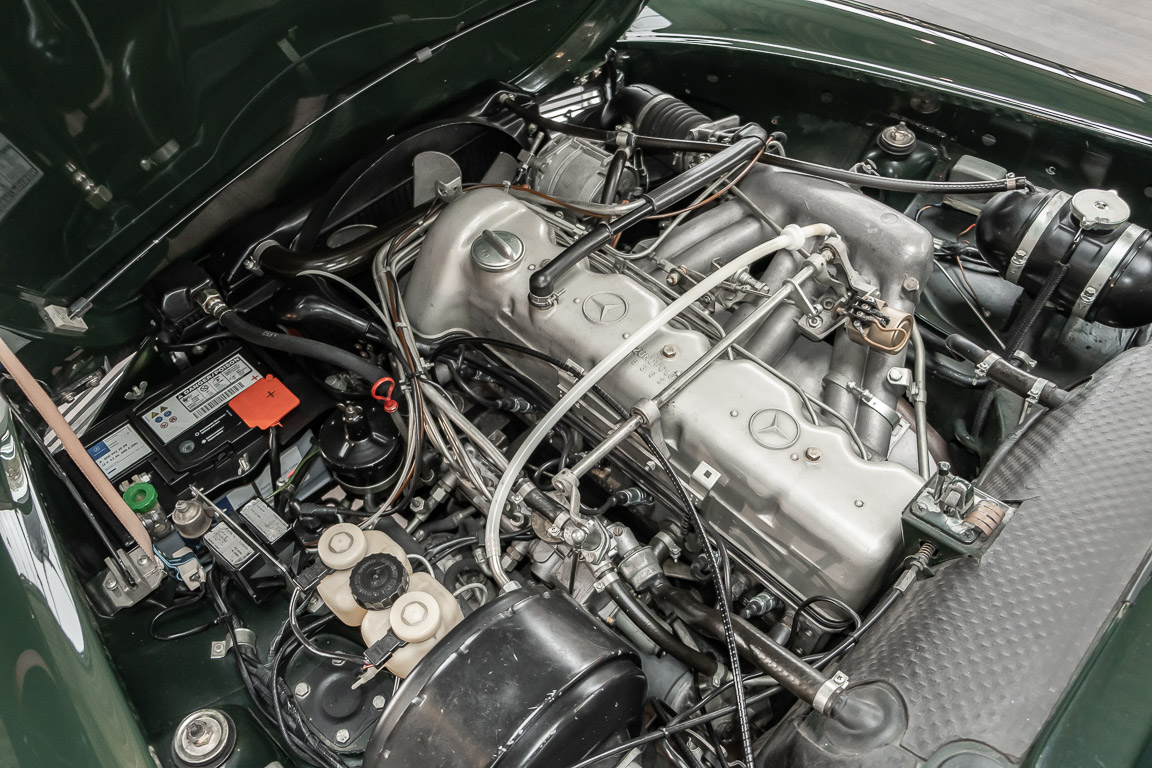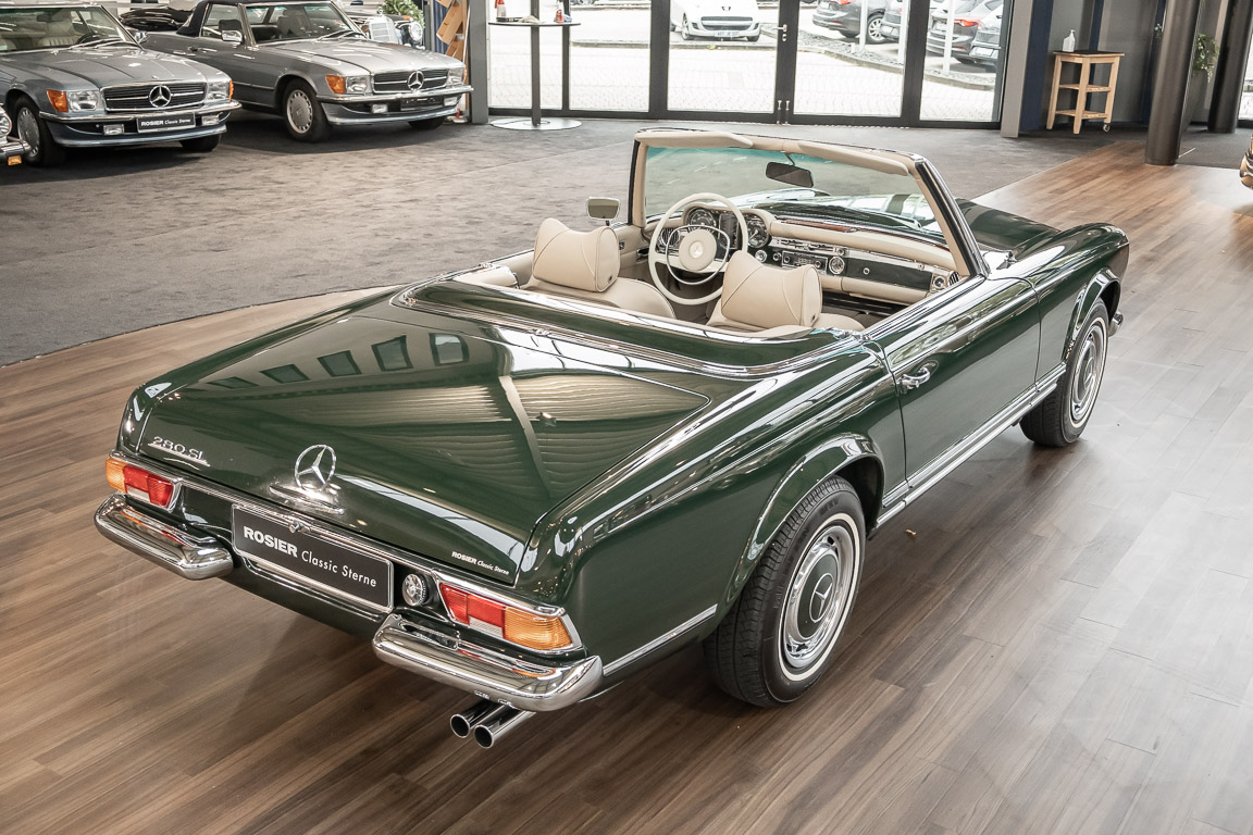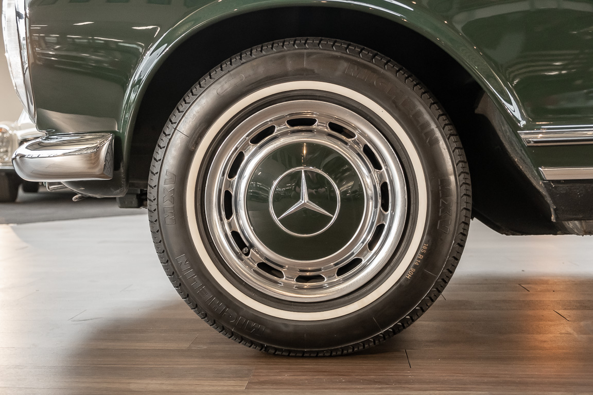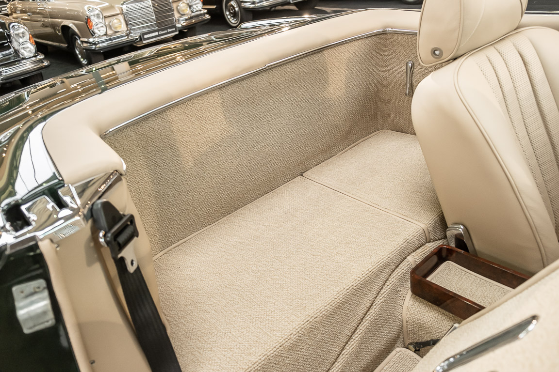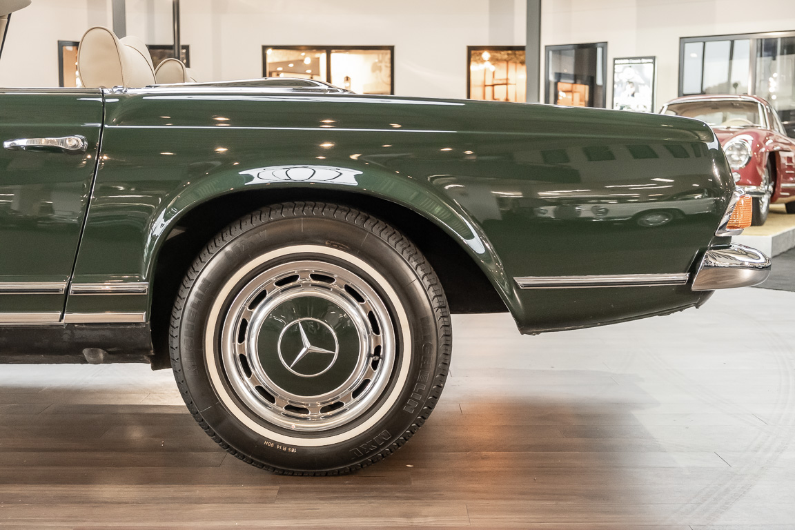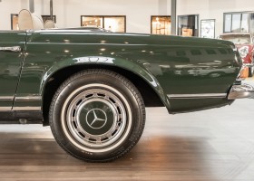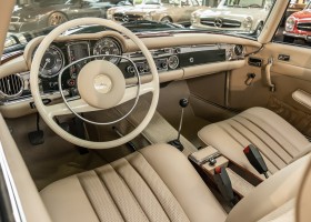 The Pagoda remained in the sunny climes of California all these years and came to CLASSIC M B Inc. in Santa Ana/California/USA in the summer of 2002. Lother Motschenbacher, the CEO of the company, had personally taken delivery of the car.  He already had a buyer for it.  A customer was looking for just such a Pagoda and bought the car immediately. He was at home in a residential area populated with single-family homes in San José/California USA, less than an hour away from San Francisco. He kept the car until 2007. A German collector acquired the car, probably also through Lother Motschenbacher, the CEO of CLASSIC M B Inc. as can be seen from a note on invoice receipts. The collector places great emphasis on reliability and quality in his vehicles. The idea that "the better is the enemy of the good" comes up again and again. So his technicians quickly get the job of stripping the vehicle down to its bodyshell and restoring it. The result is impressive. In addition to its uniquely beautiful appearance, the car drives powerfully and solidly. The transmission shifts correctly and easily. We would be happy to show you the car in detail in our premises here in Oldenburg. You will be thrilled.