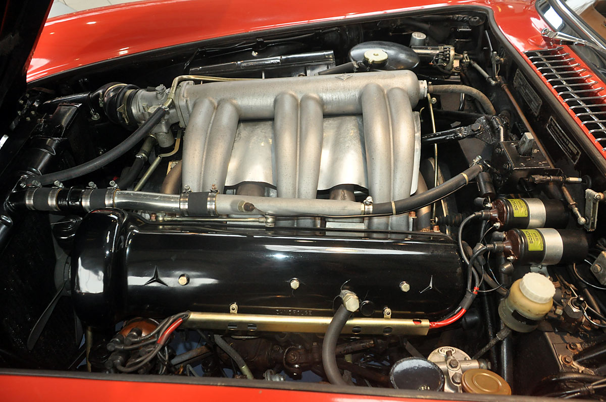 It is equipped with a Becker radio, hardtop and original leather trim in tan/beige. Its exterior colour is 534 G red. It once belonged to Kenneth Balcony in Madison, Wisconsin / USA.