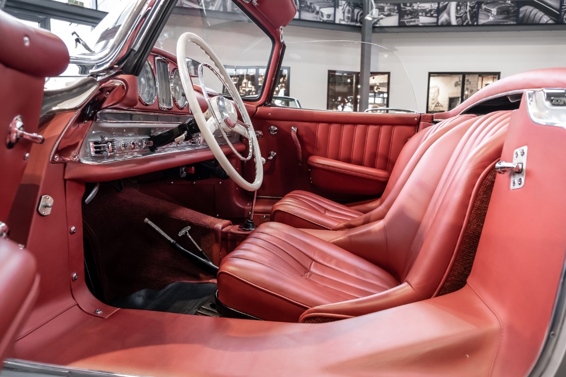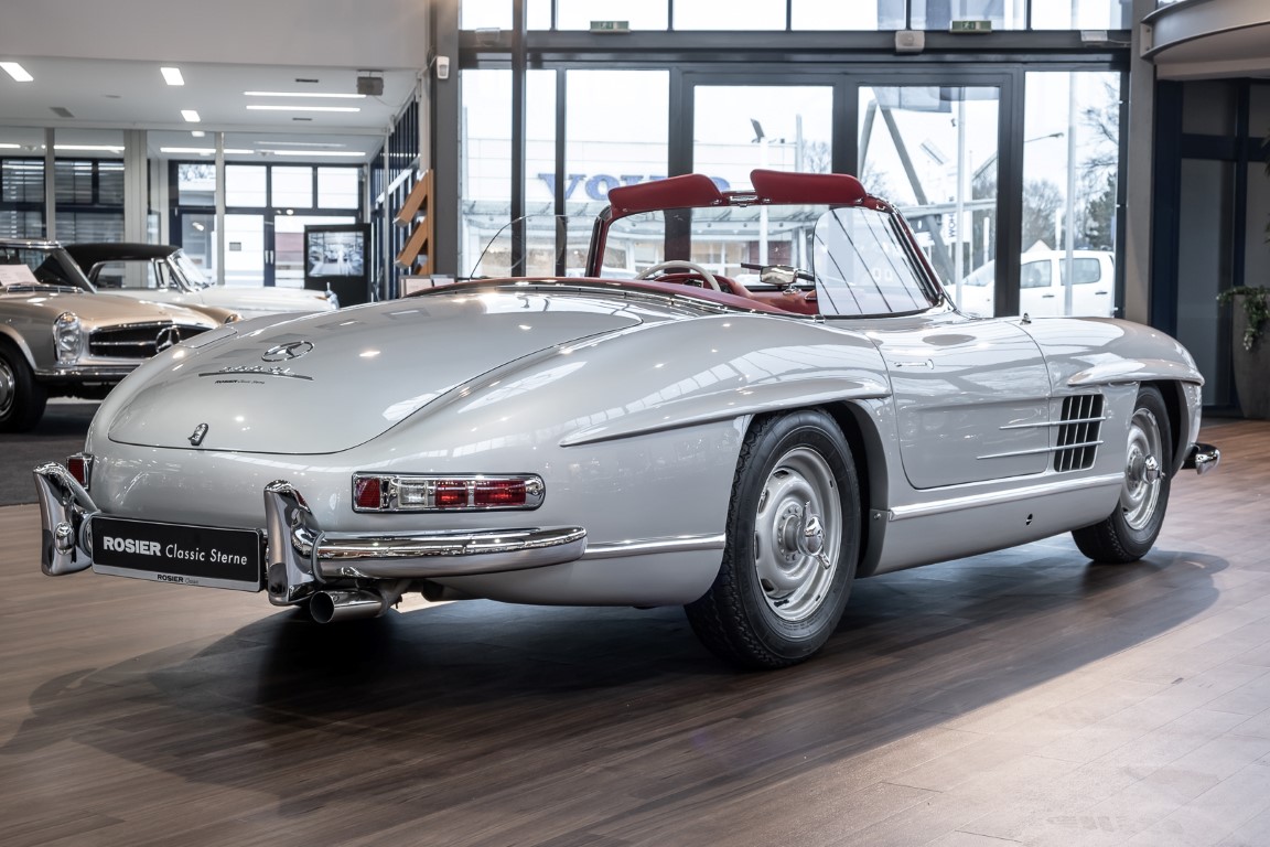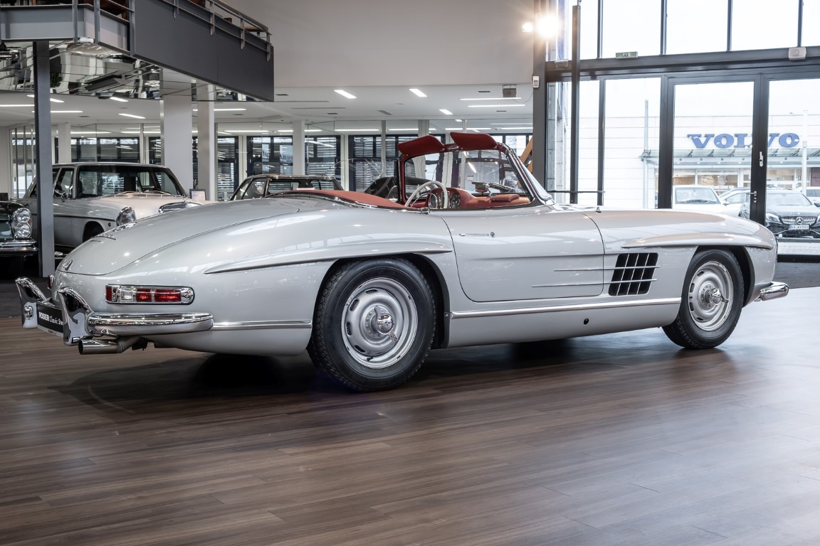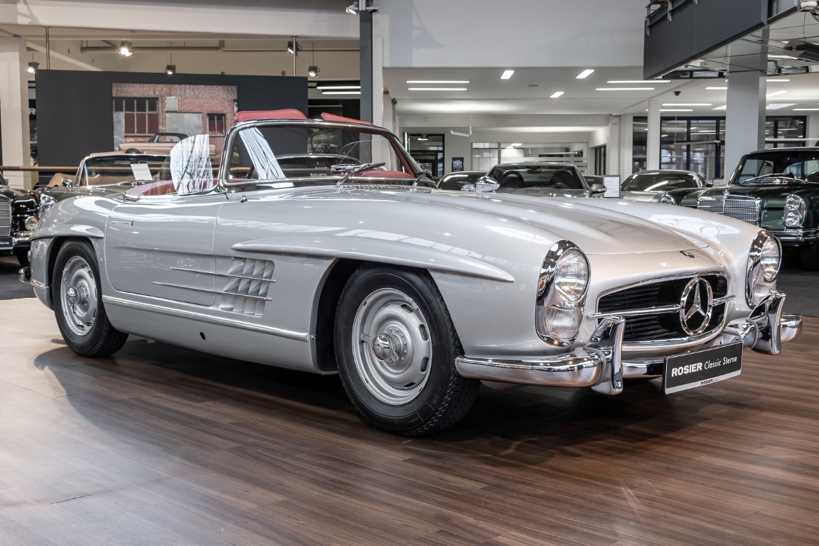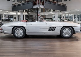 This Mercedes-Benz 300SL Roadster was completed in the factory on 9 December 1957 and made available for delivery to the customer. The first owner was the ROMA garage of Robert May & Sohn in the east of Frankfurt am Main. The car was subsequently sold to the USA. Bob Estes, a very well known car collector had brought it from Virginia in 1997 and included it in his collection. The documented speedometer reading at that time was 84,514 mls. Bob Estes hardly ever drove the car and handed it over to his son Dale Estes, who obviously did not find the time to drive the elegant roadster either. In 2001 the car was purchased by the renowned Mercedes classic expert Scott Grundfor in Kalamazoo Michigan. The excellent condition of the car and today's speedometer reading of only 84,983 indicates that the car has also undergone a major overhaul here. In 2001 the car went to Dr. Morton C. Wellington in Jacksonville/Florida, a lover and also collector of classic cars. Dr. Wellington is well known in the local classic car scene for his participation in top-class Concours events with his 1926 Rolls-Royce Piccadilly Roadster. 2012 the elegant 300SL Roadster was acquired by Richard Wolf, a respected history professor at the University of Santa Barbara. Afterwards the vehicle was added to an exquisite collection of exquisite individual pieces, from which the vehicle is now being sold. A uniquely beautiful matching numbers roadster in original paint and interior color scheme, equipped with rare Rudge hub caps. Do not miss it.
