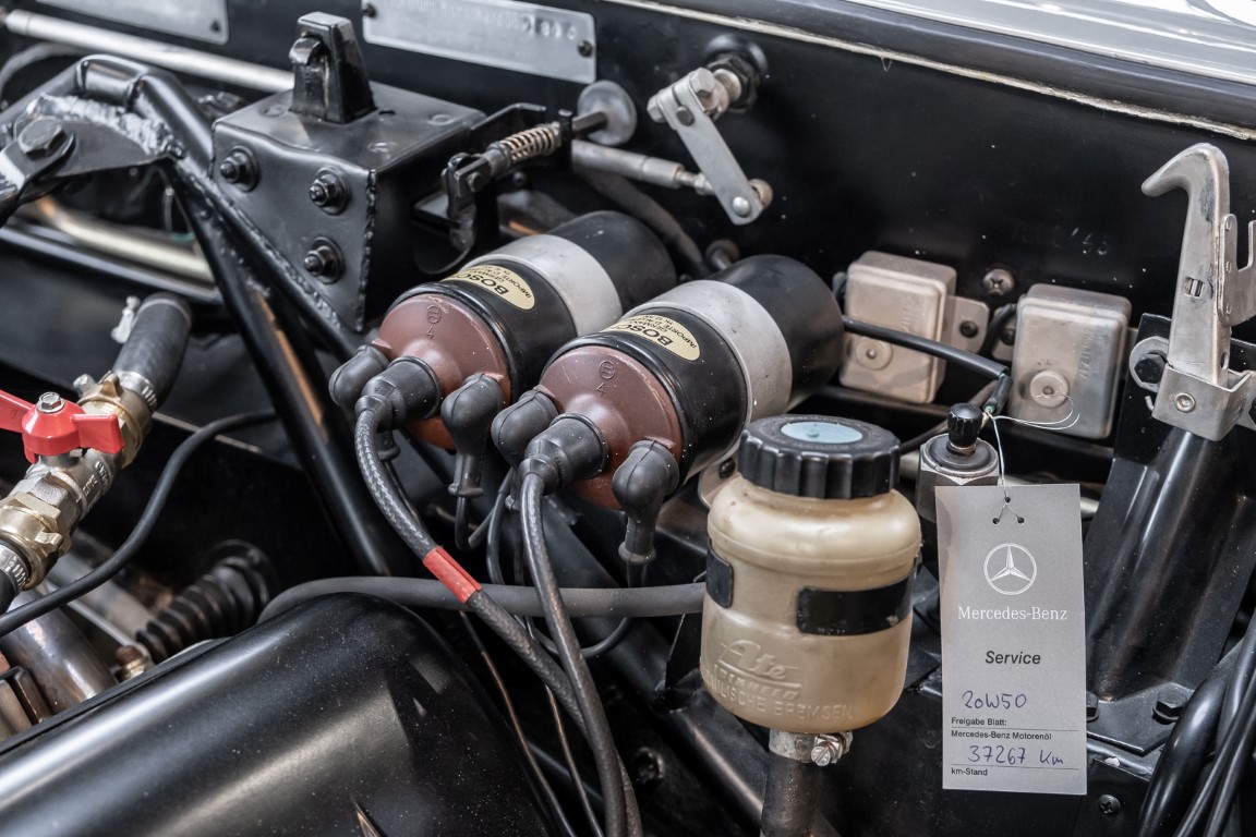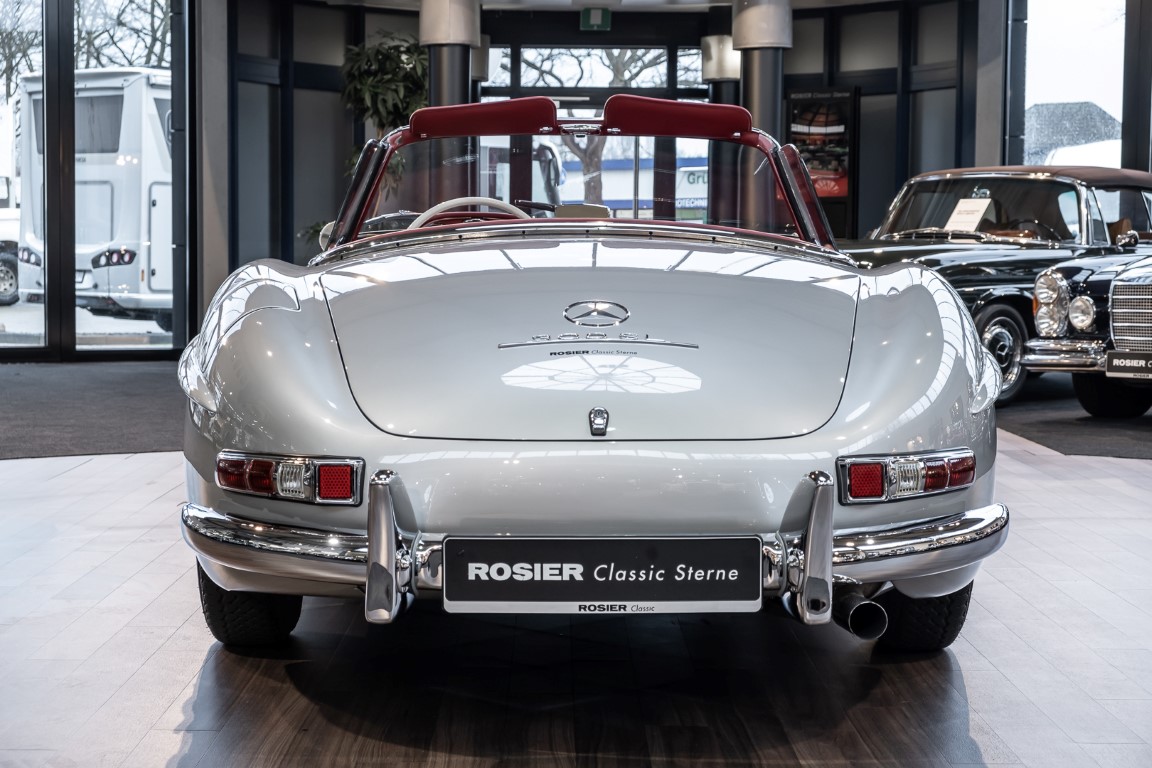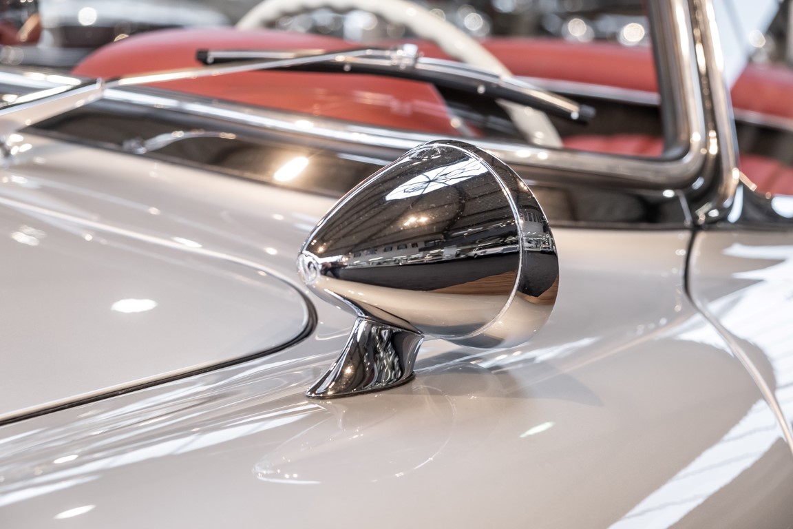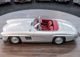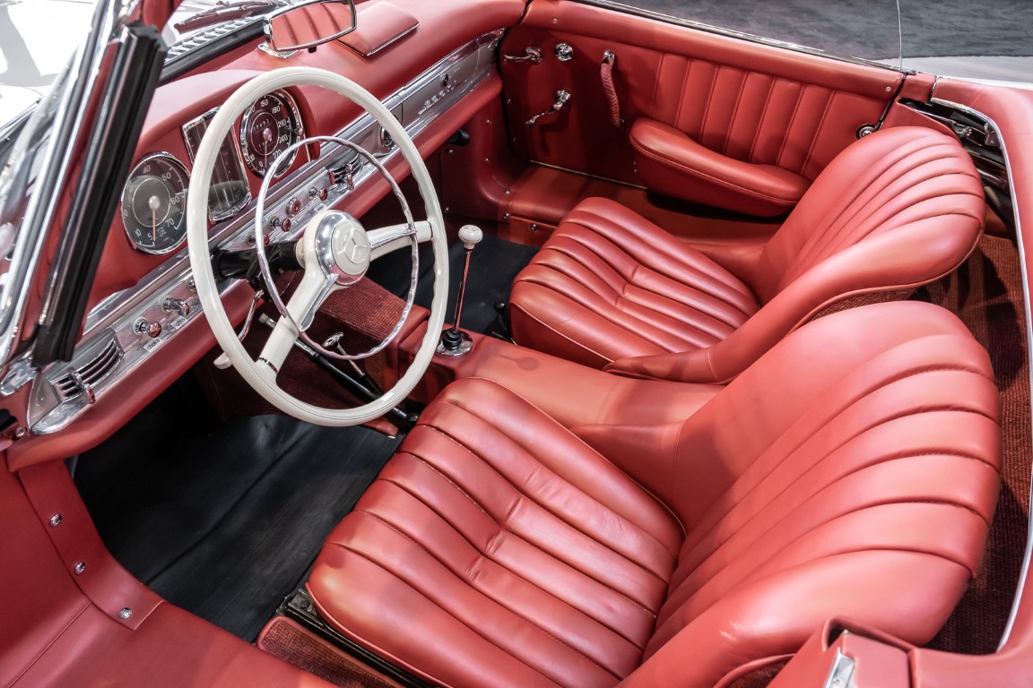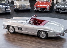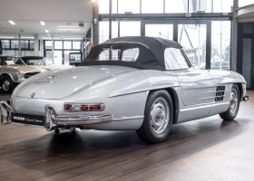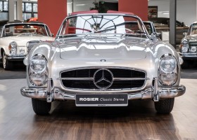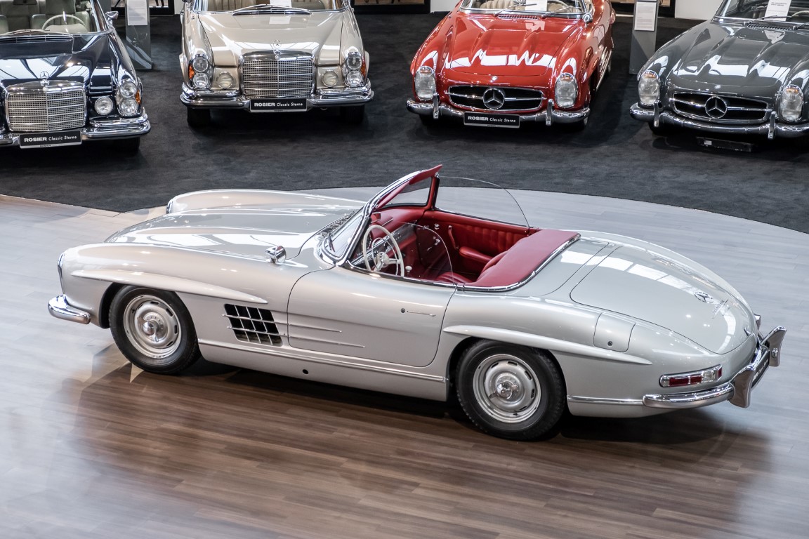 This Mercedes-Benz 300SL Roadster was completed in the factory on 9 December 1957 and made available for delivery to the customer. The first owner was the ROMA garage of Robert May & Sohn in the east of Frankfurt am Main. The car was subsequently sold to the USA. Bob Estes, a very well known car collector had brought it from Virginia in 1997 and included it in his collection. The documented speedometer reading at that time was 84,514 mls. Bob Estes hardly ever drove the car and handed it over to his son Dale Estes, who obviously did not find the time to drive the elegant roadster either. In 2001 the car was purchased by the renowned Mercedes classic expert Scott Grundfor in Kalamazoo Michigan. The excellent condition of the car and today's speedometer reading of only 84,983 indicates that the car has also undergone a major overhaul here. In 2001 the car went to Dr. Morton C. Wellington in Jacksonville/Florida, a lover and also collector of classic cars. Dr. Wellington is well known in the local classic car scene for his participation in top-class Concours events with his 1926 Rolls-Royce Piccadilly Roadster. 2012 the elegant 300SL Roadster was acquired by Richard Wolf, a respected history professor at the University of Santa Barbara. Afterwards the vehicle was added to an exquisite collection of exquisite individual pieces, from which the vehicle is now being sold. A uniquely beautiful matching numbers roadster in original paint and interior color scheme, equipped with rare Rudge hub caps. Do not miss it.