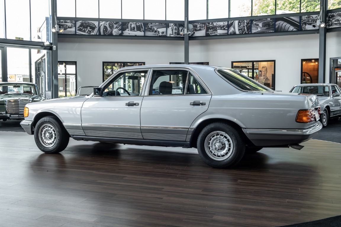 A beautiful 380 SE from the coveted 126 series in astral silver metallic in combination with a blue Interioer from the early 1983 model year is on offer. The cultivated and still bursting with power, the V8 moves the almost 1.6 tonnes unladen weight in all situations in life without any effort. The mileage is comprehensible and, according to the value appraisal, corresponds to the actual mileage. In the summer of 2019, the vehicle received a new transmission in our company. The great engine, a retrofitted KAT and the great driving folding make this 380 SE an excellent Dailydriver.
