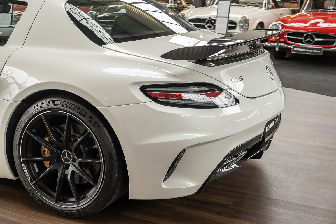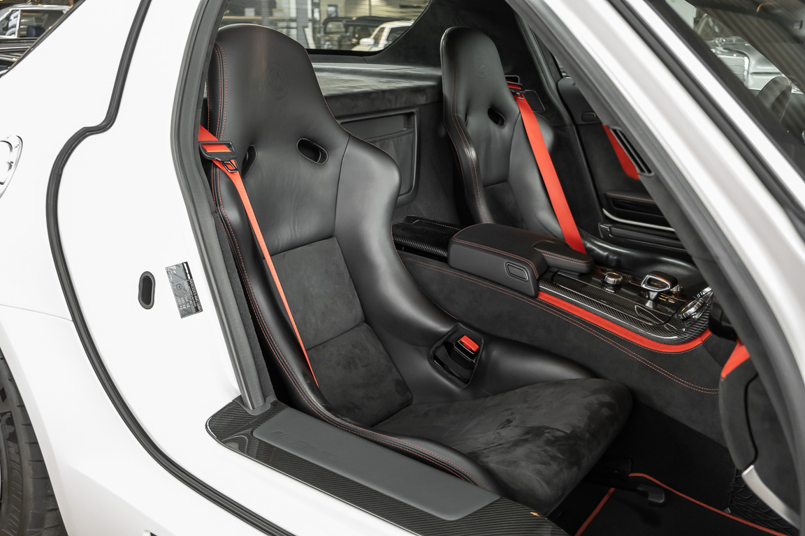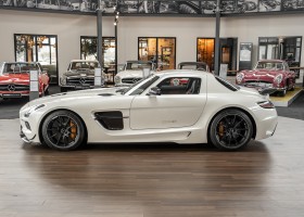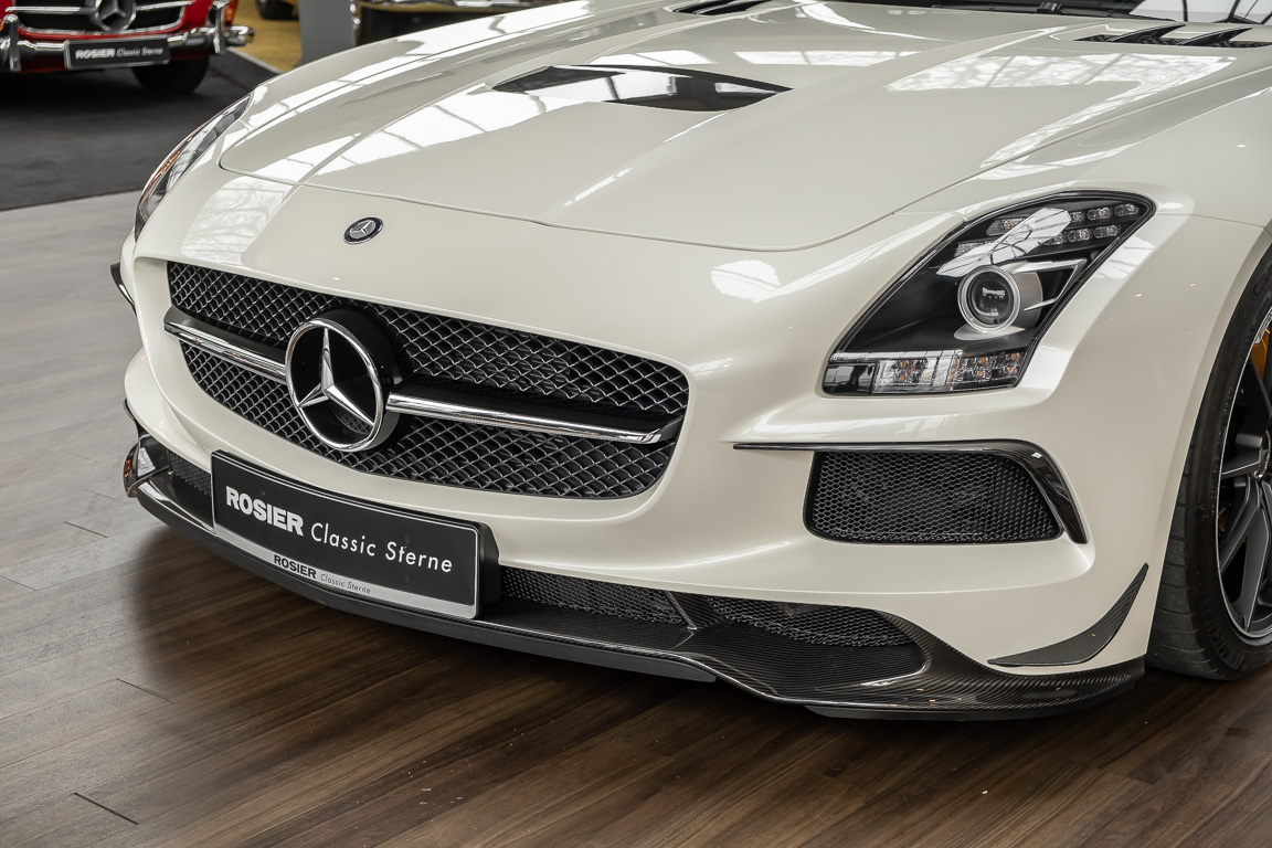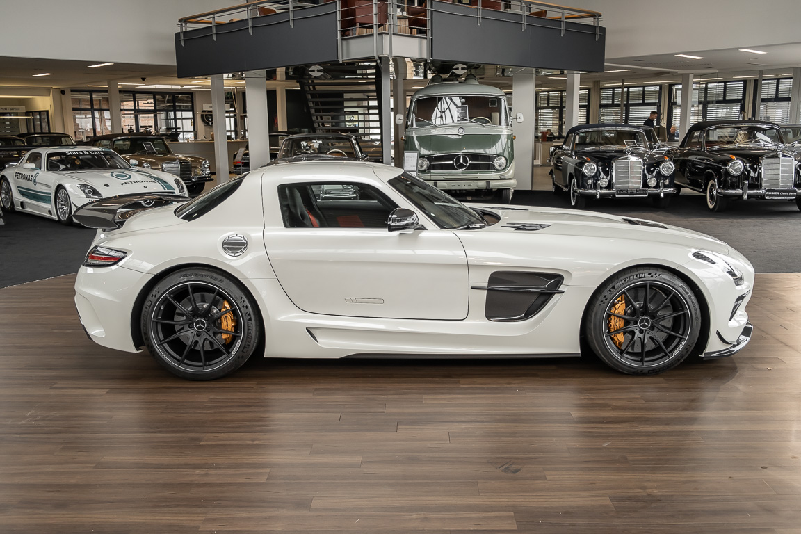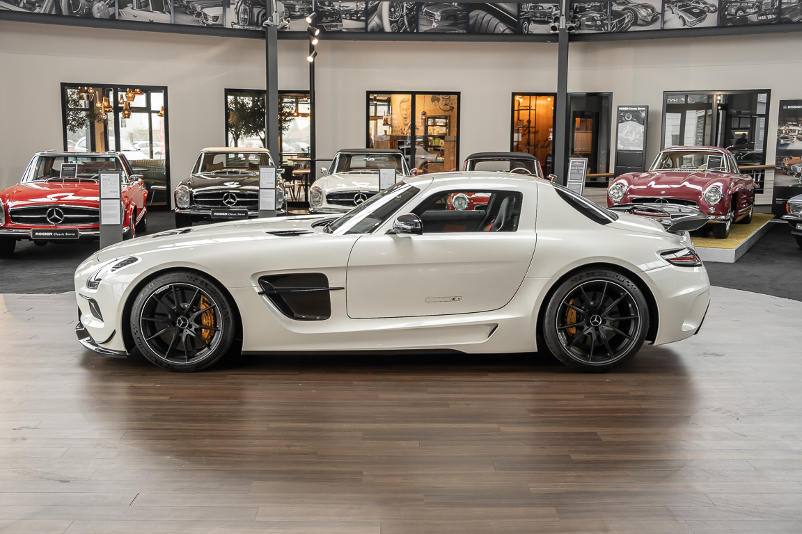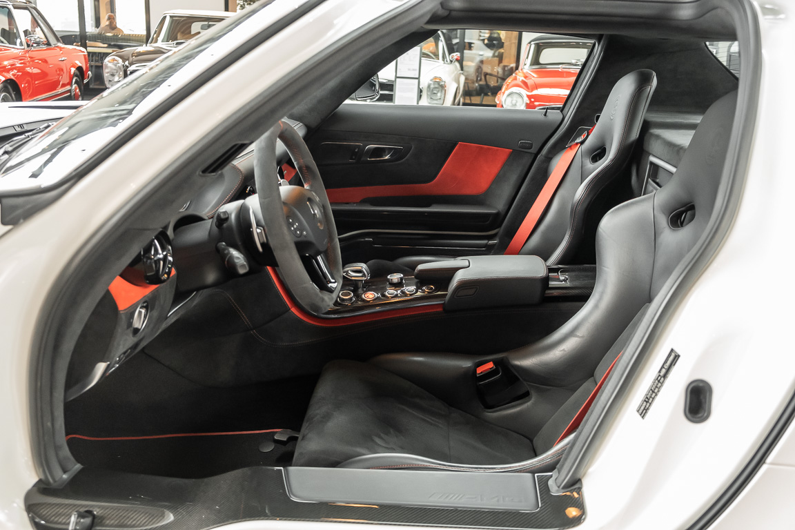 We are pleased to offer you the next gullwing icon after the legendary 300 SL. The Mercedes-Benz SLS AMG Black Series was produced in small series, in a strictly limited edition of 350 vehicles, and is a highly interesting gem for collectors worldwide. With 631 hp, the 6.3l naturally aspirated V8 engine not only provides 60 hp more power than the standard SLS, thanks to intelligent lightweight construction, the Black Series ensures driving performance like a racing car. At least in theory. In practice, despite racing genes, the Black Series models were mostly stored and hardly moved due to rapidly rising prices. Just like this specimen.