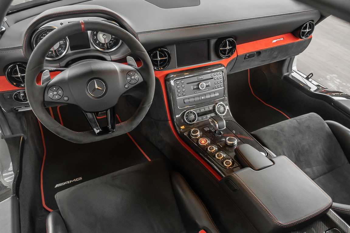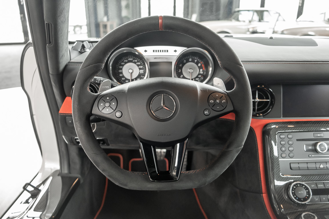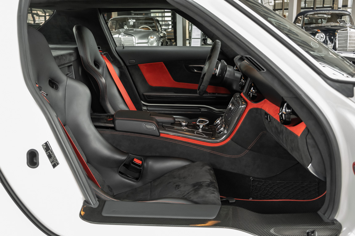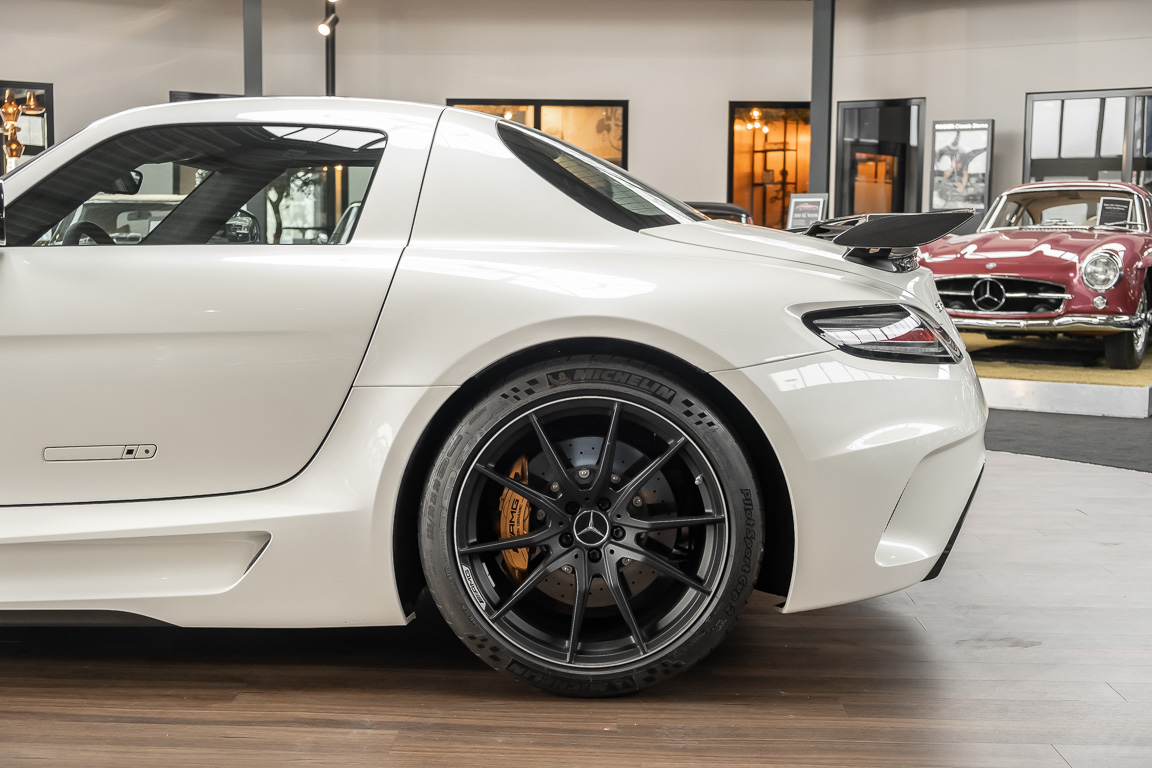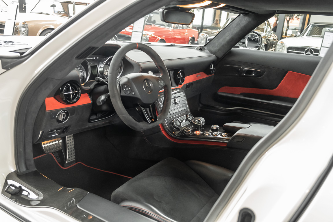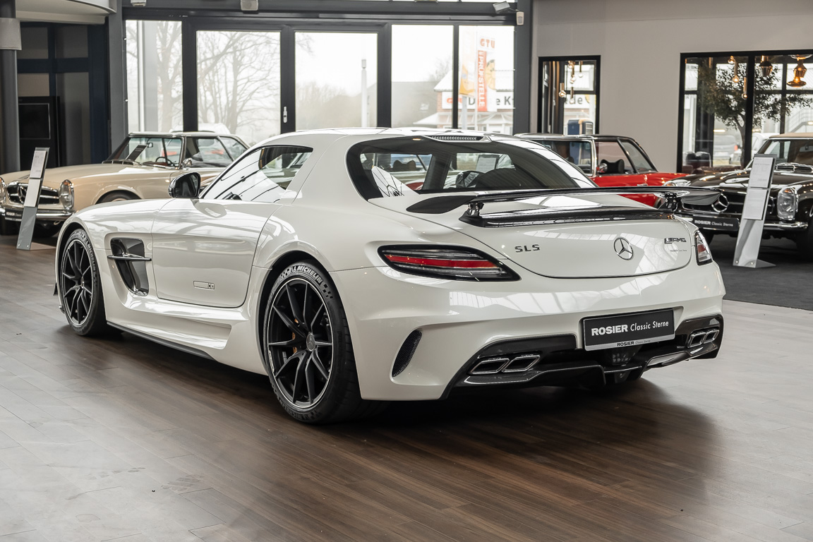 We are pleased to offer you the next gullwing icon after the legendary 300 SL. The Mercedes-Benz SLS AMG Black Series was produced in small series, in a strictly limited edition of 350 vehicles, and is a highly interesting gem for collectors worldwide. With 631 hp, the 6.3l naturally aspirated V8 engine not only provides 60 hp more power than the standard SLS, thanks to intelligent lightweight construction, the Black Series ensures driving performance like a racing car. At least in theory. In practice, despite racing genes, the Black Series models were mostly stored and hardly moved due to rapidly rising prices. Just like this specimen.