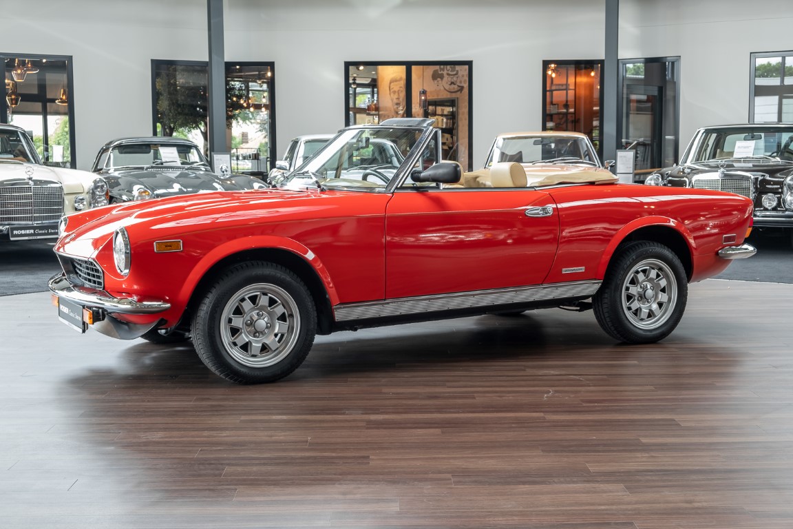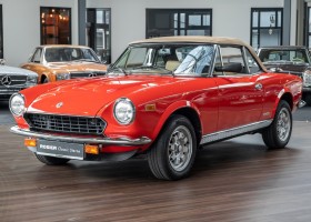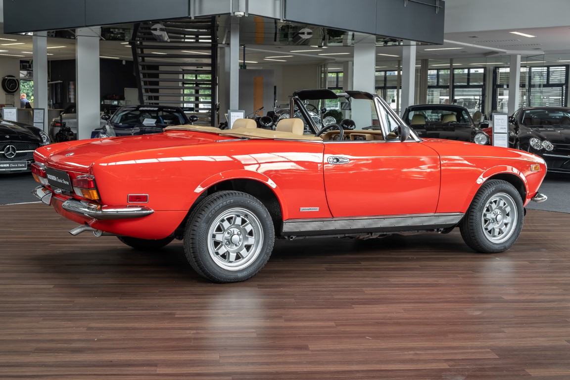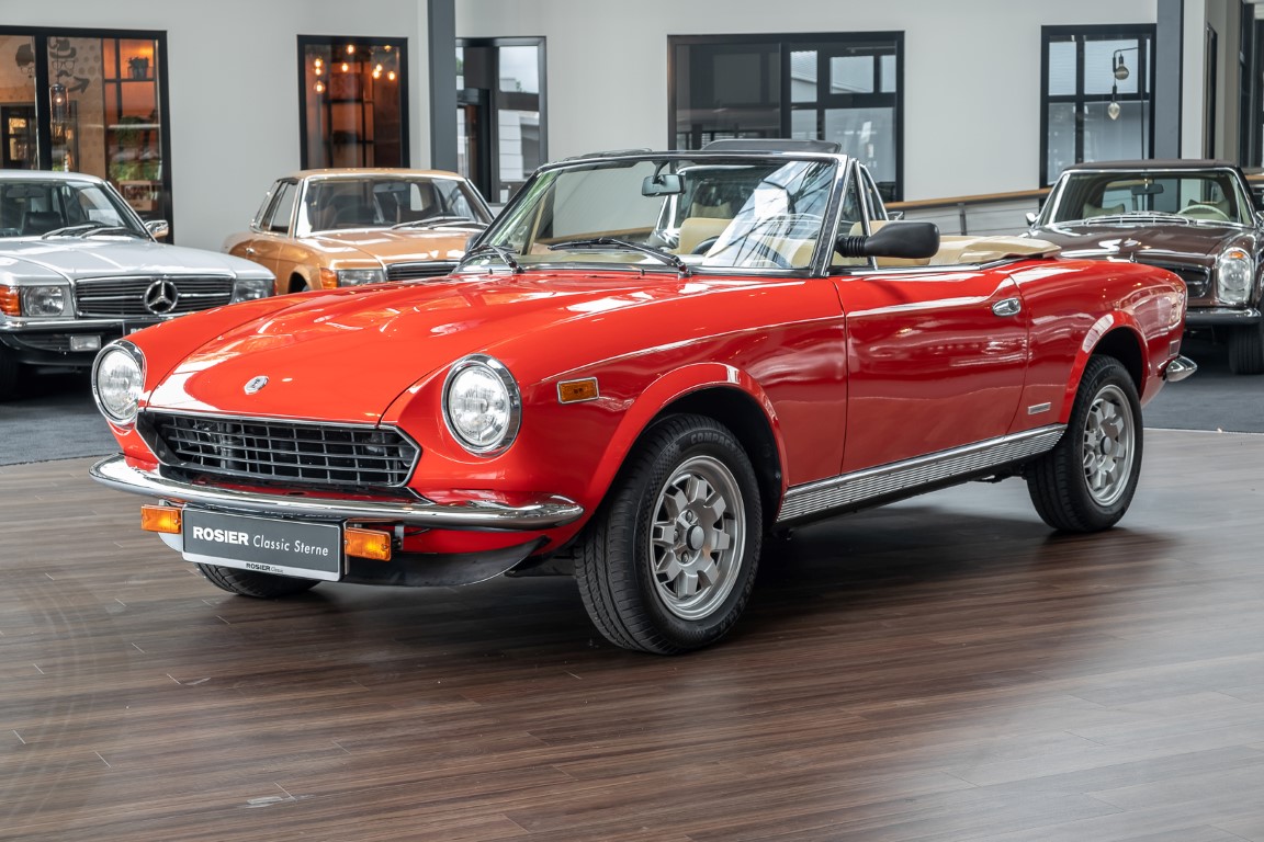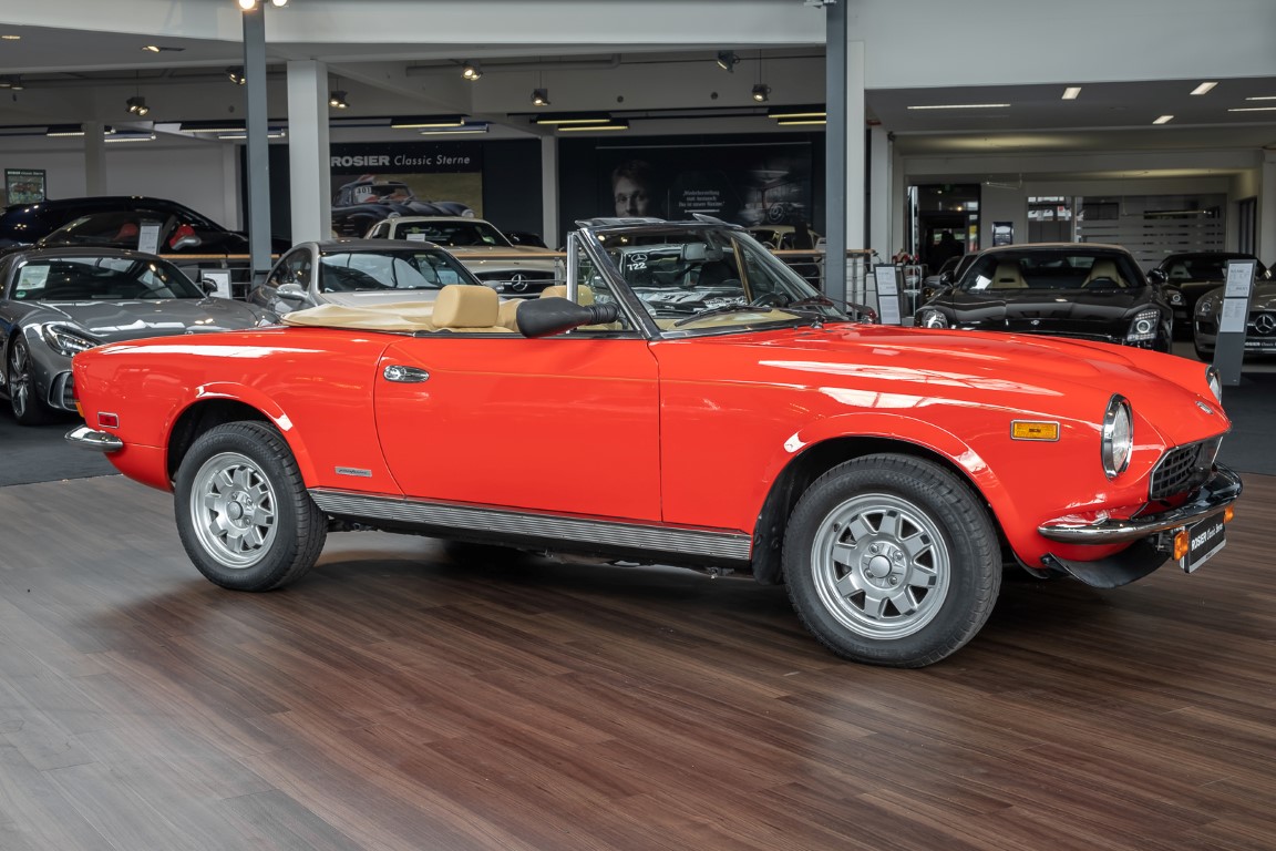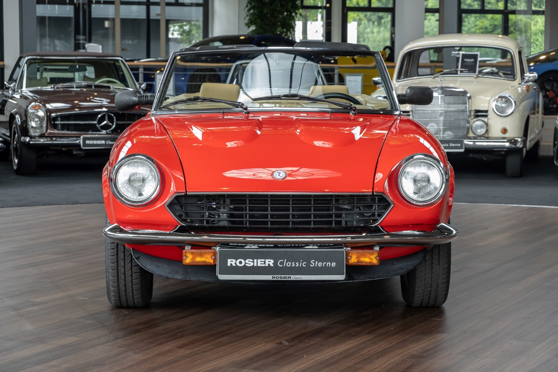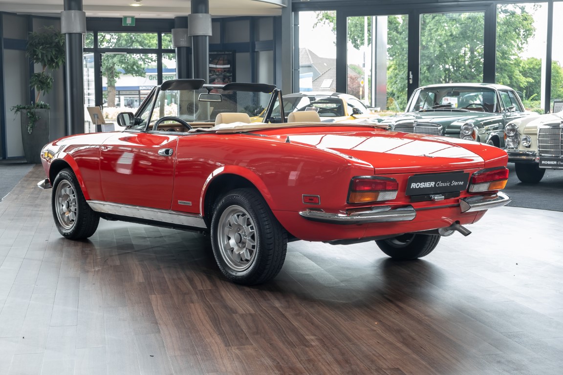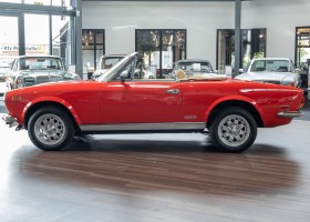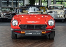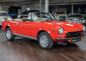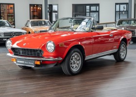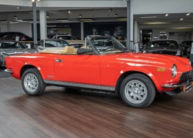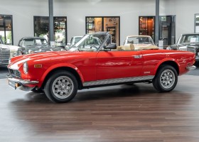 Der Fiat 124 Spider wurde 1966 auf dem Turiner Automobilsalon vorgestellt. „Er war eine echte Schönheit“, wie der Fiat 124 Spider-Club so treffend beschreibt, „ein echter Sportwagen seiner Zeit“. Den größten Zuspruch fand er in Deutschland und den USA und entpuppte sich als richtiger Verkaufsschlager. Als FIAT das Modell im Herbst 1982 aus dem Programm nahm, wurde der Spider noch bis 1985 in den Werkshallen von Pininfarina weitergebaut. Für den europäischen Markt hieß er Pininfarina Spider Europa, für den US Markt wurde er liebevoll Pininfarina Spider Azzurra genannt. Der hier angebotene Pininfarina Spider Azzurra wurde in 1983 gefertigt und an seinen Erstbesitzer im trockenen Denver/Colorado in den USA ausgeliefert. Er wurde wenig gefahren und stand Zeitweise im angesehenen LeMay Automuseum in Denver. Als der Wagen in 1990 an seinen zweiten Besitzer verkauft wurde, hatte er gerade einmal 9.500 Meilen gelaufen. Der zweite Besitzer hatte den Wagen ebenfalls wenig gefahren, dafür aber bestens gepflegt. Er verkaufte den Wagen in 2014 an Westgor Nathan Todd in Burnsville/Minnesota von dem wir ihn letztendlich übernehmen konnten. Wir freuen uns, Ihnen diesen schicken Pininfarina Spider Azzurra mit knapp über 15.500 Meilen (entspricht etwa 25.000 km) Laufleistungleistung anbieten zu können. Eine tolle Gelegenheit auf einen relativ modernen Klassiker mit enormem Charme.