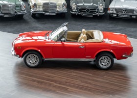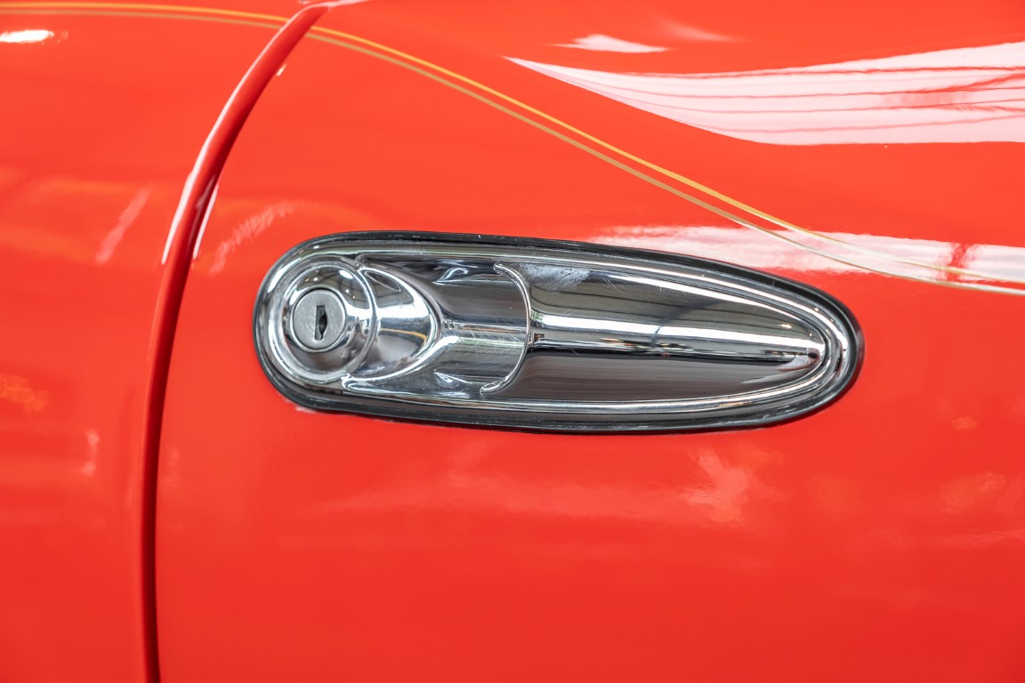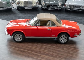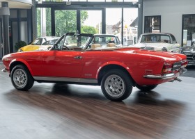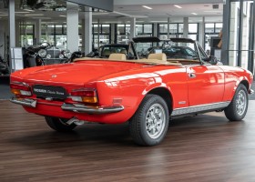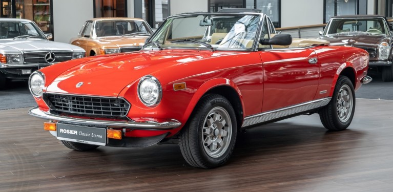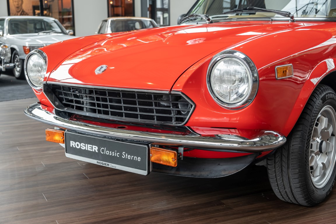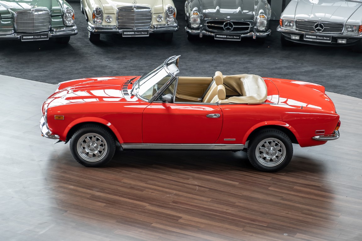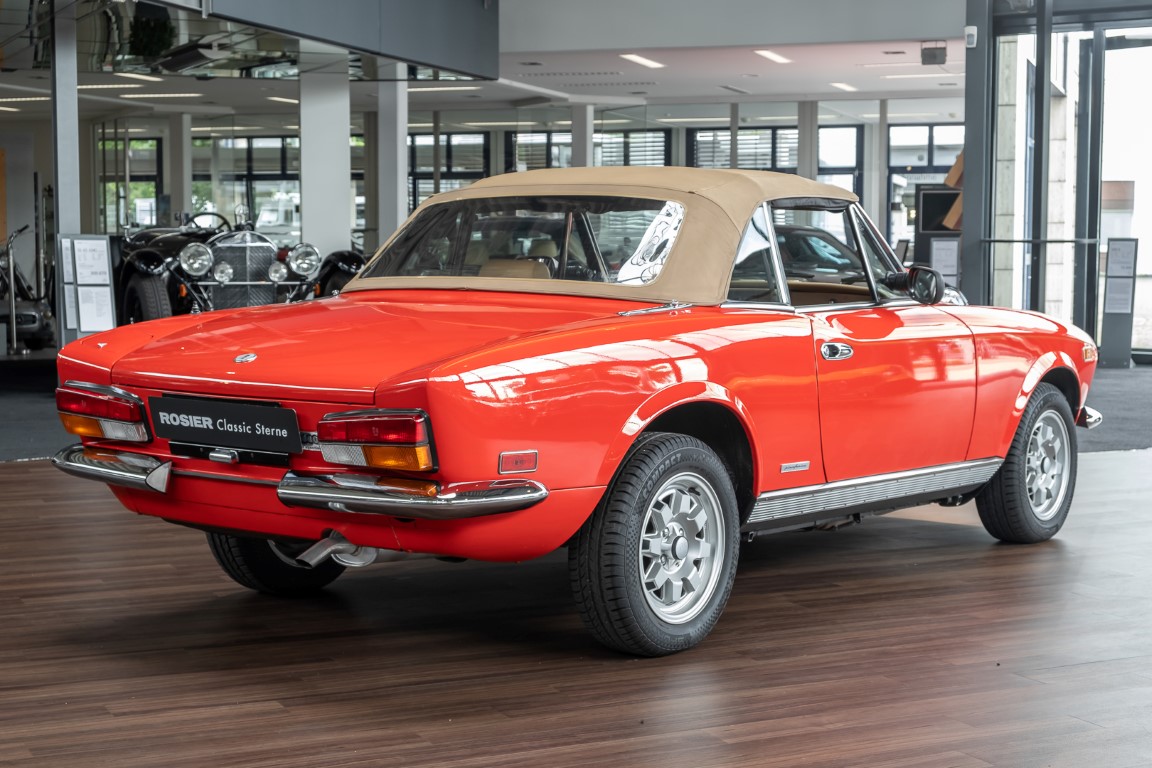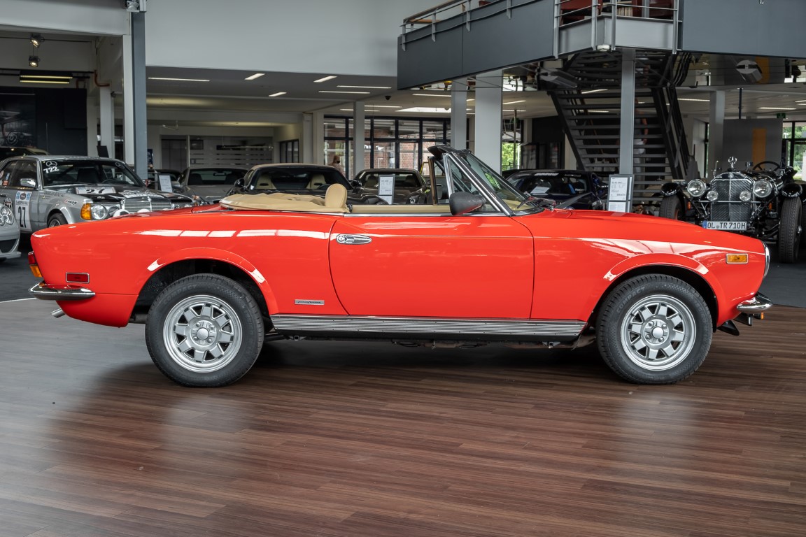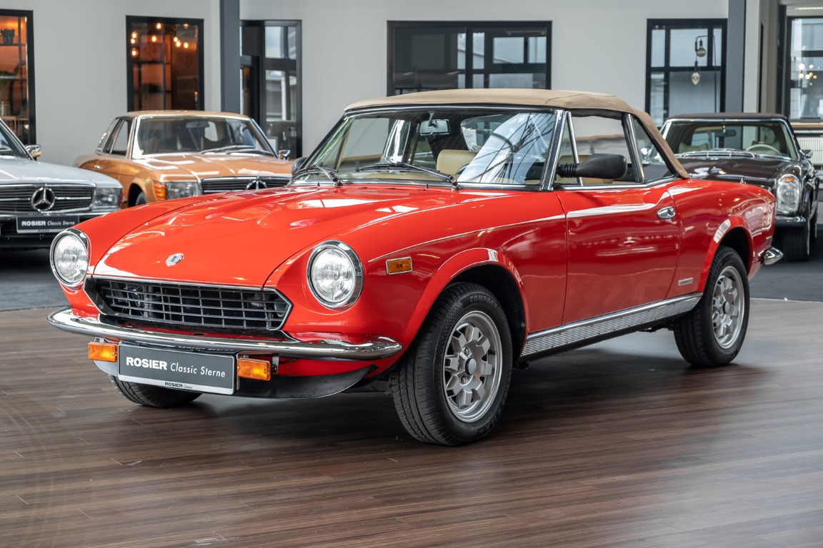 Der Fiat 124 Spider wurde 1966 auf dem Turiner Automobilsalon vorgestellt. „Er war eine echte Schönheit“, wie der Fiat 124 Spider-Club so treffend beschreibt, „ein echter Sportwagen seiner Zeit“. Den größten Zuspruch fand er in Deutschland und den USA und entpuppte sich als richtiger Verkaufsschlager. Als FIAT das Modell im Herbst 1982 aus dem Programm nahm, wurde der Spider noch bis 1985 in den Werkshallen von Pininfarina weitergebaut. Für den europäischen Markt hieß er Pininfarina Spider Europa, für den US Markt wurde er liebevoll Pininfarina Spider Azzurra genannt. Der hier angebotene Pininfarina Spider Azzurra wurde in 1983 gefertigt und an seinen Erstbesitzer im trockenen Denver/Colorado in den USA ausgeliefert. Er wurde wenig gefahren und stand Zeitweise im angesehenen LeMay Automuseum in Denver. Als der Wagen in 1990 an seinen zweiten Besitzer verkauft wurde, hatte er gerade einmal 9.500 Meilen gelaufen. Der zweite Besitzer hatte den Wagen ebenfalls wenig gefahren, dafür aber bestens gepflegt. Er verkaufte den Wagen in 2014 an Westgor Nathan Todd in Burnsville/Minnesota von dem wir ihn letztendlich übernehmen konnten. Wir freuen uns, Ihnen diesen schicken Pininfarina Spider Azzurra mit knapp über 15.500 Meilen (entspricht etwa 25.000 km) Laufleistungleistung anbieten zu können. Eine tolle Gelegenheit auf einen relativ modernen Klassiker mit enormem Charme.