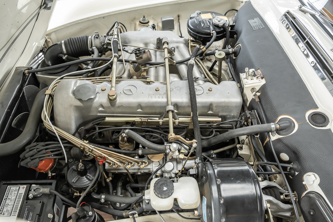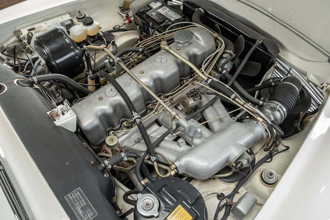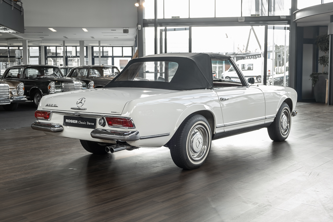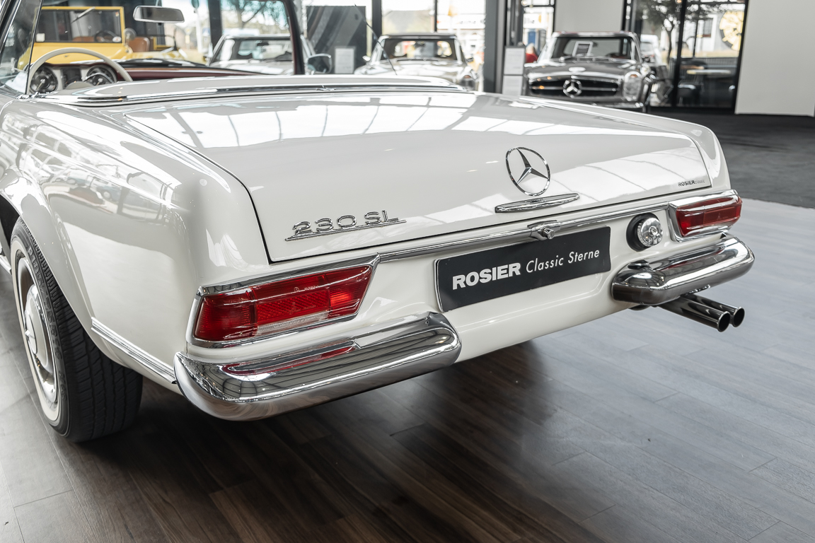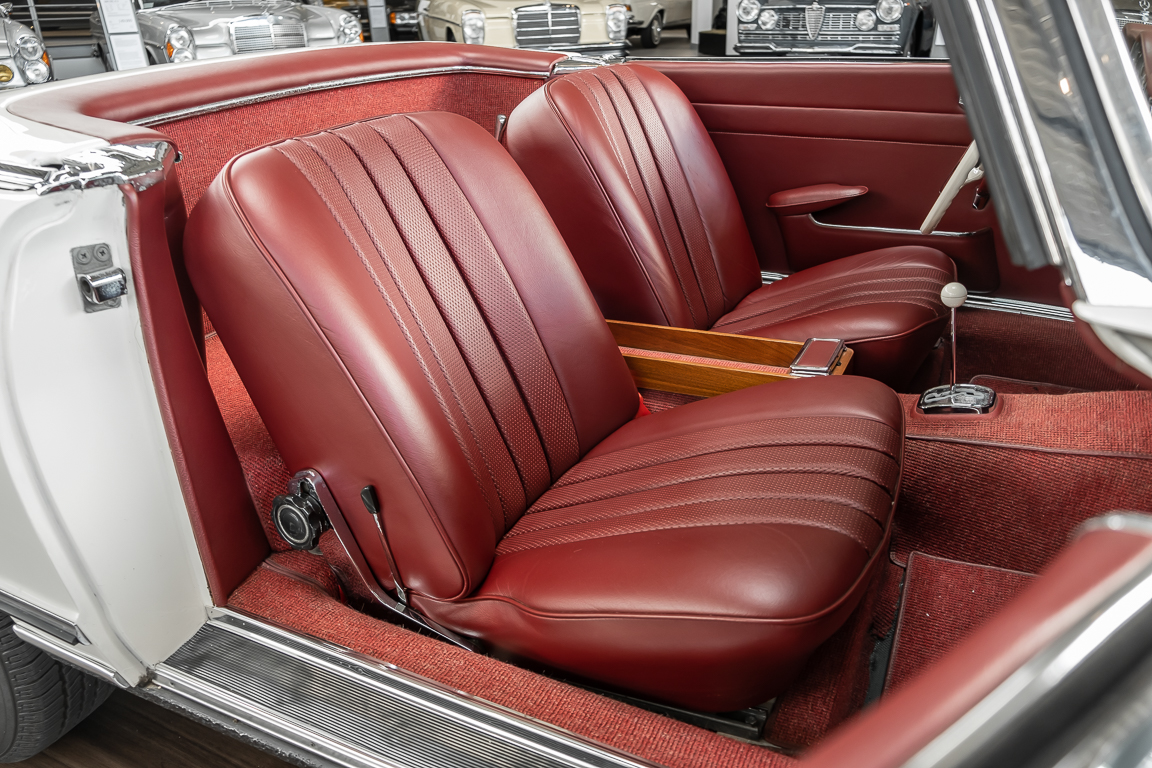 Diese elegante Mercedes-Benz 230SL Pagode aus 1966 wurde an Ihren erste Besitzer im sonnigen Kalifornien/USA ausgeliefert. Die Auslieferungsfarbe war 050 weiß in Verbindung mit rotem Leder. In 2011 erwarben wir den Wagen in Emeryville, einer beschaulichen Kleinstadt im Alameda County im Bundesstaat Kalifornien/USA. Die Substanz der mittlerweile 45 Jahre alten Pagode war ausgezeichnet. Aus Qualitätsüberlegungen heraus haben wir uns trotzdem entschieden, den Wagen umfangreich zu überarbeiten. In diesem Zug wurde auch das in die Jahre gekommene Interieur des Wagens von unserem Sattler in Spitzenqualität erneuert. Nach Fertigstellung in 2012 verkauften wir den Wagen an einen Liebhaber Klassischer Automobile hier in Niedersachsen. Der Wagen kam regelmäßig zu uns in den Service und erhielt vor etwa 1 Jahr eine neue Einspritzpumpe. Der enge Terminkalender des Besitzers lässt Ihm leider nicht viel Zeit für die Nutzung der Pagode. Gerade einmal rund 6.000 km kamen in den letzten 10 Jahren zusammen. So hat sich der bisherige Besitzer nun dazu entschieden, den Wagen in eine neue liebevolle Hand abzugeben. Die Aufgabe des Verkaufs haben wir gerne übernommen. Gerne zeigen wir Ihnen die Pagode ausführlich hier in unserem Showroom in Oldenburg, Sie werden begeistert sein.