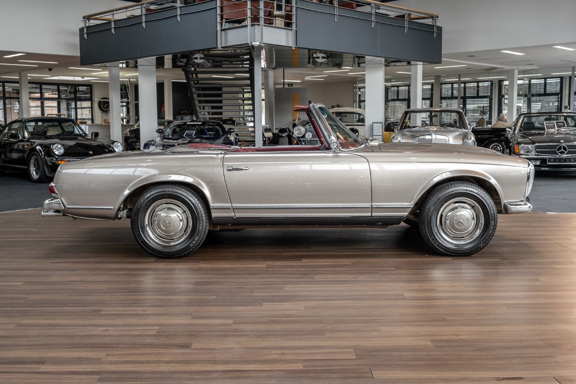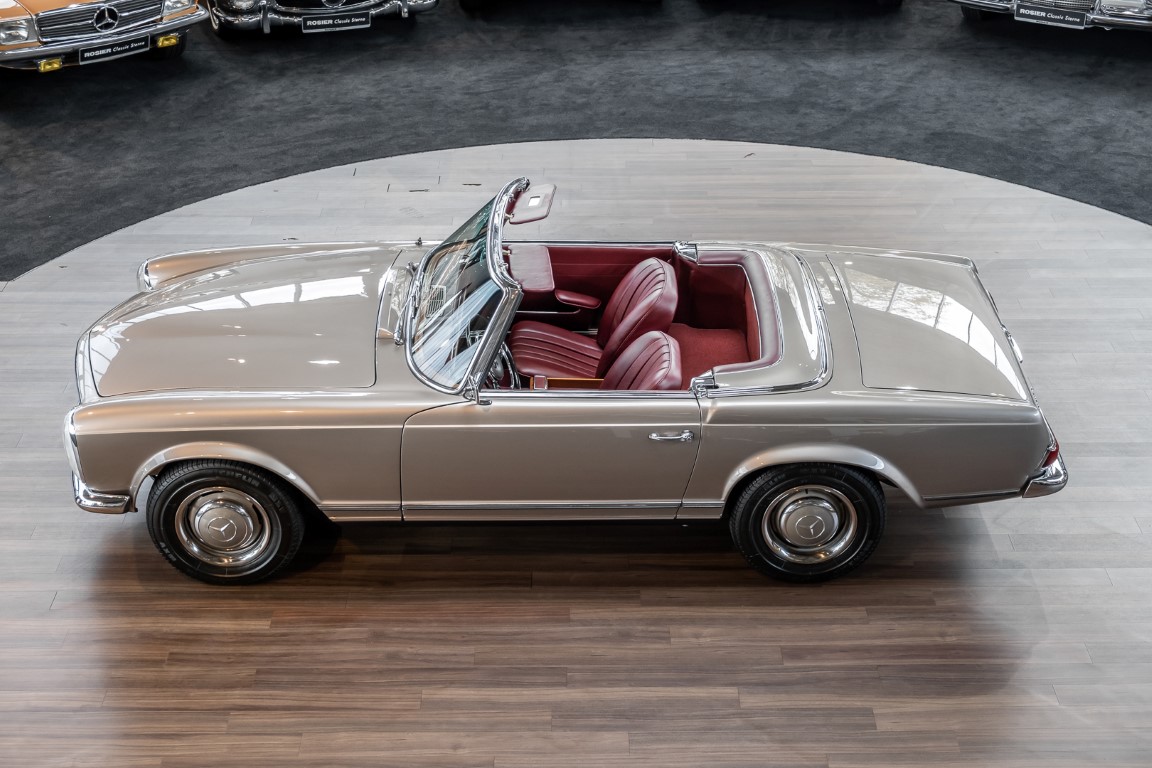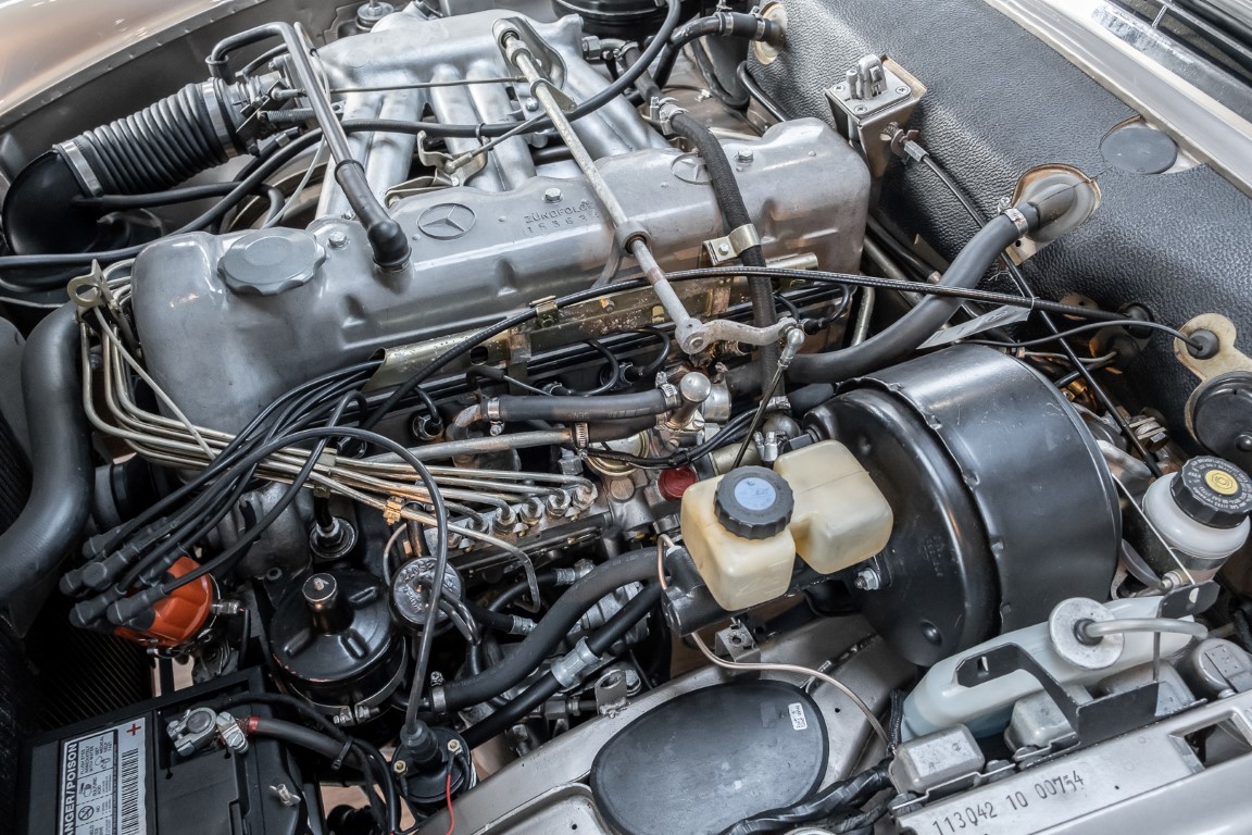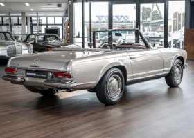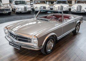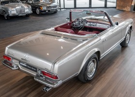 So präsentiert sich diese Pagode in einmaliger Eleganz. Der Motor läuft weich wie man es damals von einem Reihensechszylinder erwartet hatte, die Gänge des Schaltgetriebes lassen sich leicht und präzise schalten und die Servolenkung macht die Pagode wendig und vermittelt ein sicheres und angenehmes Fahrgefühl.