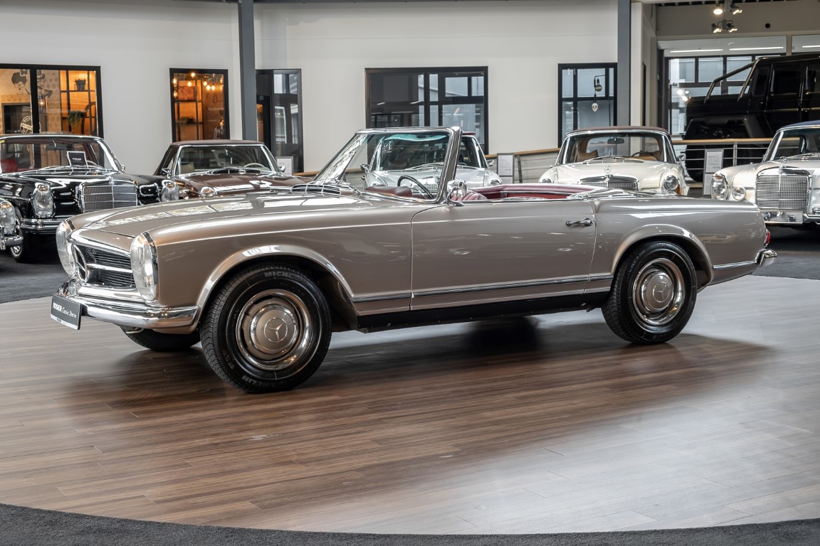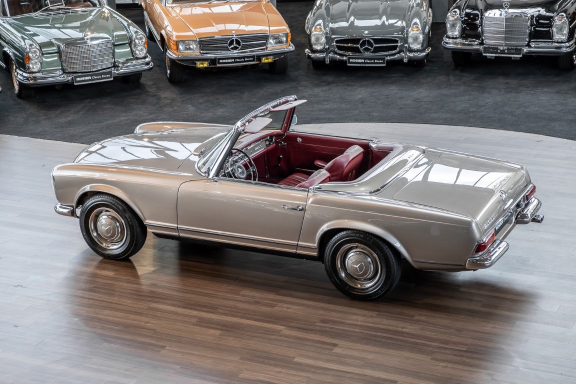 Wir freuen uns Ihnen, diese bei Sammlern sehr beliebte 230 SL Pagode aus dem ersten Produktionsjahr 1963, anbieten zu dürfen – die sich durch das seltene stehende Reserverad von ihren späteren Geschwistern abhebt. Das Fahrzeug stammt aus dem sonnigen Südfrankreich, von der malerischen Coté d‘ Azur. Eine aus dem benachbarten Italien stammende Dame hatte diese elegante Pagode 32 Jahre in Ihrem Besitz. Im Jahre 2011 wurde die in sehr gutem Originalzustand erhaltene Pagode verkauft und kam in der Folge nach Deutschland.