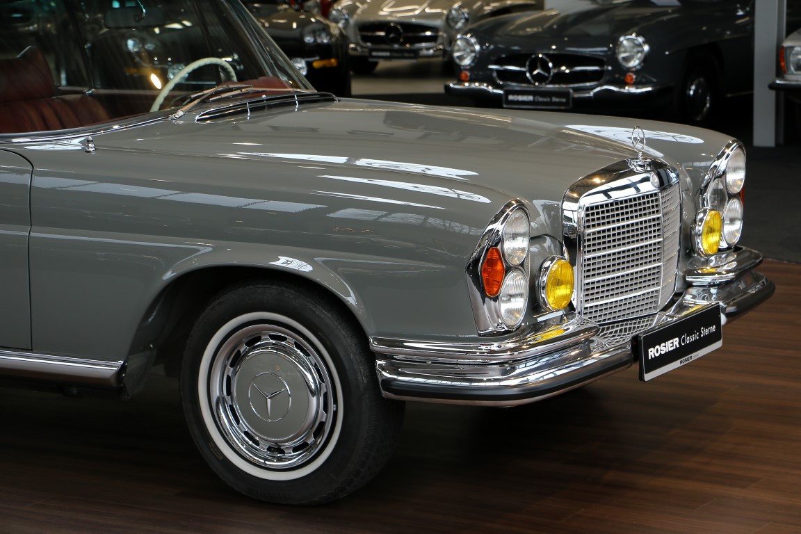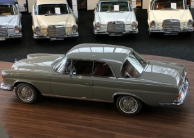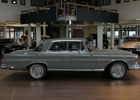 Dieses 280 SE Coupé hat eine japanische Erstauslieferung. Hier wurde das Fahrzeug über viele Jahre als Museumsfahrzeug präsentiert. Über Neuseeland kam der Oldtimer schließlich nach Deutschland. Aufgrund der sehr guten Grundsubstanz wurde das Coupé von der Rohkarosserie neu aufgebaut. Jede Baugruppe wurde umfangreich befundet und im Anschluss restauriert/geprüft ggf. erneuert. Der Motor wurde komplett zerlegt und im Anschluss vollständig revidiert. Vom Unterboden präsentiert sich das Coupé in einem makellosen Zustand. Um die Seele dieses Coupés zu bewahren wurde das originale Leder von unserem Haussattler fachmännisch in gewohnter Qualität aufgearbeitet, sodass es hervorragend zum Gesamtbild der Restauration passt. Die neue Lackierung Arabergrau 124 verleiht dem Coupé einen ganz besonderen Charme und rundet das Gesamtbild des Fahrzeugs wunderbar ab. Coupés in dieser Qualität, mit solch einer tollen Karosseriebasis sind am Markt äußerst selten zu finden.