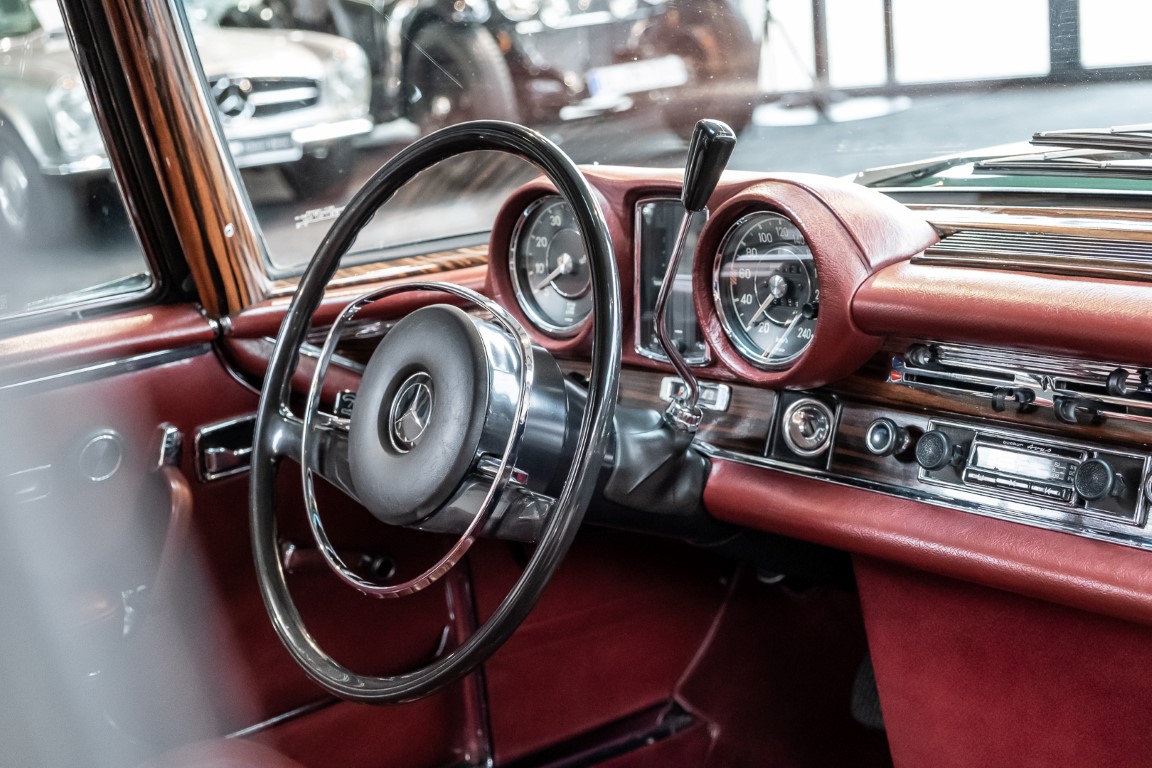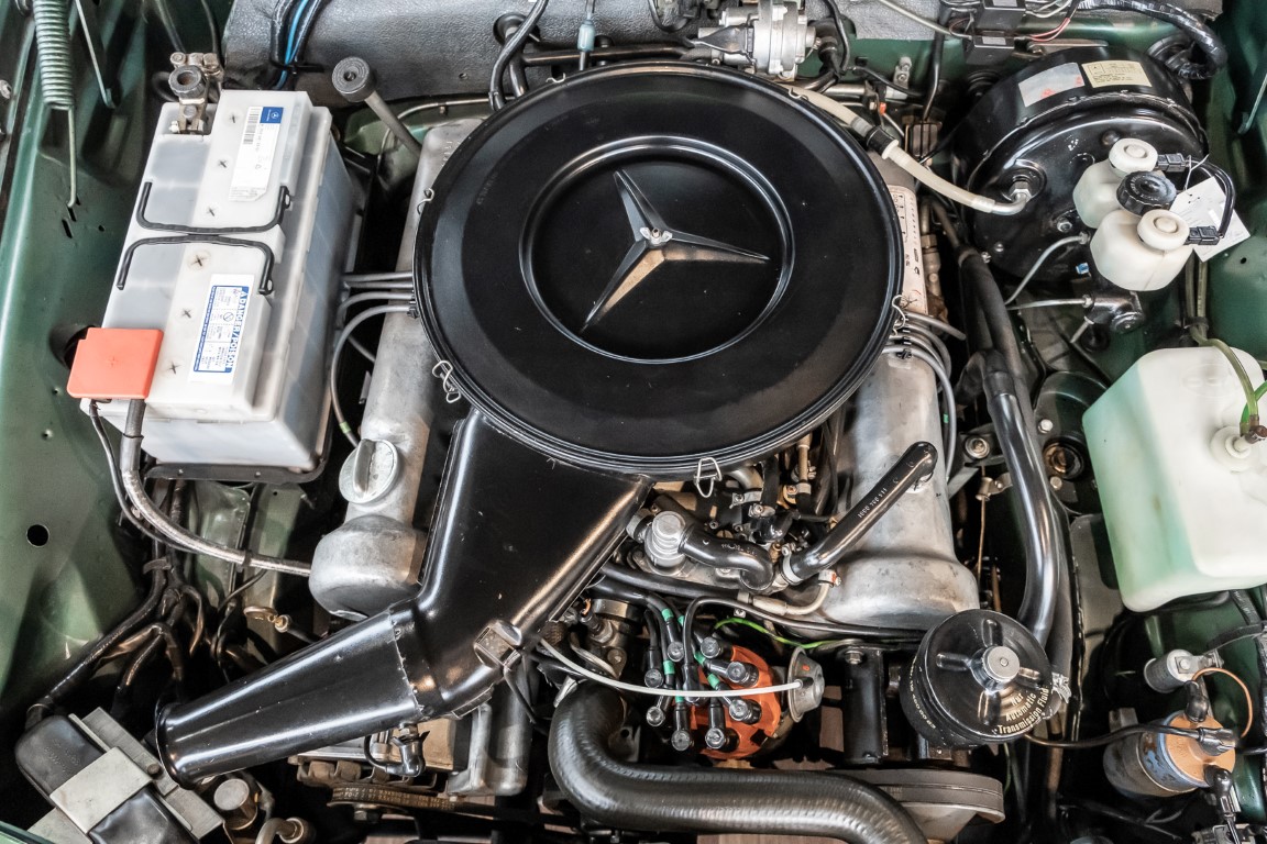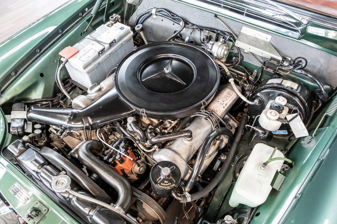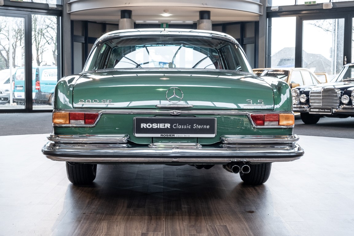 Dieses 280SE 3.5 Coupé wurde im Dezember 1970 an seinen Erstbesitzer in der Schweiz ausgeliefert und kam in der Folge nach Deutschland. Der Wagen besticht durch seine Originalität. Das Interieur wurde im Original bis heute bestens gepflegt und erhalten. Das Fahrzeug ist unfallfrei und ungeschweißt. Der Unterboden hat noch die originale Werksstruktur. Die Ausstrahlung des Fahrzeugs ist enorm. Alles funktioniert, der Motor läuft kraftvoll, das Getriebe schaltet angenehm umd korrekt. Die Barock-Leichtmetallfelgen ermöglichen etwas breitere Reifen zu fahren und unterstreichen den sportlichen Charakter dieses edlen Mercedes-Benz Coupés.