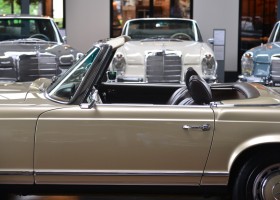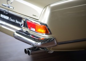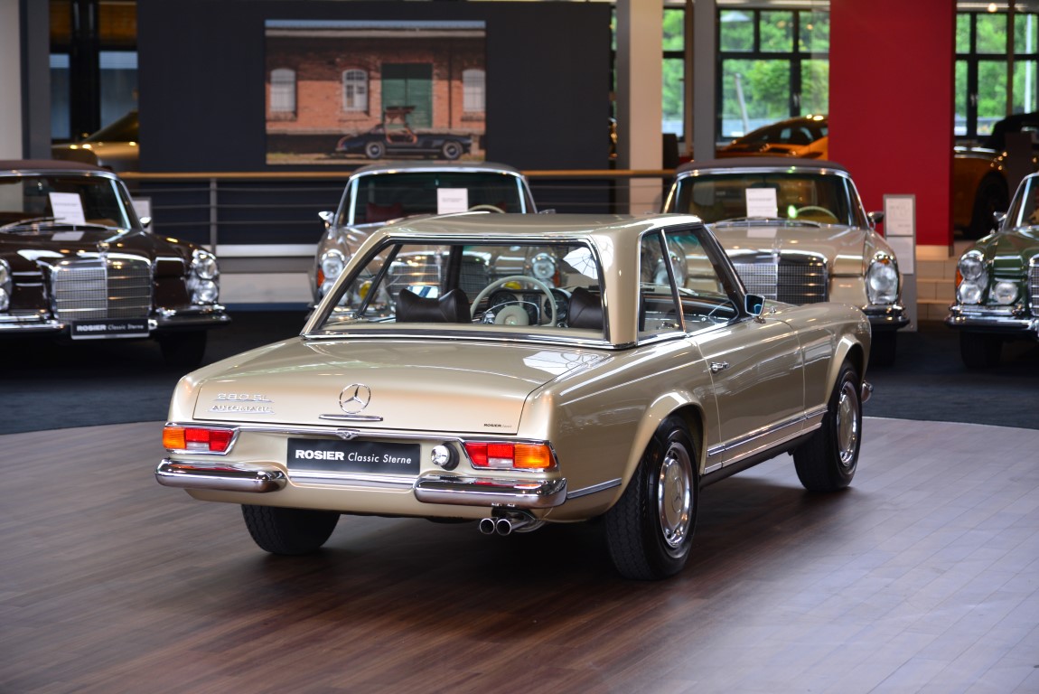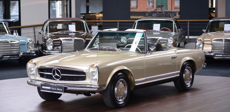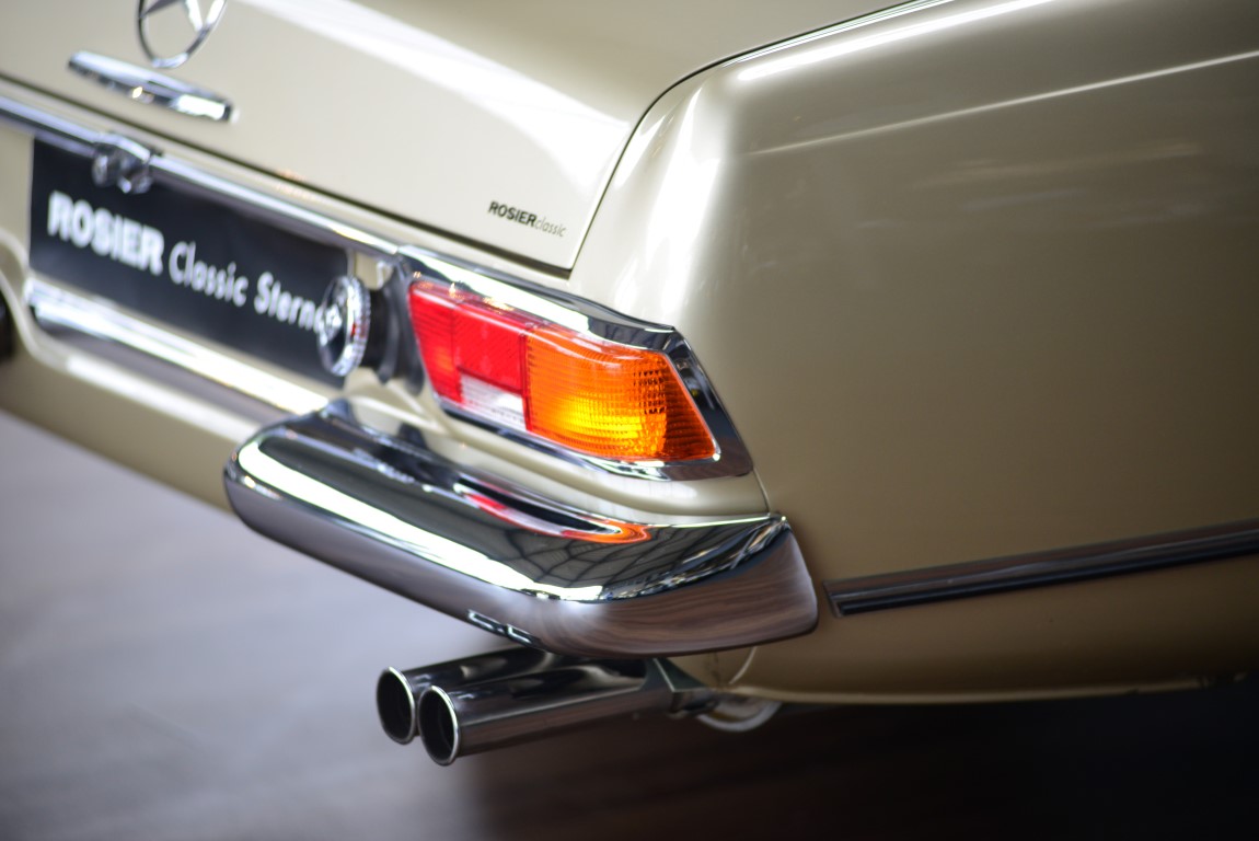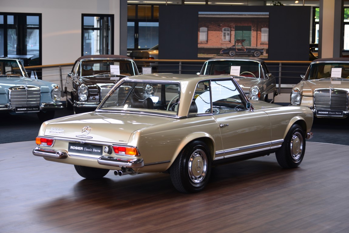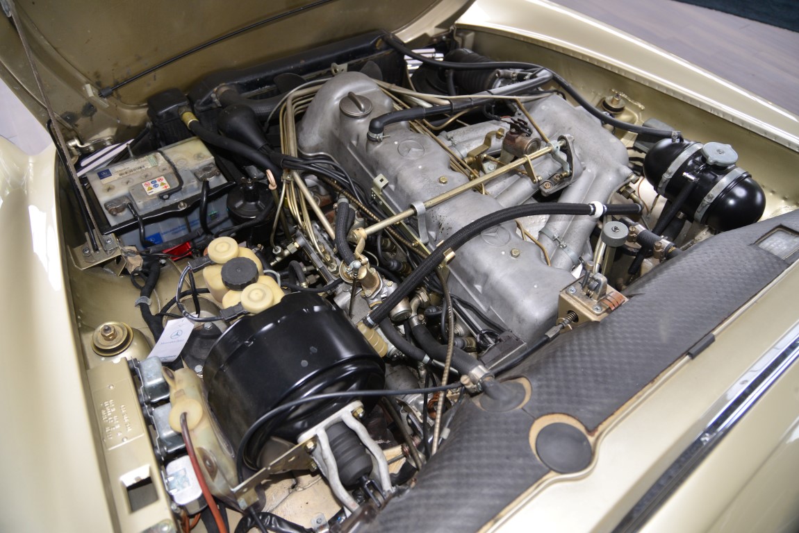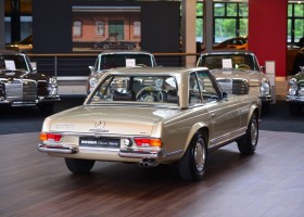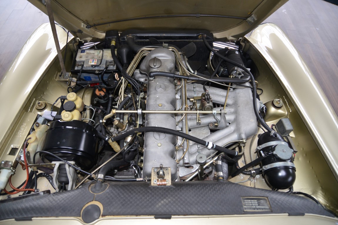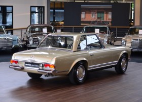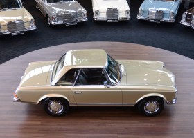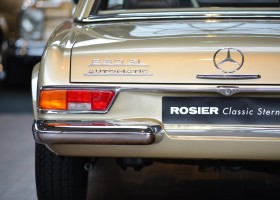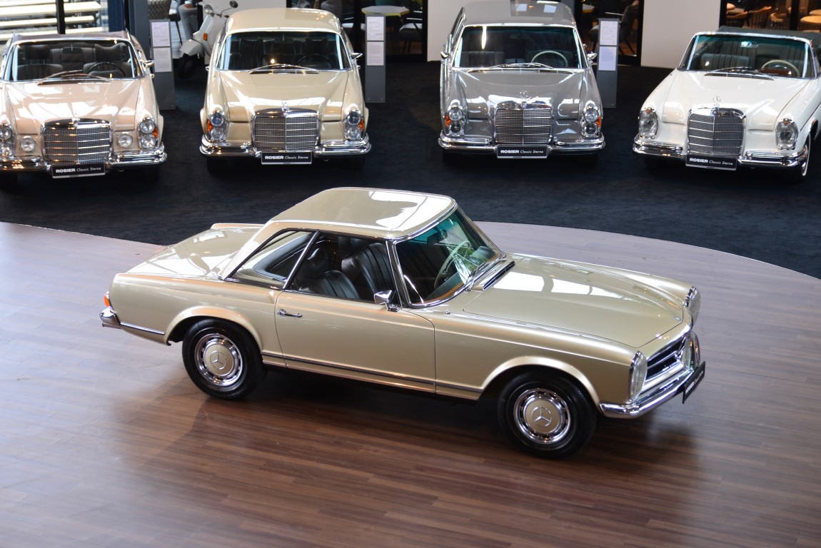 Dieser Mercedes-Benz 280SL Roadster aus der so beliebten Serie W113 wurde am 18.04.1968 an ein alteingesessenes Möbelhaus in Hamburg geliefert. Die Wartung wurde meist bei Mercedes-Benz in Hamburg gemacht, wie es noch vorhandene Rechnungskopien belegen. Ein neues Werks-Getriebe wurde in 1981 verbaut, was der originale Aggregate-Pass belegt. Der Wagen blieb dort bis er in 2007 an einen Hotelier in Belgien verkauft wurde. Der Mercedes-Benz Partner in Mechelen sorgte all die Jahre für die bestmögliche Wartung und Erhaltung des Wagens. Der Hotelier behielt den Roadster bis 2014 in seinem Besitz. In 2014 kam die elegante Pagode in hervorragendem Zustand zu Mercedes-Benz Partner Autohaus Rosier in der Ammerländer Heerstraße in Oldenburg. Eine umfangreiche Inspektion wurde durchgeführt, der Wagen wurde in Bestzustand versetzt. Die Lederausstattung wurde durch die für beste Lederarbeiten bekannte Autosattlerei Mönnich in Oldenburg originalgetreu erneuert. Ein Liebhaber klassischer Mercedes-Benz Fahrzeuge hatte großen Gefallen an dem Wagen gefunden und ihn für seine Sammlung erworben. Zur Erhaltung des Wagens und Vermeidung von Standschäden wurde die Pagode ab und an, nur bei gutem Wetter, für Fahrten eingesetzt. Nachdem nun die Sammlung etwas verkleintwerden soll, freuen wir uns, Ihnen diese herrliche Pagode wieder anbieten zu dürfen. Alles funktioniert, keinerlei Wartungsstau, fertig zum Einsatz auch auf langen Strecken.