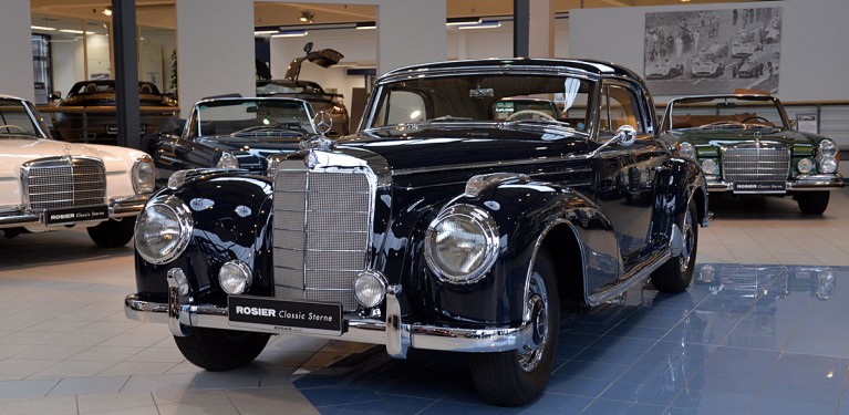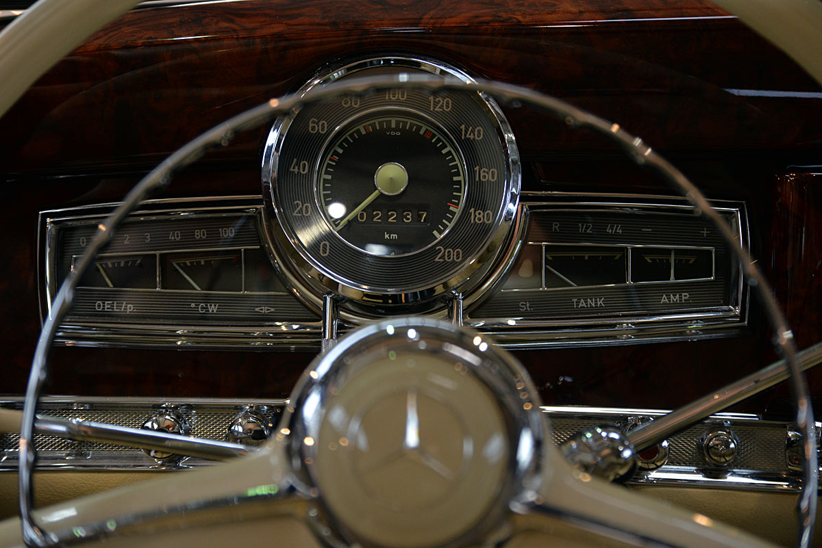 Die Mercedes Reihe W188 wurde im Oktober 1951 auf der Mondial de l‘Automobile in Paris der Öffentlichkeit präsentiert. In 1955 wurde die Modellreihe, die aus Coupé, Cabriolet und Roadster bestand, überarbeitet und in 300 SC umbenannt. Neben reichlich Chromzierrat wurde eine aufwändige Benzineinspritzung verbaut, die dem Wagen kraftvolle 175 PS Leistung bescherte.