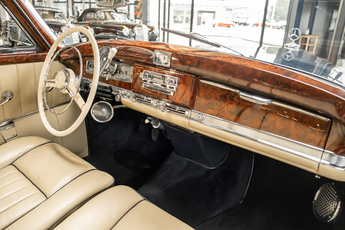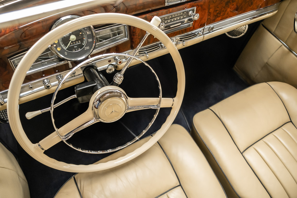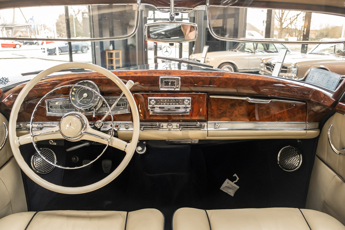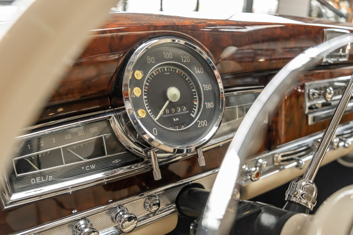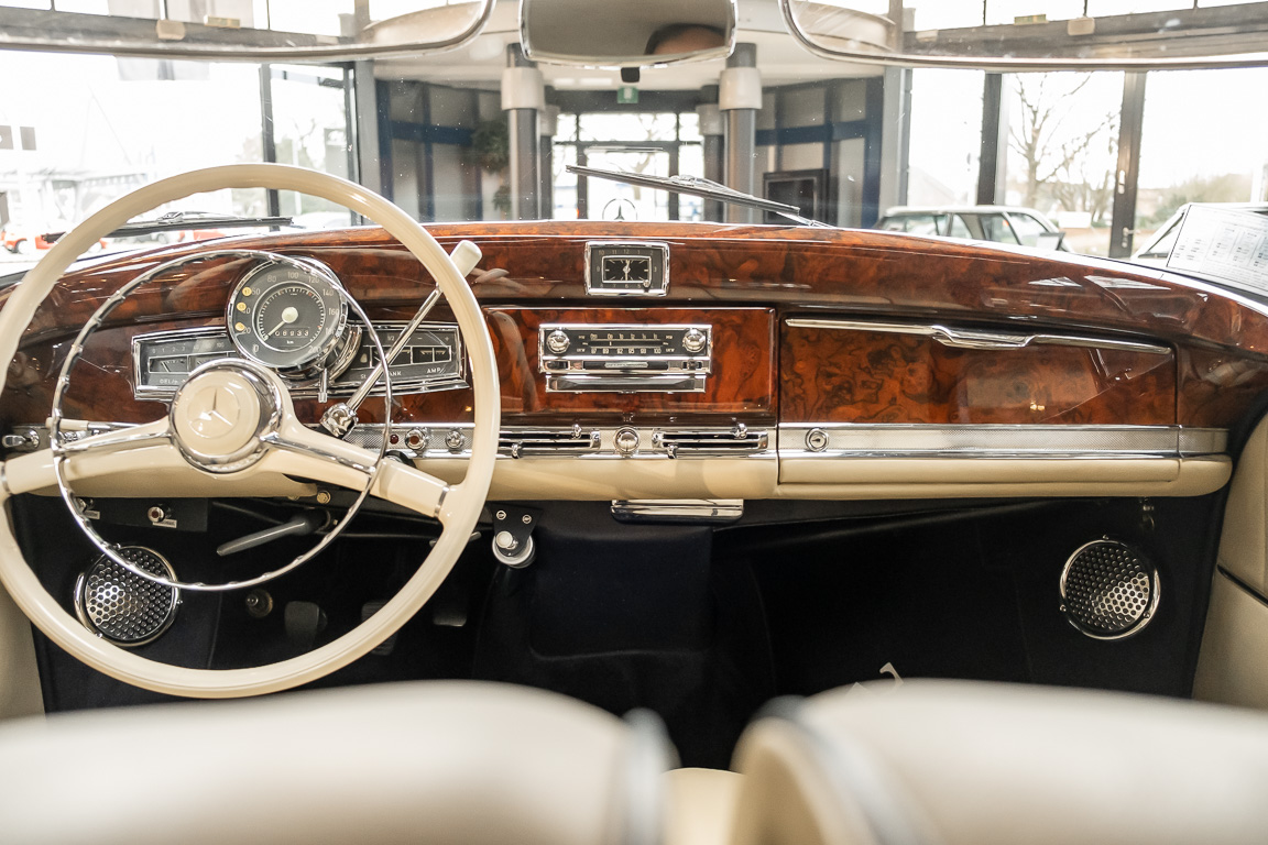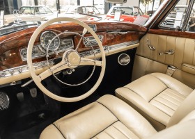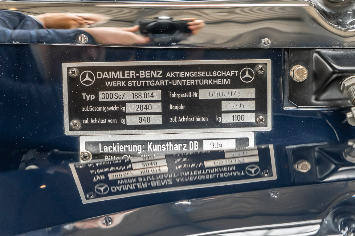 Die Mercedes Reihe W188 wurde im Oktober 1951 auf der Mondial de l‘Automobile in Paris der Öffentlichkeit präsentiert. In 1955 wurde die Modellreihe, die aus Coupé, Cabriolet und Roadster bestand überarbeitet und in 300Sc umbenannt. Neben reichlich Chromzierrat wurde eine aufwändige Benzineinspritzung verbaut, die dem Wagen kraftvolle 175 PS Leistung bescherte.