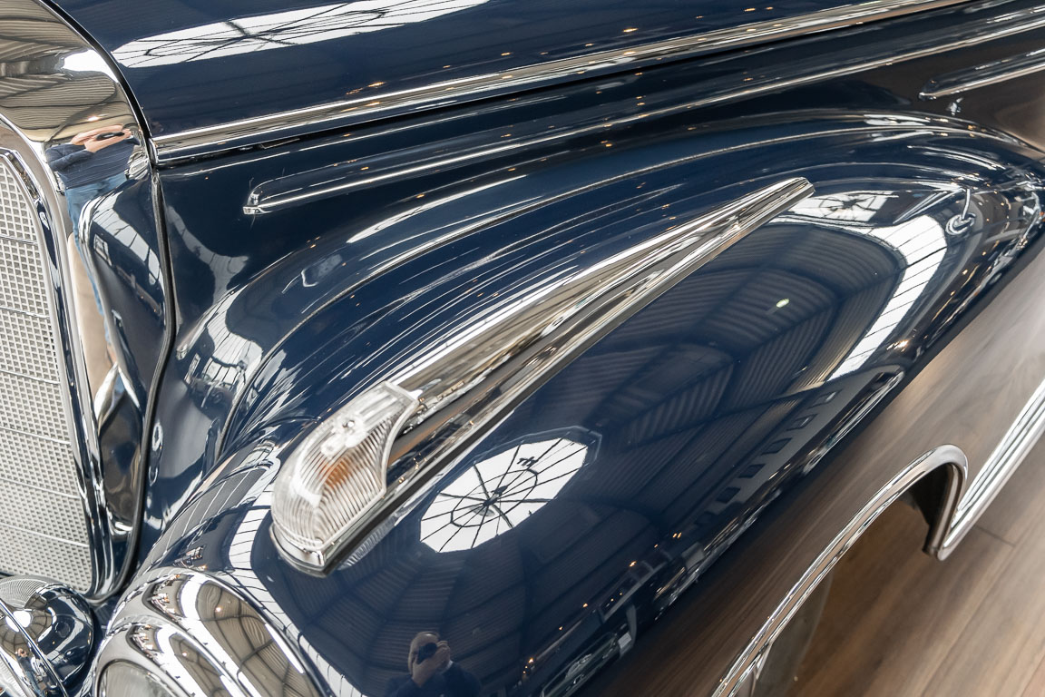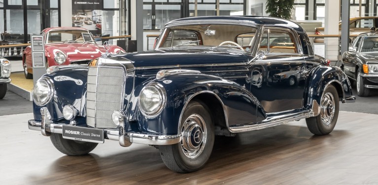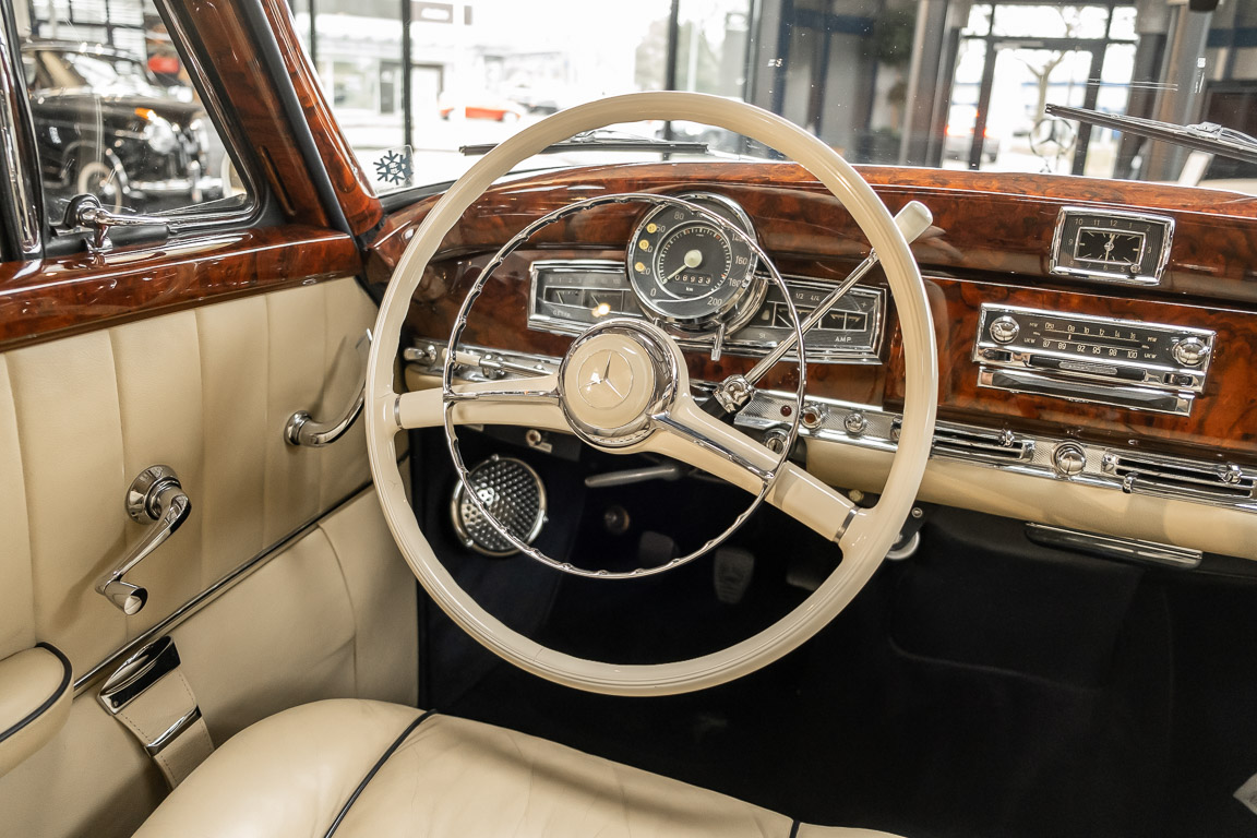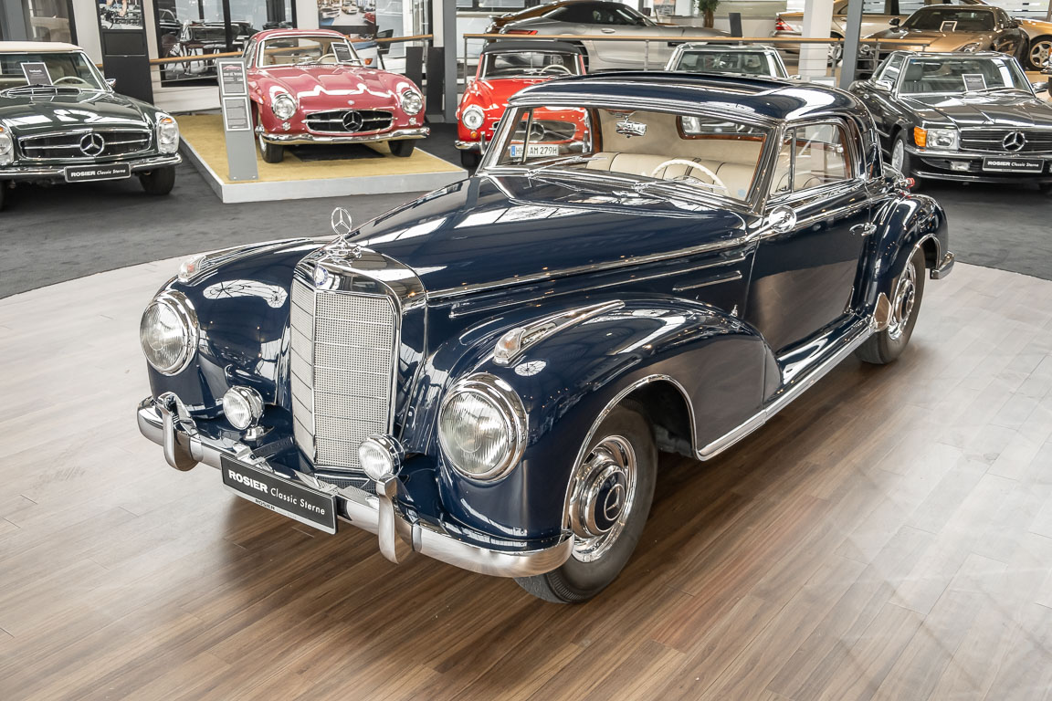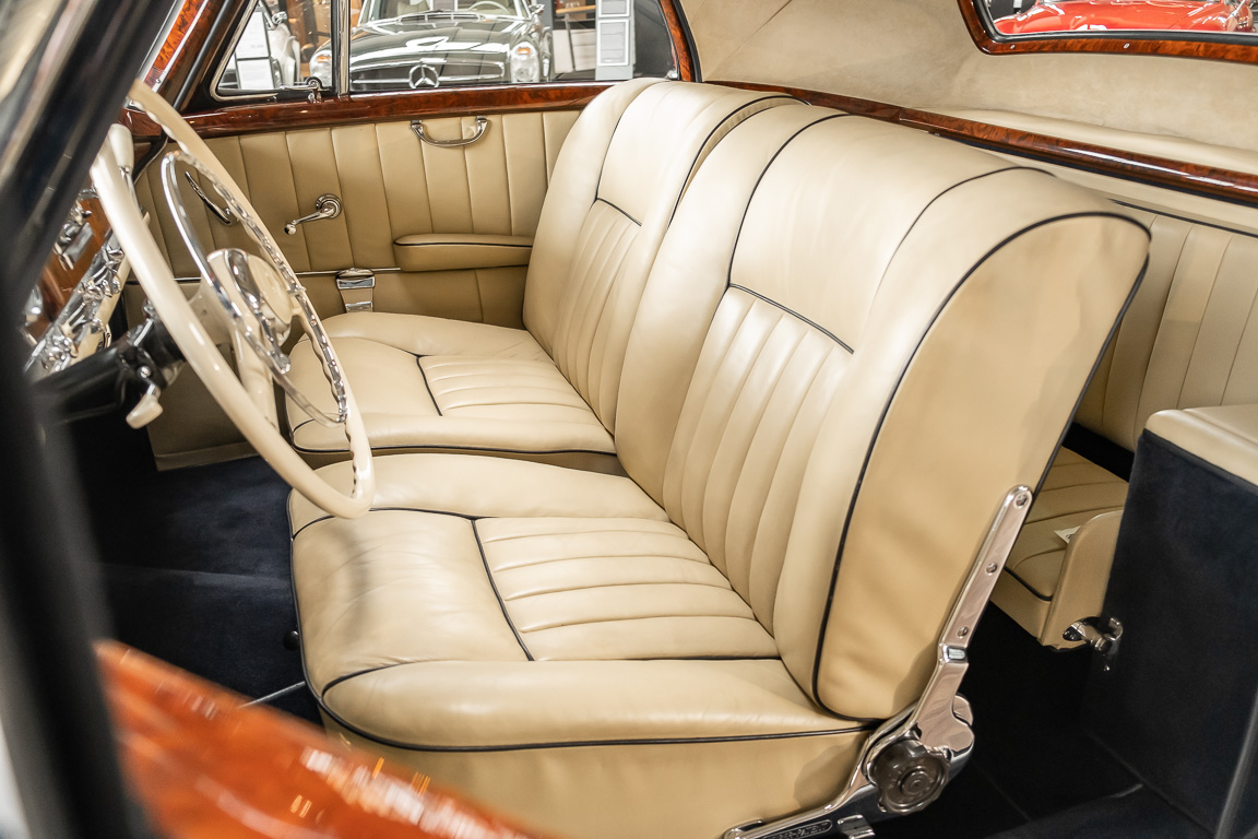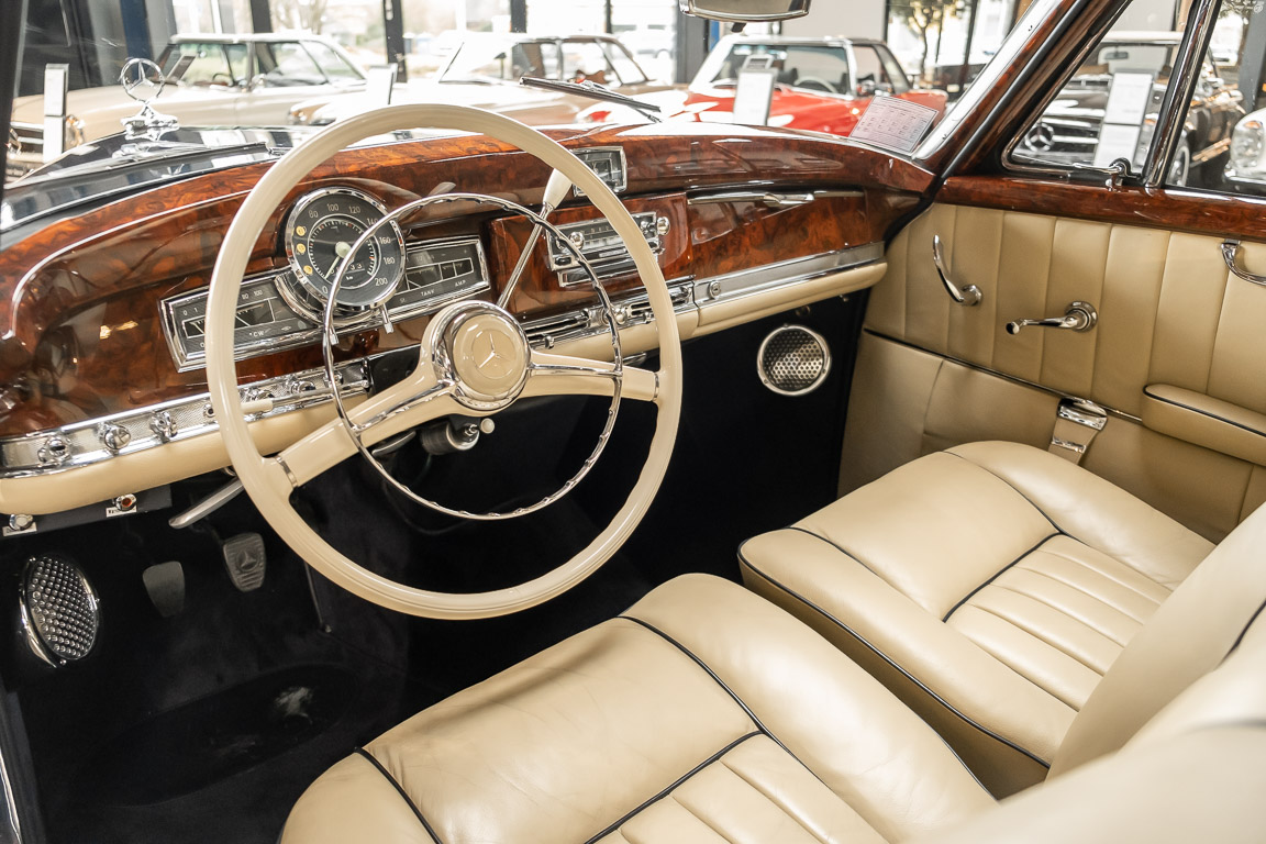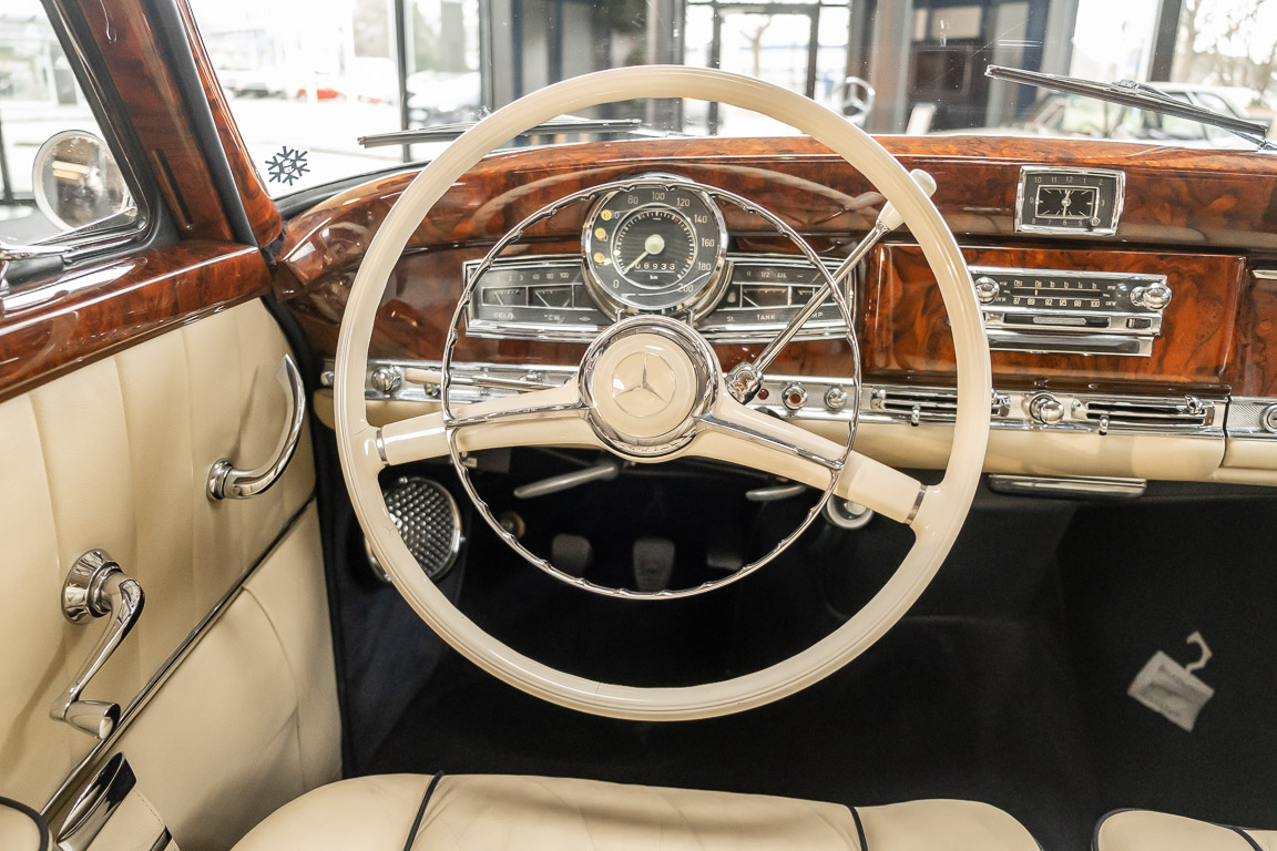 Die Mercedes Reihe W188 wurde im Oktober 1951 auf der Mondial de l‘Automobile in Paris der Öffentlichkeit präsentiert. In 1955 wurde die Modellreihe, die aus Coupé, Cabriolet und Roadster bestand überarbeitet und in 300Sc umbenannt. Neben reichlich Chromzierrat wurde eine aufwändige Benzineinspritzung verbaut, die dem Wagen kraftvolle 175 PS Leistung bescherte.