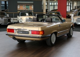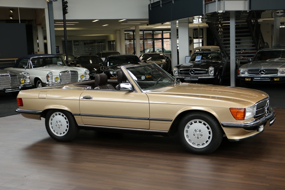 Dieser elegante Mercedes-Benz 300SL Roadster wurde 1986 über Auto Henne in München in deutscher Ausführung bestellt. Das erste Besitzer-Ehepaar nutze das Fahrzeug nach Übernahme zuerst in der Schweiz und nahm es als Umzugsgut im Sommer 1988 mit in die USA. Es fand sein neues Zuhause in einer aufgeräumten gehobenen Einfamilienhaussiedlung in Colorado Springs, Colorado/USA. In 2012 kam der Wagen aus den USA zurück nach Deutschland und fand sein Zuhause in Berlin. Hier erwarb den eleganten Roadster sein bisher letzter Besitzer und nahm ihn mit in die herrliche Gegend des Starnberger Sees in Bayern.