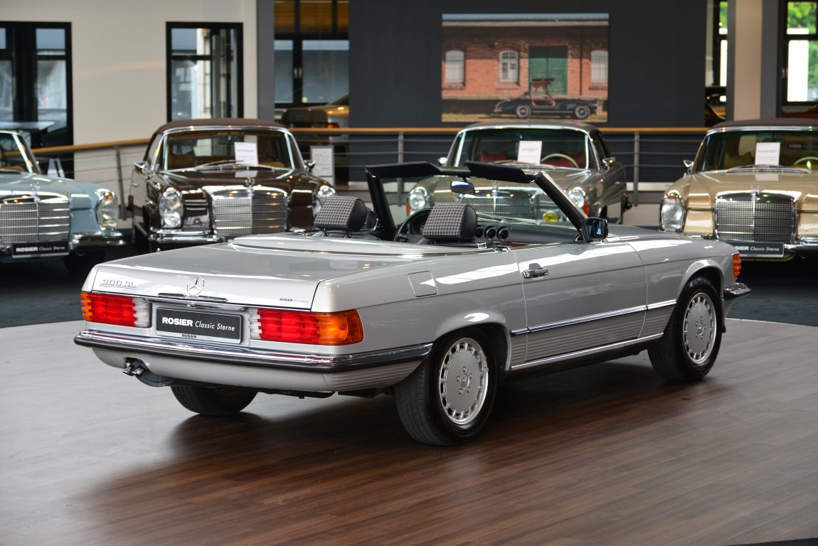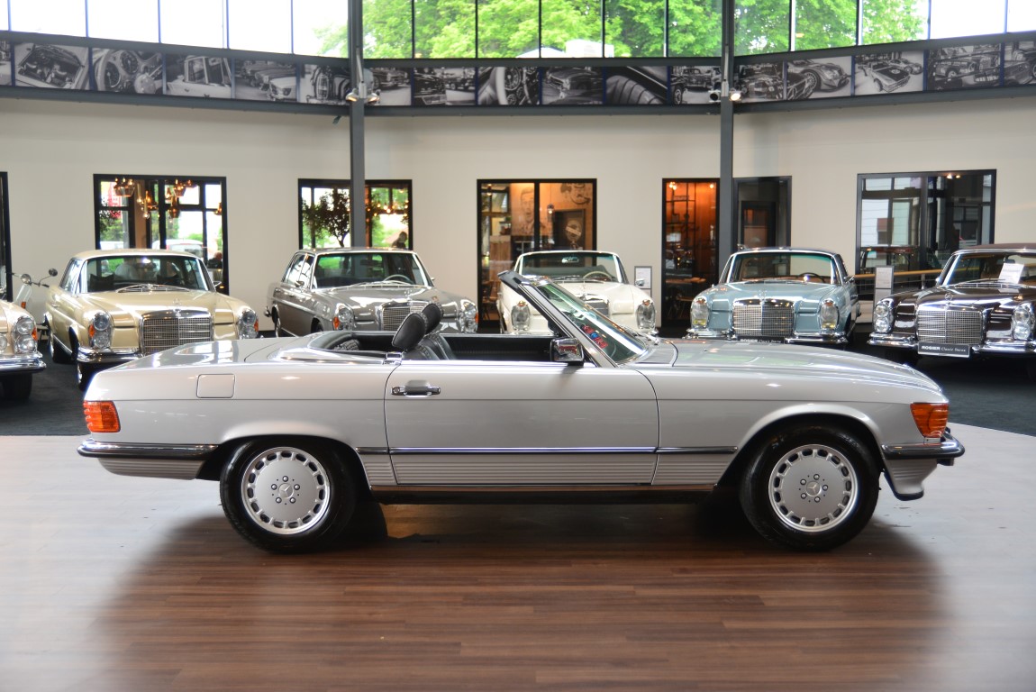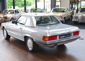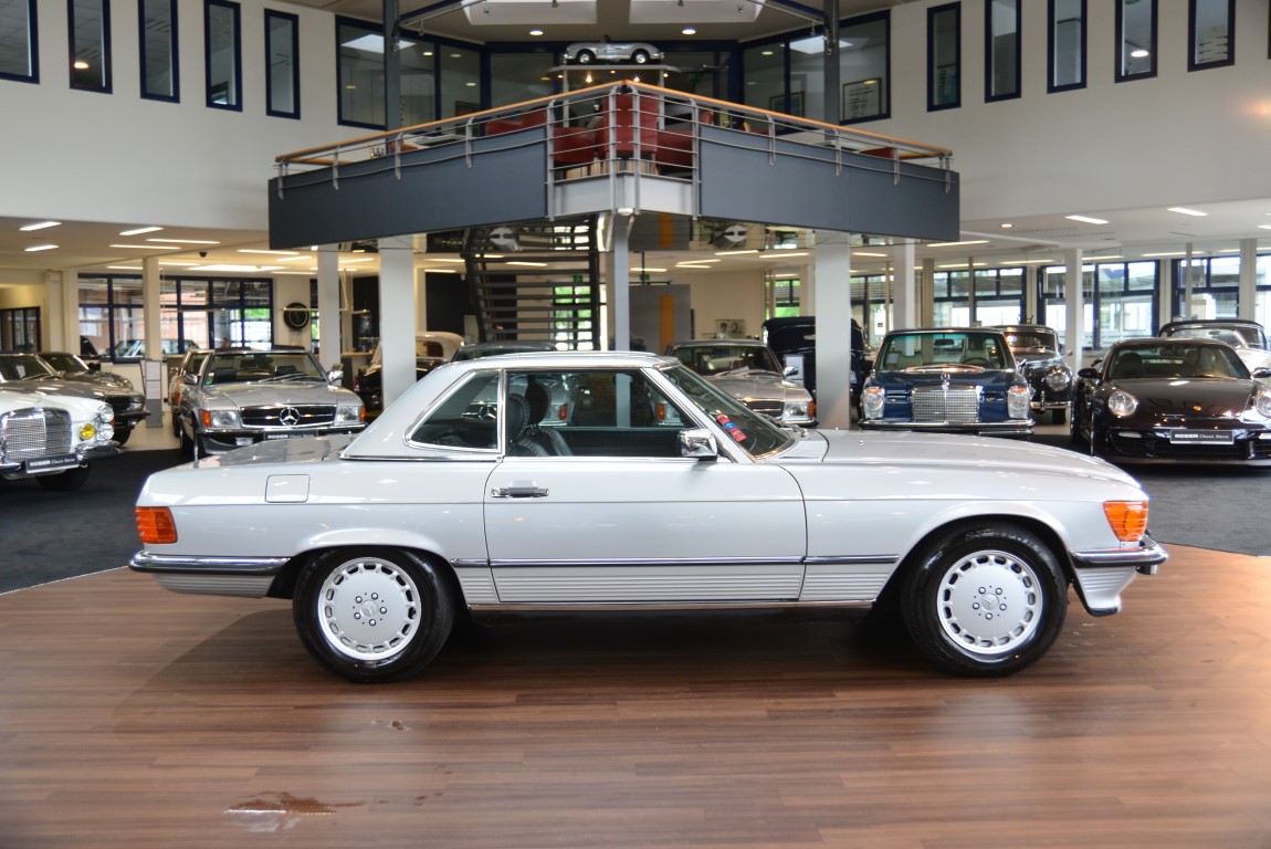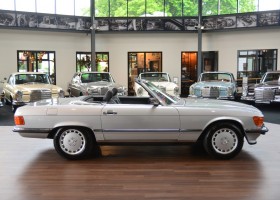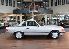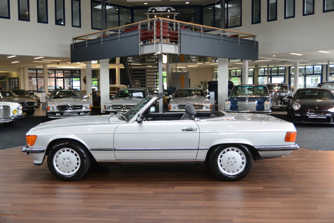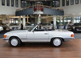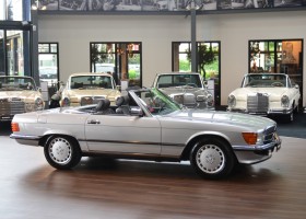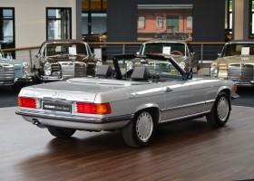 Dieser elegante Mercedes-Benz 300SL Roadster aus der so begehrten Reihe R107 wurde am 11.03.1987 auf seinen Erstbesitzer im Südwesten Deutschlands zugelassen. Der Roadster verblieb all die Jahre im Schwabenland und wurde regelmäßig in Mercedes-Benz Werkstätten gewartet, wie es das noch vorhandene Original-Kundendienstscheckheft eindrucksvoll belegt. Der Wagen hat eine geringe Kilometerleistung von nur knapp 60.000, hat bereits die begehrte H-Zulassung und präsentiert sich wie neu. Es lohnt sich ihn anzusehen. Wir sind sicher Sie finden großen Gefallen an dem Wagen.
