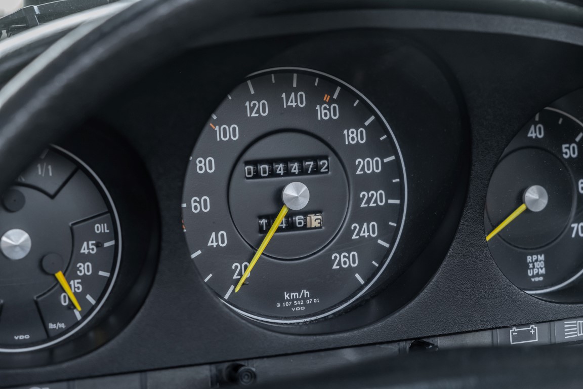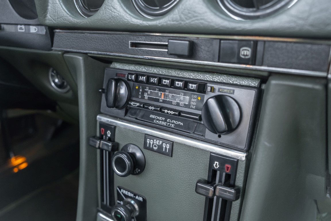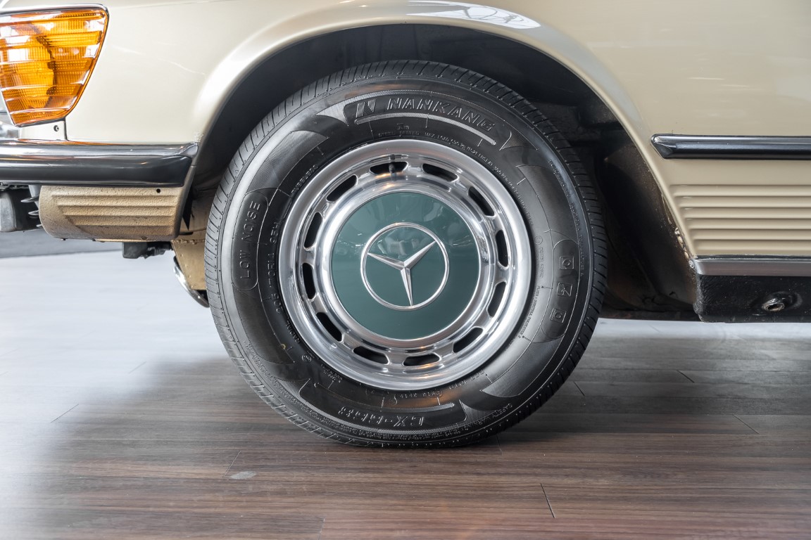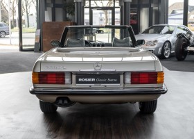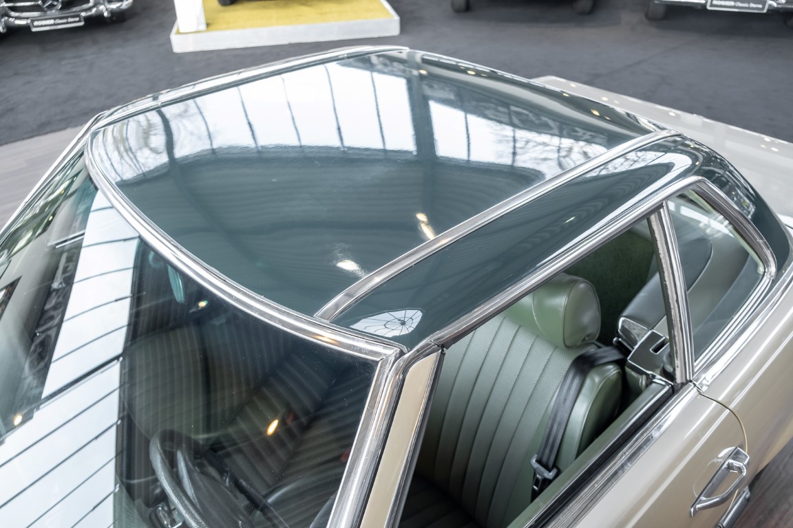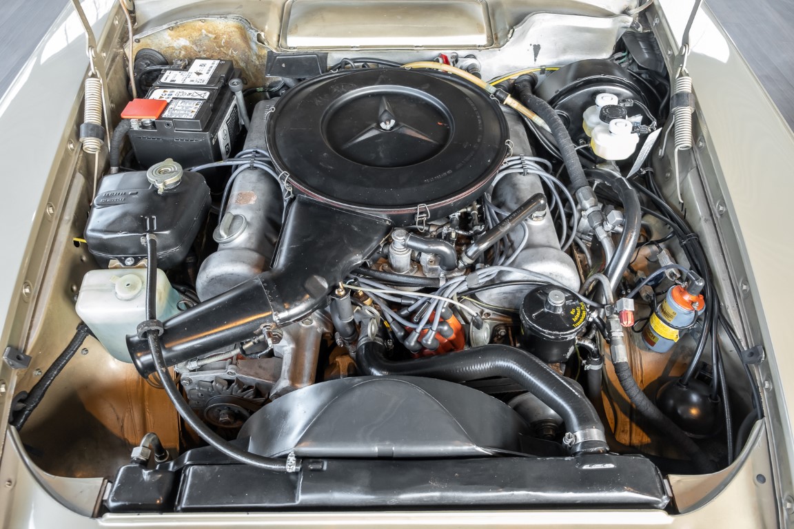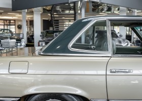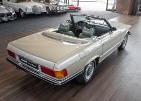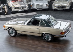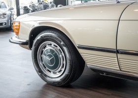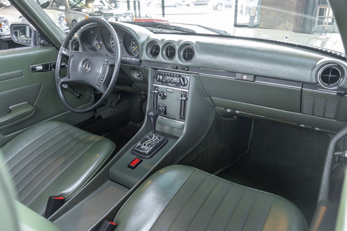Die Serienproduktion des Mercedes-Benz 350SL Roadsters begann im April 1971 im Werk Sindelfingen. Der hier  angebotene Roadster wurde am 25. Oktober 1971 fertiggestellt und in die USA geliefert. Es handelt sich somit um ein ganz frühes Modell und ist für Sammler höchst interessant. Er wurde im Januar 1972 auf den Erstbesitzer zugelassen und verblieb all die Jahre in den USA. Aus der ländlichen ca. 7.000 Einwohner-Gemeinde Sutherlin in Oregon/USA, nur etwa 1 Stunde entfernt von der Winchester Bay am Nord Pacific wurde das Fahrzeug nach Deutschland eingeführt. Der Zustand des Wagens ist sehr original, die unverwüstliche MB-Tex Ausstattung in Olivgrün (166) befindet sich bis heute in einem sehr guten Zustand, die Lackierung wurde offensichtlich vor Jahren erneuert. Der Gesamtzustand des Wagens ist  höchst erfreulich, der Unterboden wurde Trockeneisgestrahlt und befindet sich in sauberem und ordentlichen Zustand. Der Motor läuft kraftvoll und weich, das Getriebe wurde erst kürzlich von unseren Spezialisten überholt und schaltet wie man es von einem Mercedes erwartet. Ein rundum toller 107er, der mit seinem starken V8 Motor und einer besonders  stilsicheren Farbkombination zu überzeugen weiß. Steigen Sie ein und erfahren Sie es selbst.