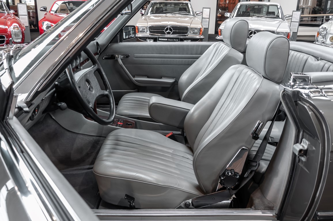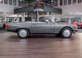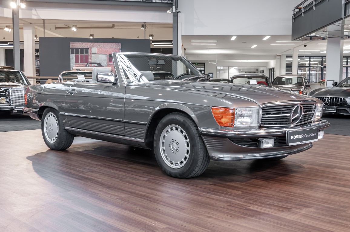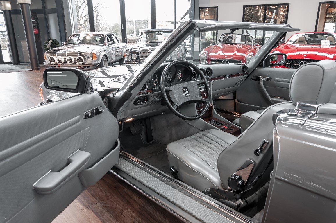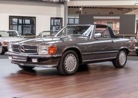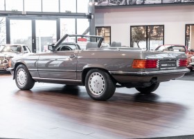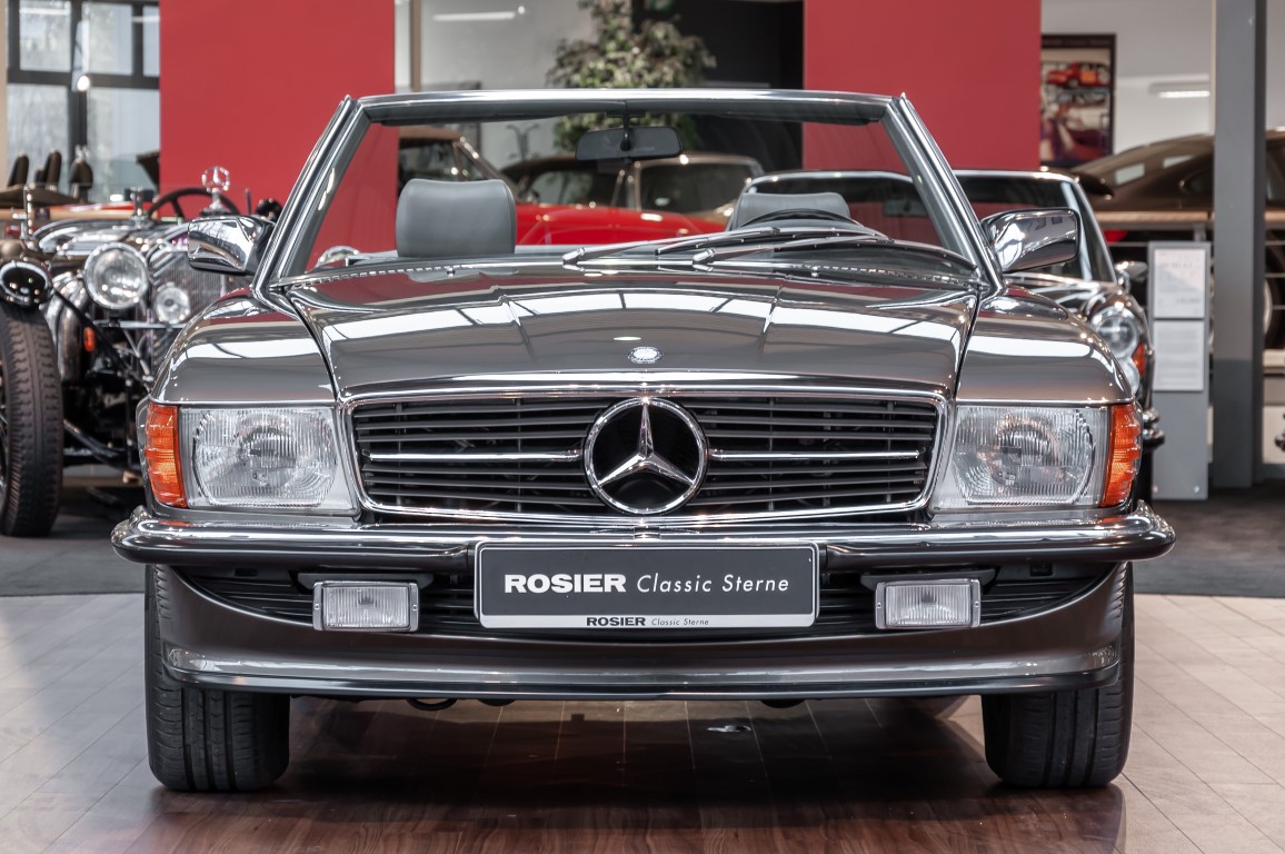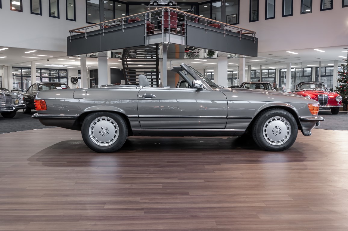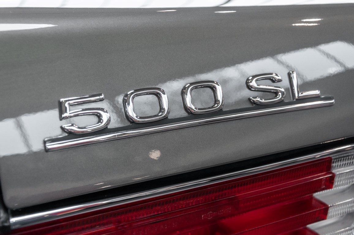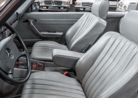 Eine echte Rarität: ein 500 SL mit originalen 14.500 Kilometern. 1987 wurde dieses Fahrzeug im edlen Anthrazitgrau Metallic in die Niederlassung München ausgeliefert, somit ist es in deutscher Spezifikation gebaut worden und war ursprünglich für den deutschen Markt bestimmt.
