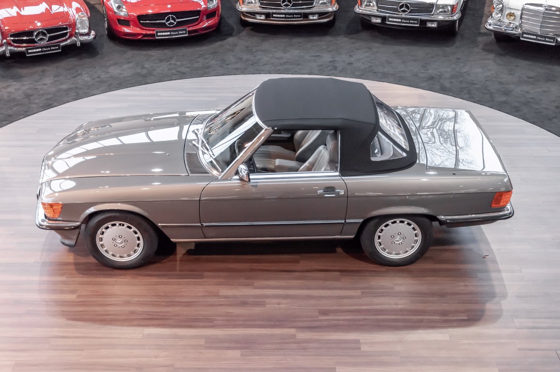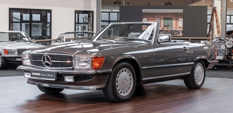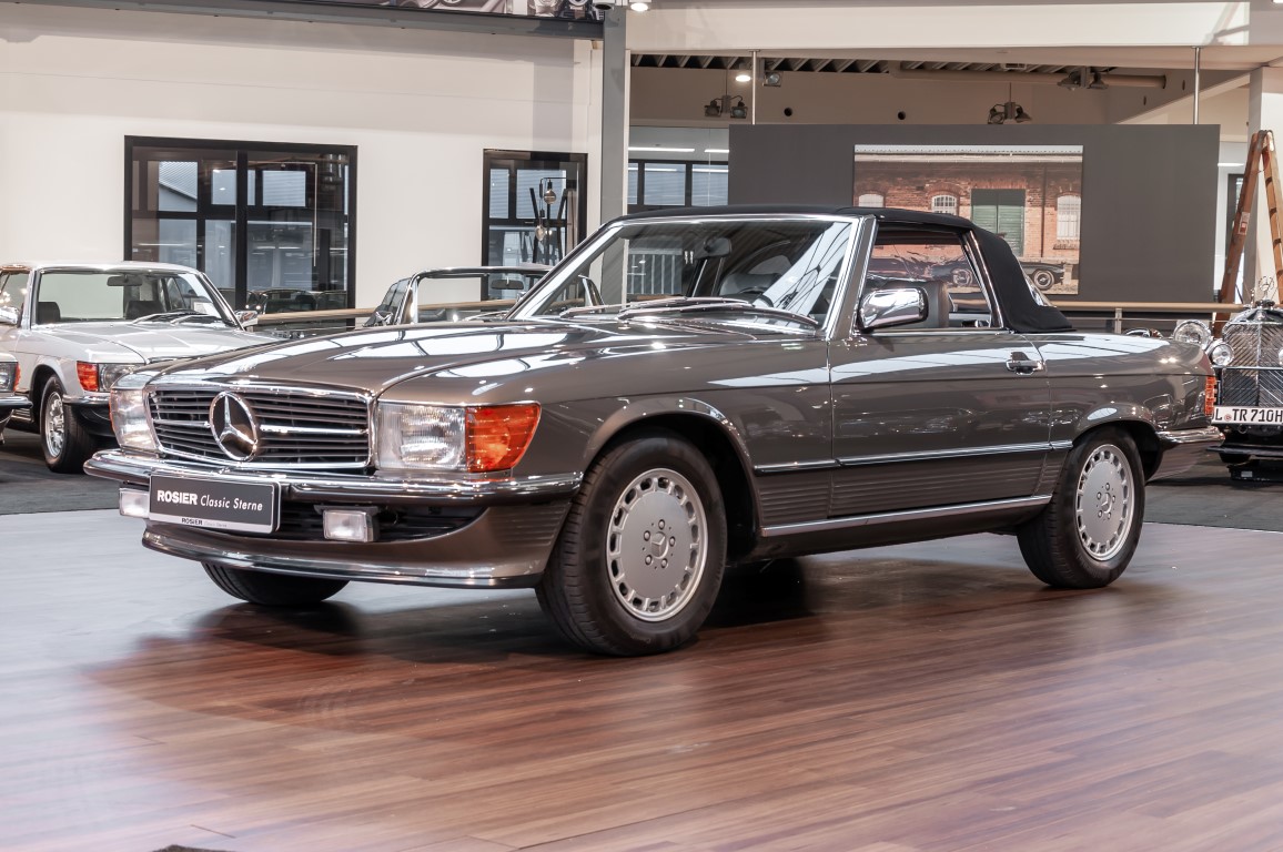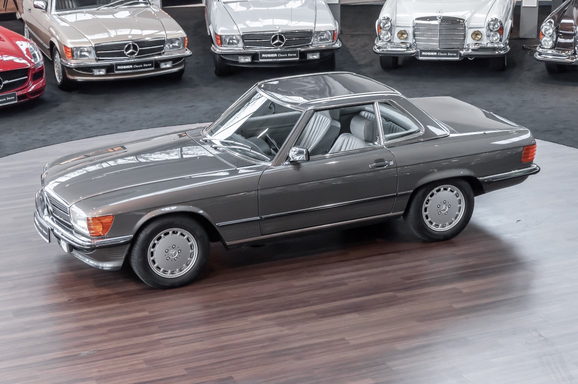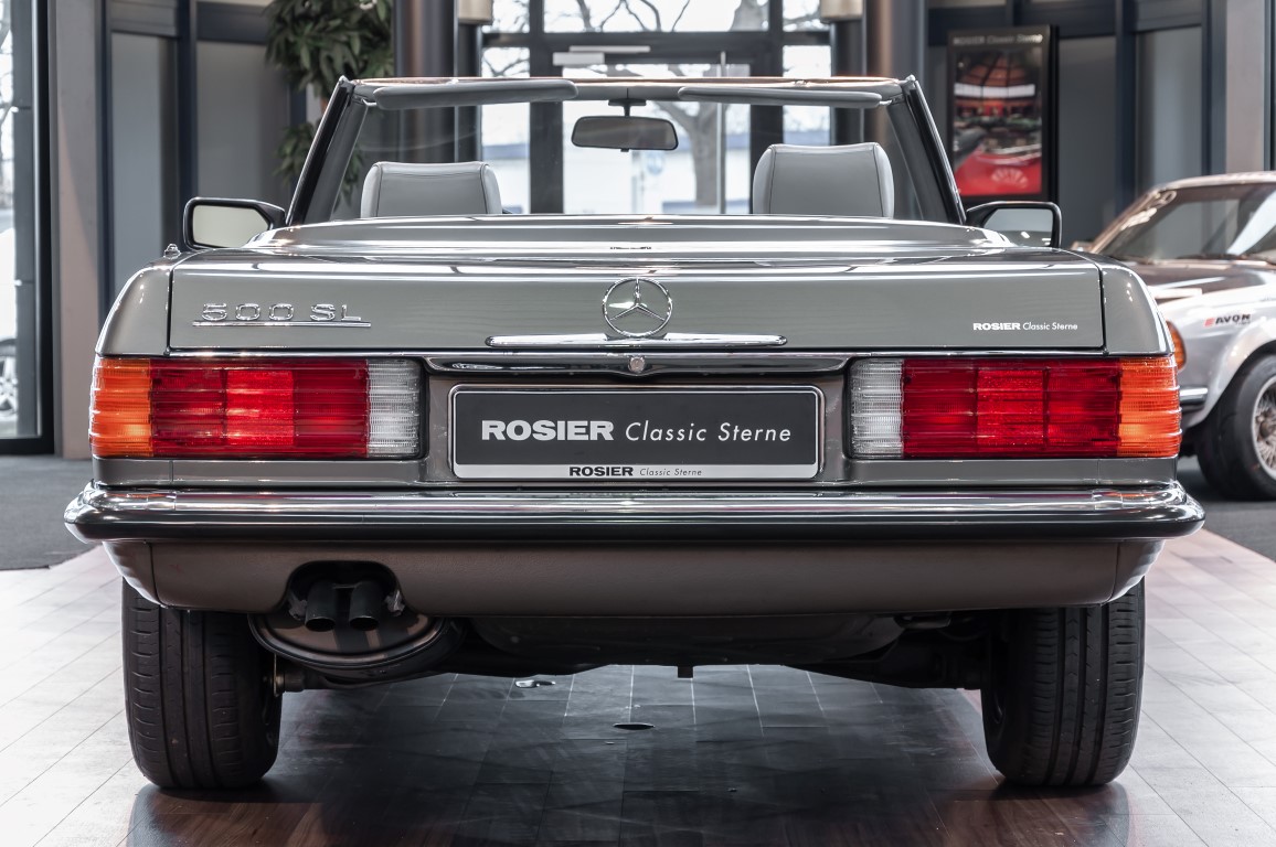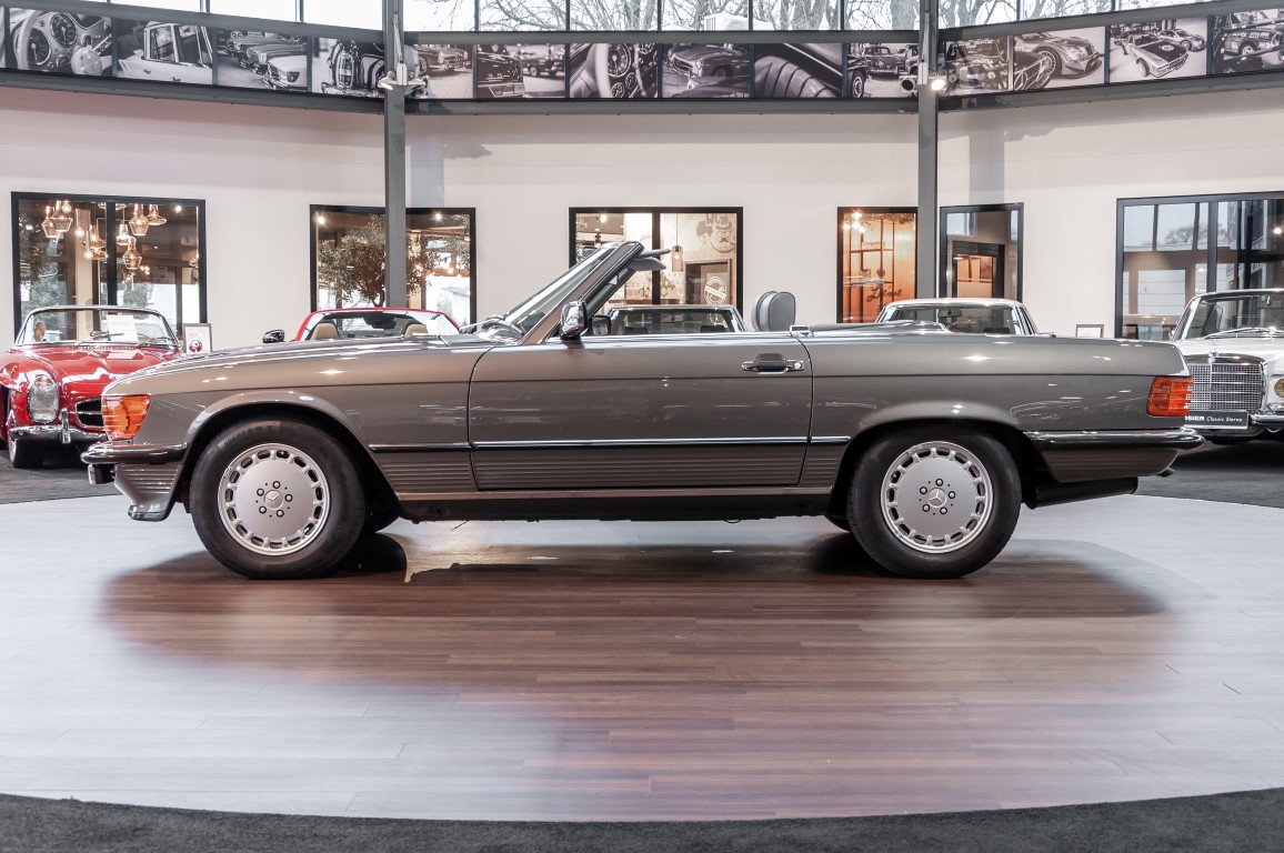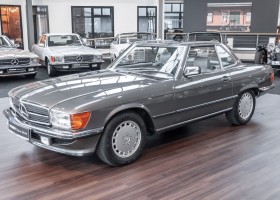 Eine echte Rarität: ein 500 SL mit originalen 14.500 Kilometern. 1987 wurde dieses Fahrzeug im edlen Anthrazitgrau Metallic in die Niederlassung München ausgeliefert, somit ist es in deutscher Spezifikation gebaut worden und war ursprünglich für den deutschen Markt bestimmt.